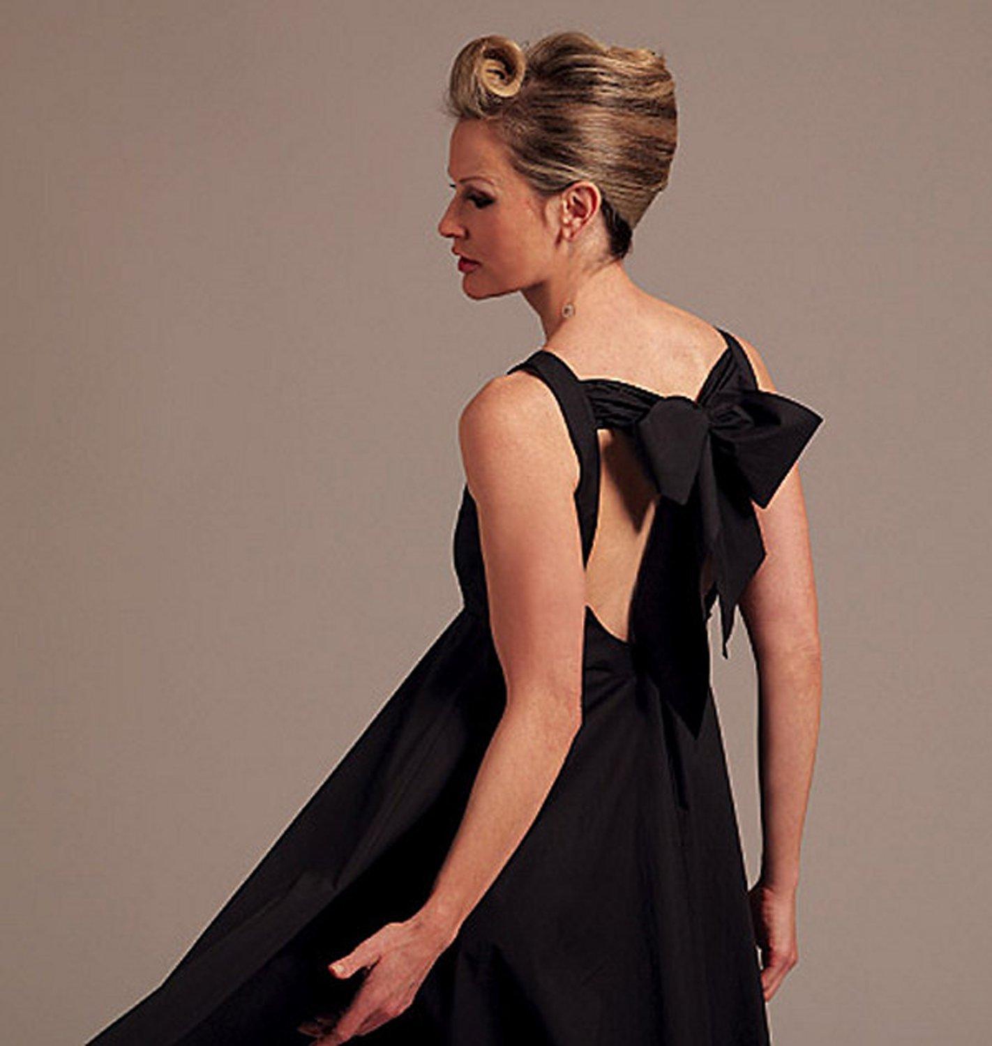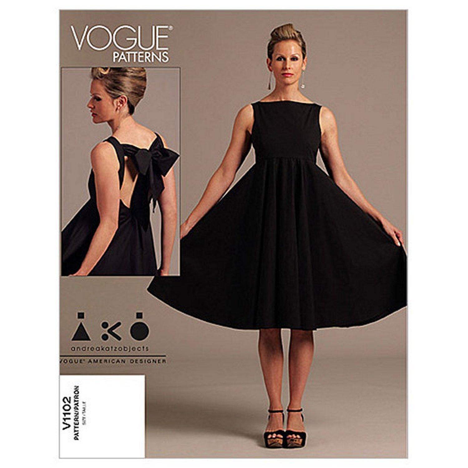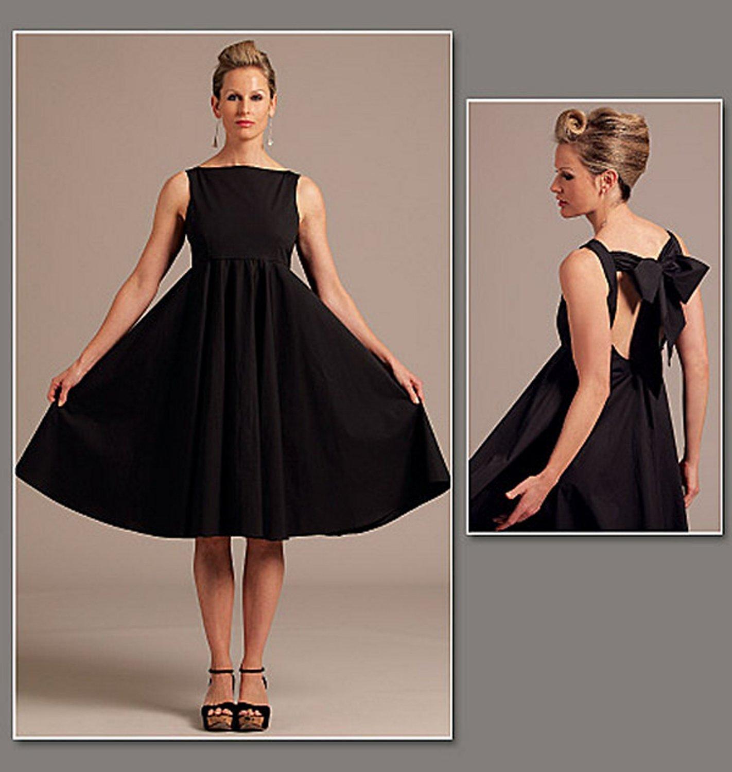 Create a classic flared dress with a twist using this Vogue sewing pattern. With a close-fitting sleeveless bodice it features a cut out back with bow tie ends. Paired with a flared skirt with a raised waistline and invisible back zipper closing.