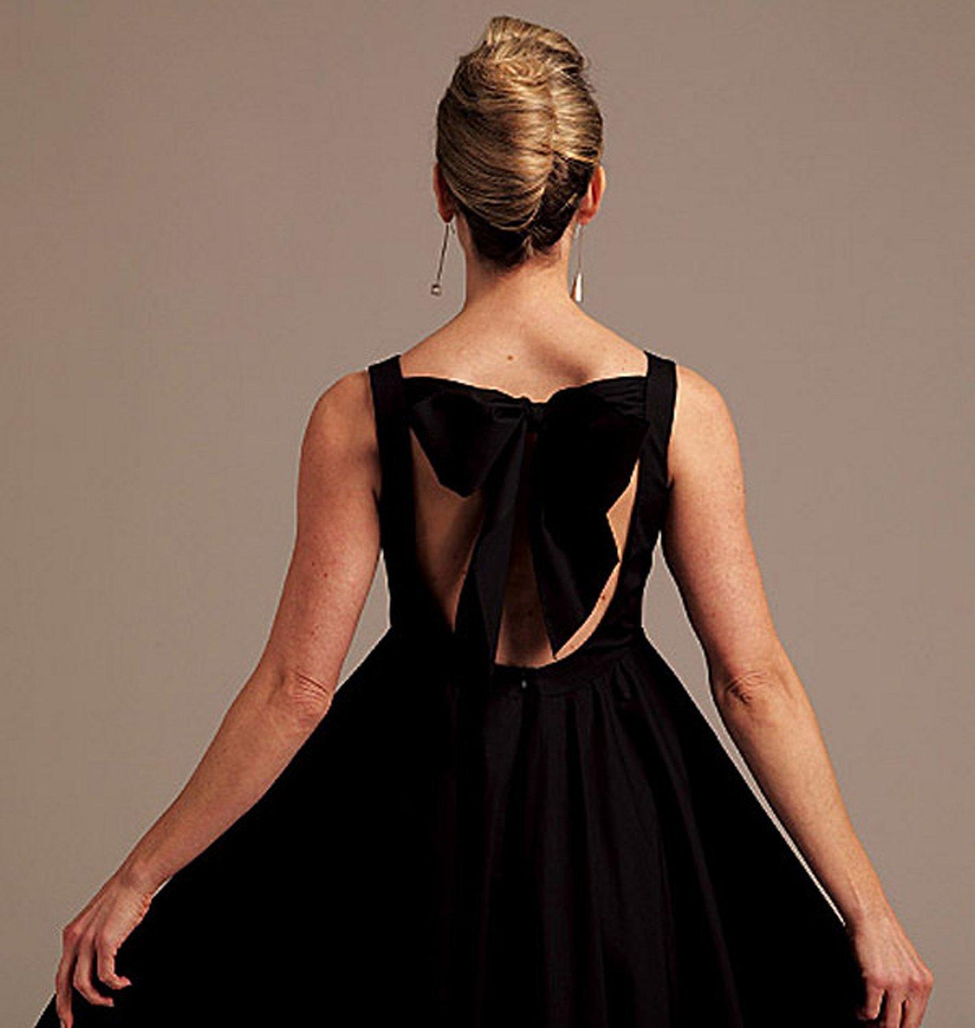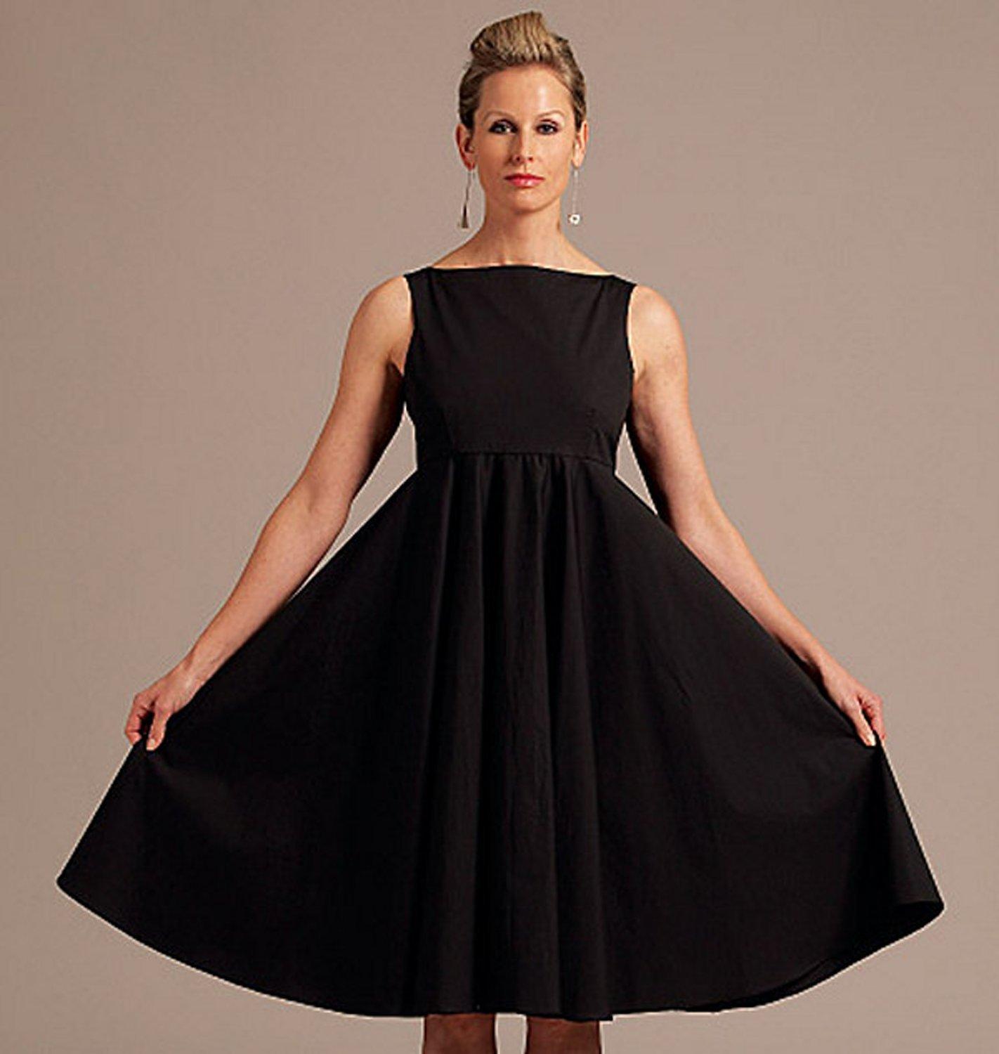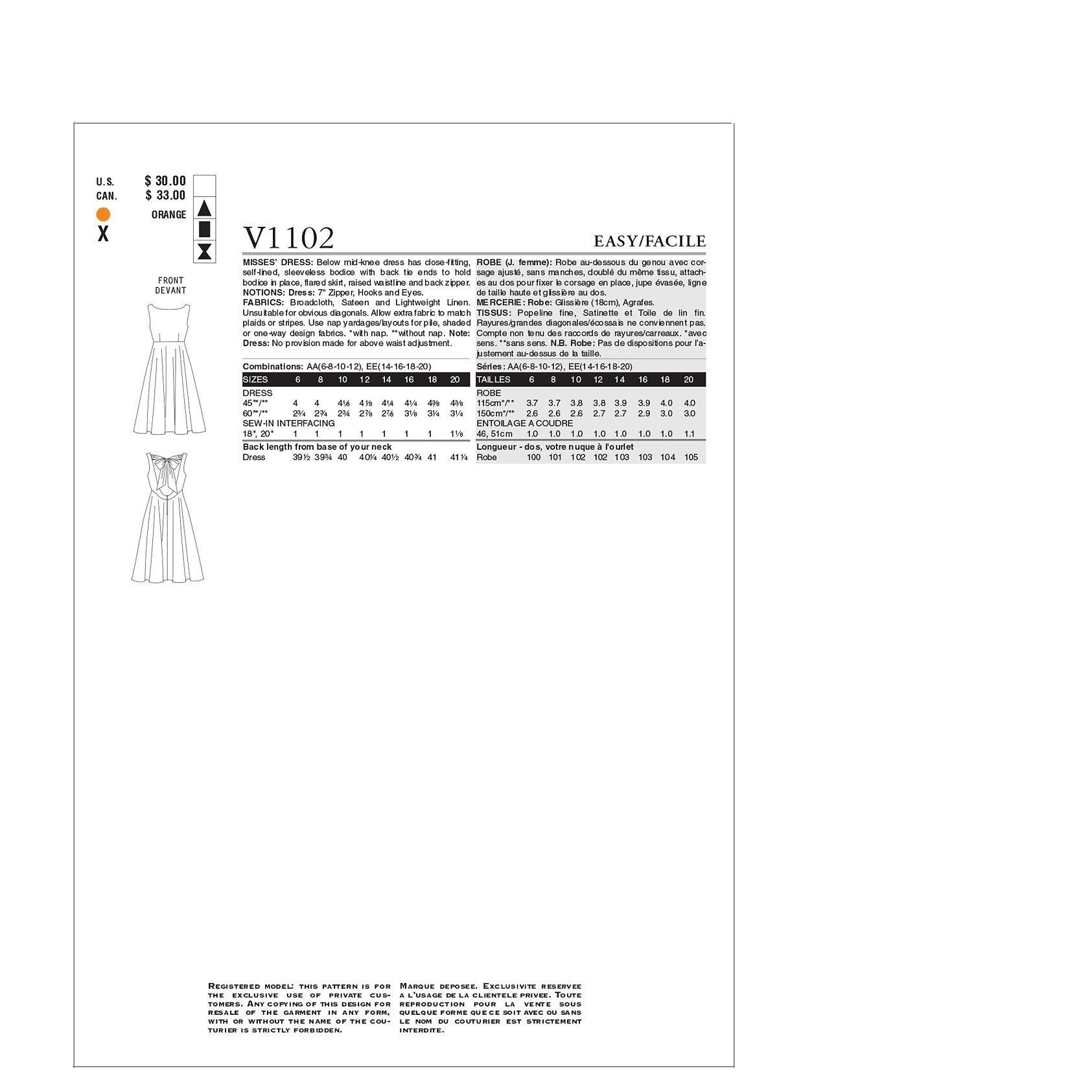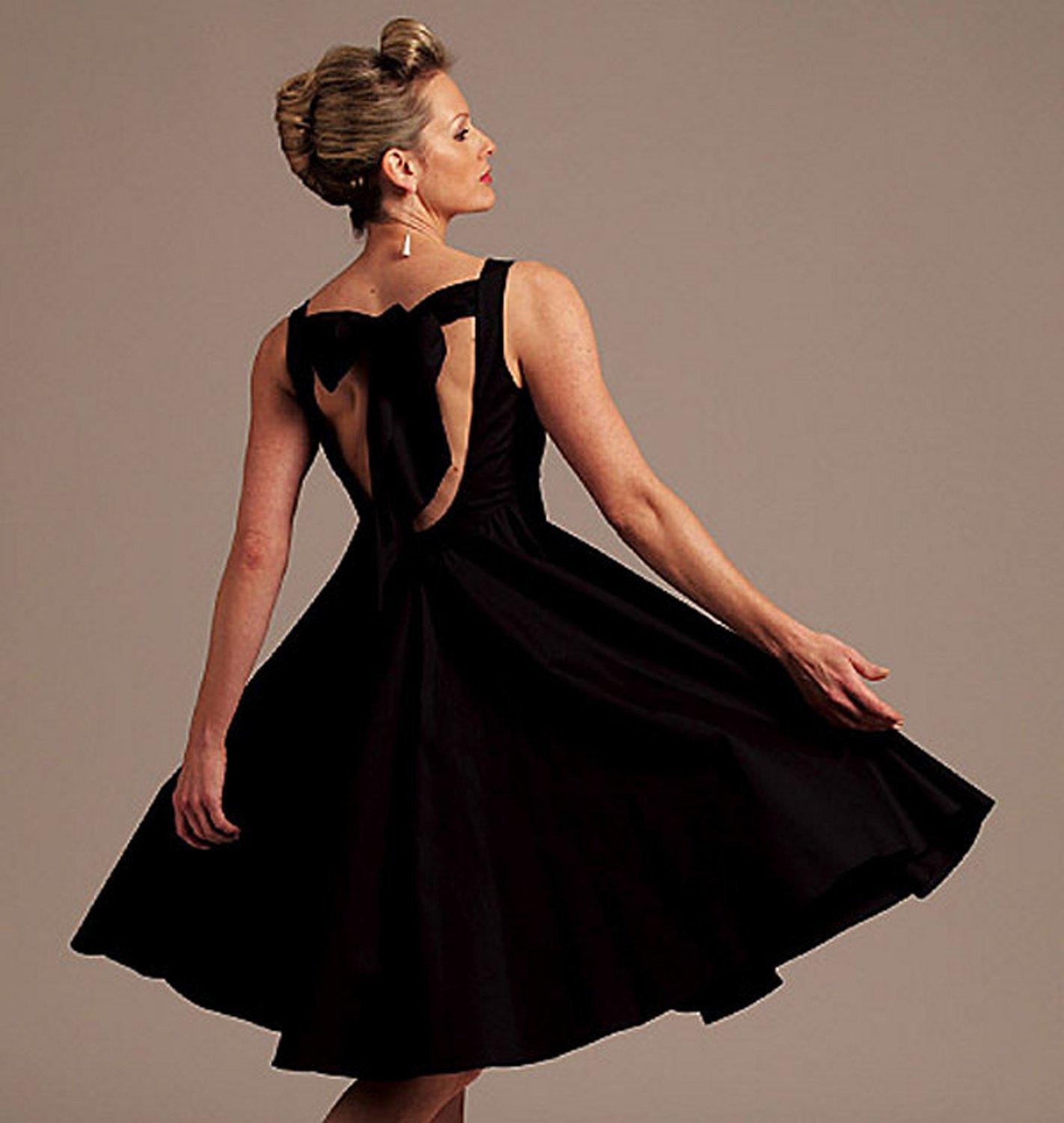 Create a classic flared dress with a twist using this Vogue sewing pattern. With a close-fitting sleeveless bodice it features a cut out back with bow tie ends. Paired with a flared skirt with a raised waistline and invisible back zipper closing.