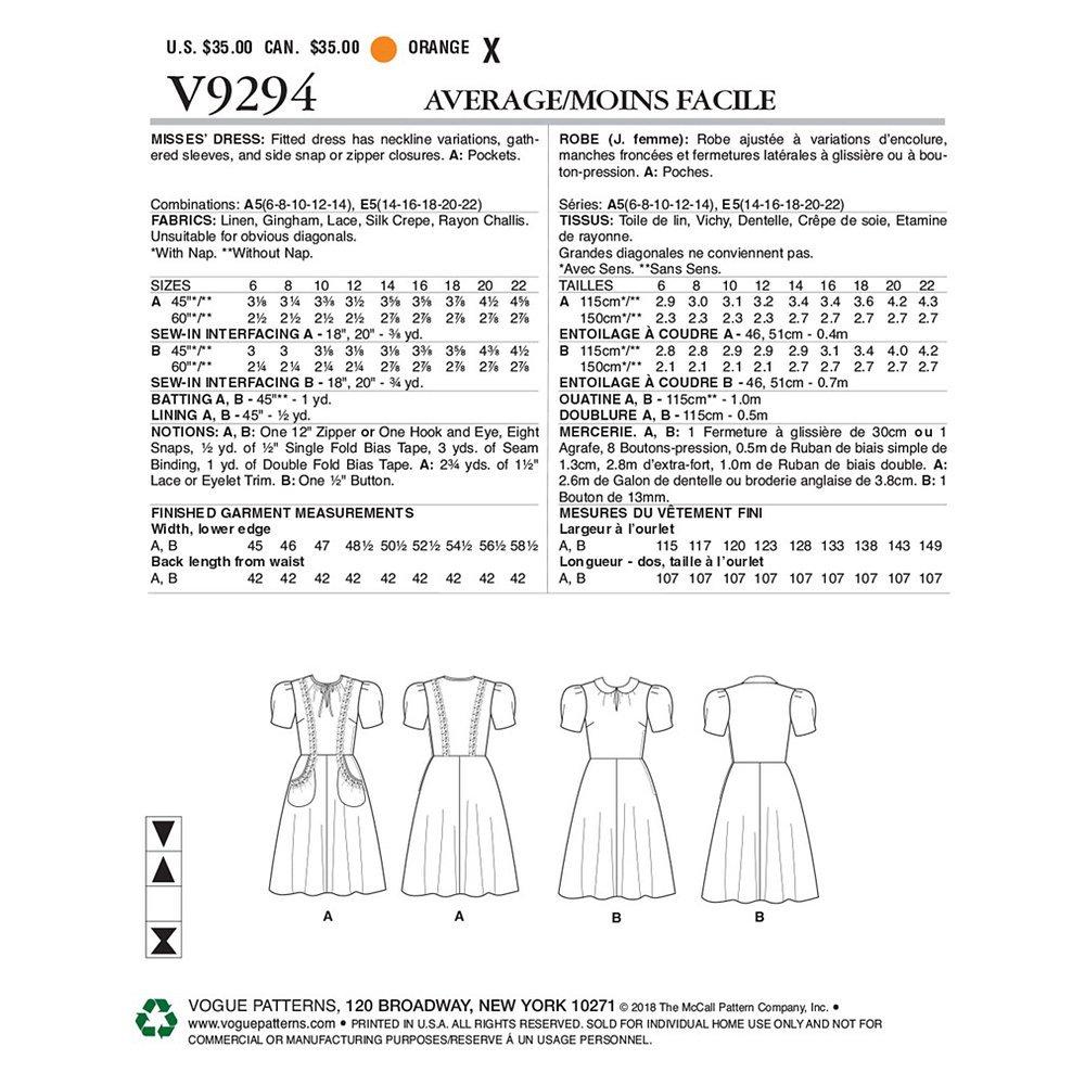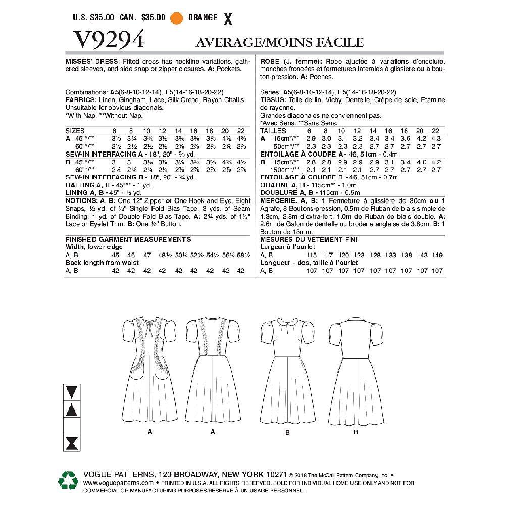 VogueWomen's Dress Sewing Pattern, 9294