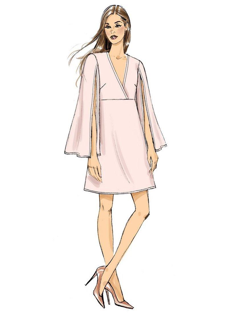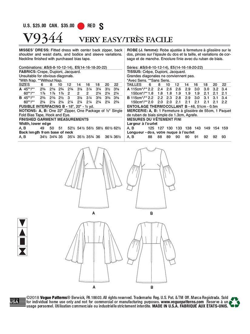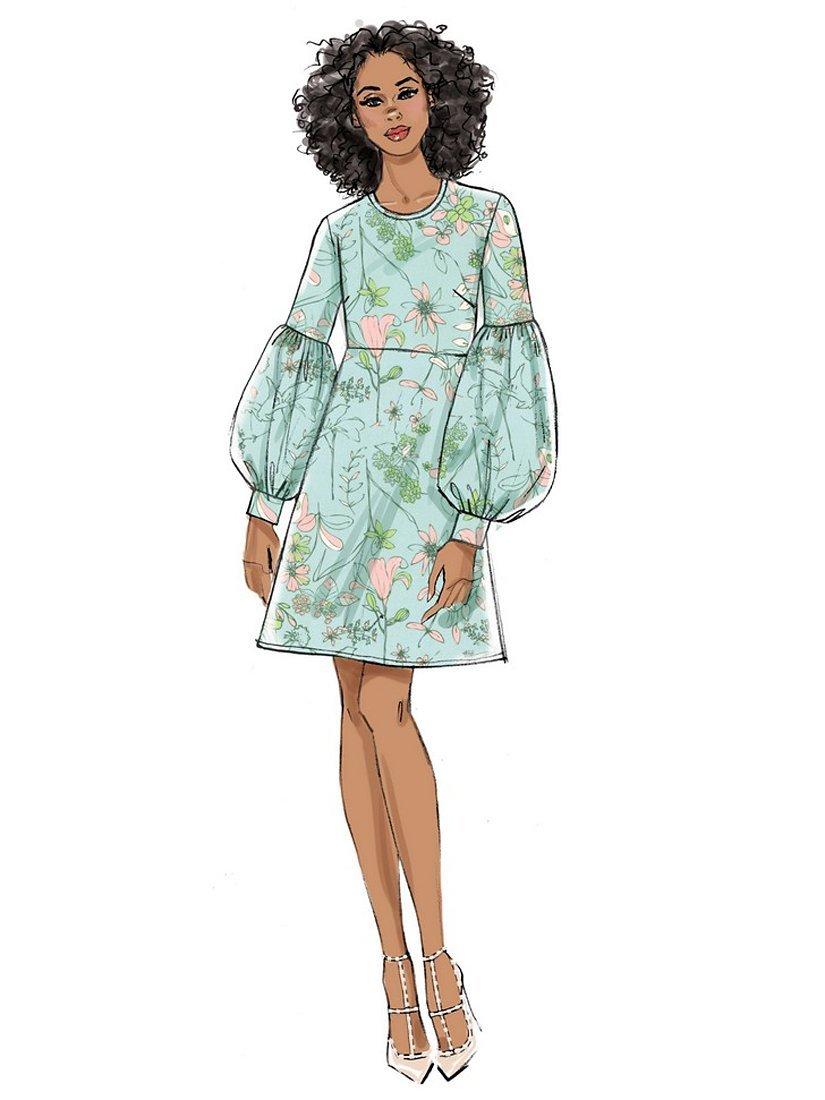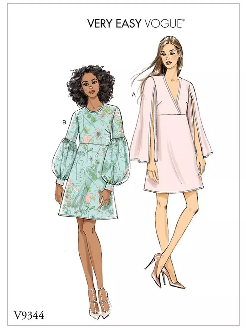 Sew these lovely Vogue Dresses. Designed in a fitted silhouette with a centre-back zip, these feature back shoulder and waist darts, and have bodice and sleeve variations.