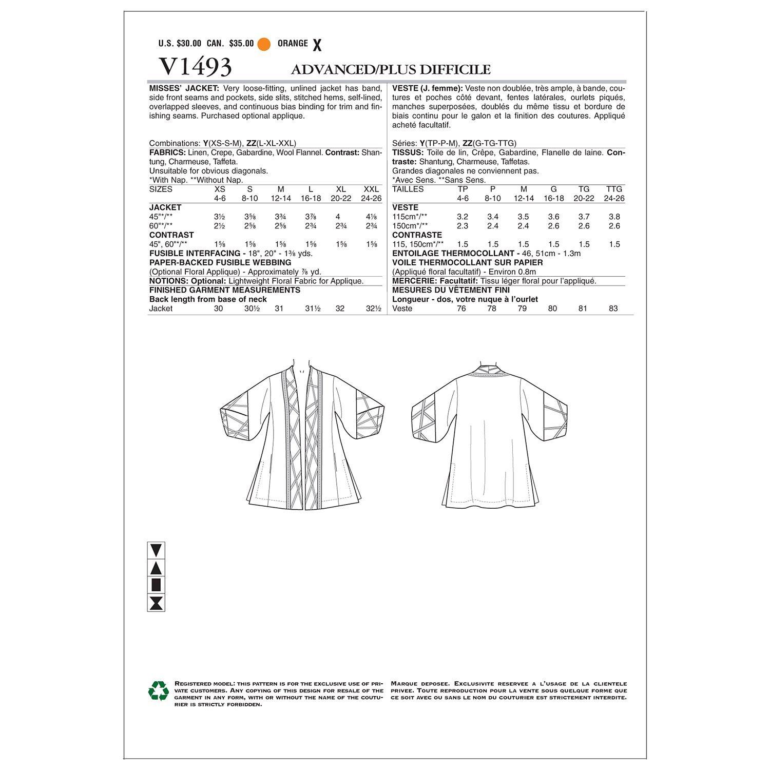 VogueWomen's Jacket Sewing Pattern, 1493