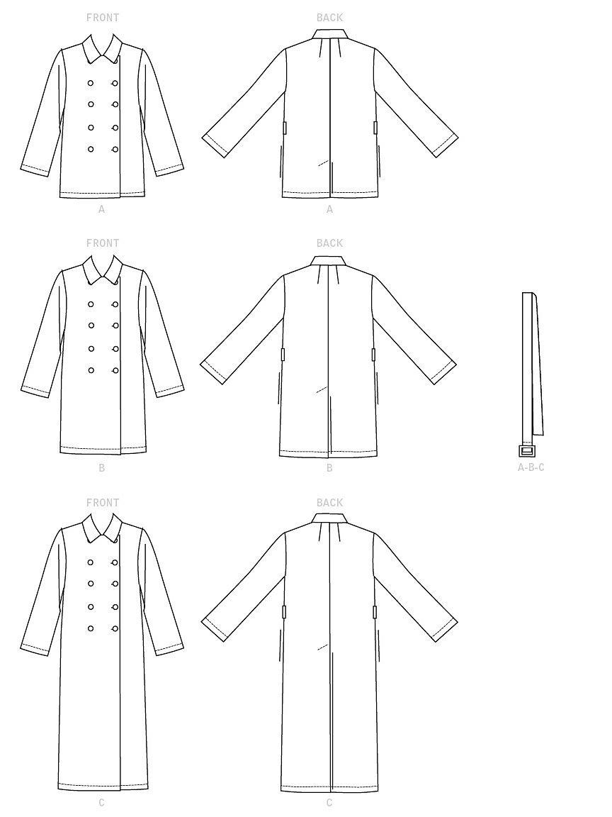 Following this pattern you can create macs with double-breasted fronts in varying lengths.