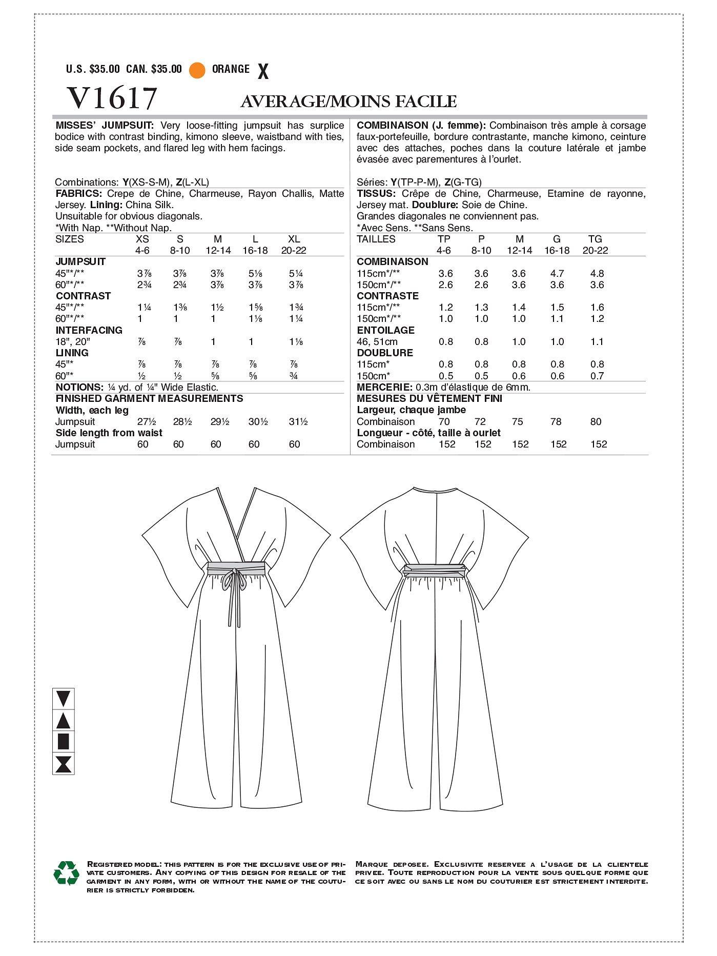 VogueWomen's Jumpsuit Sewing Pattern, 1617