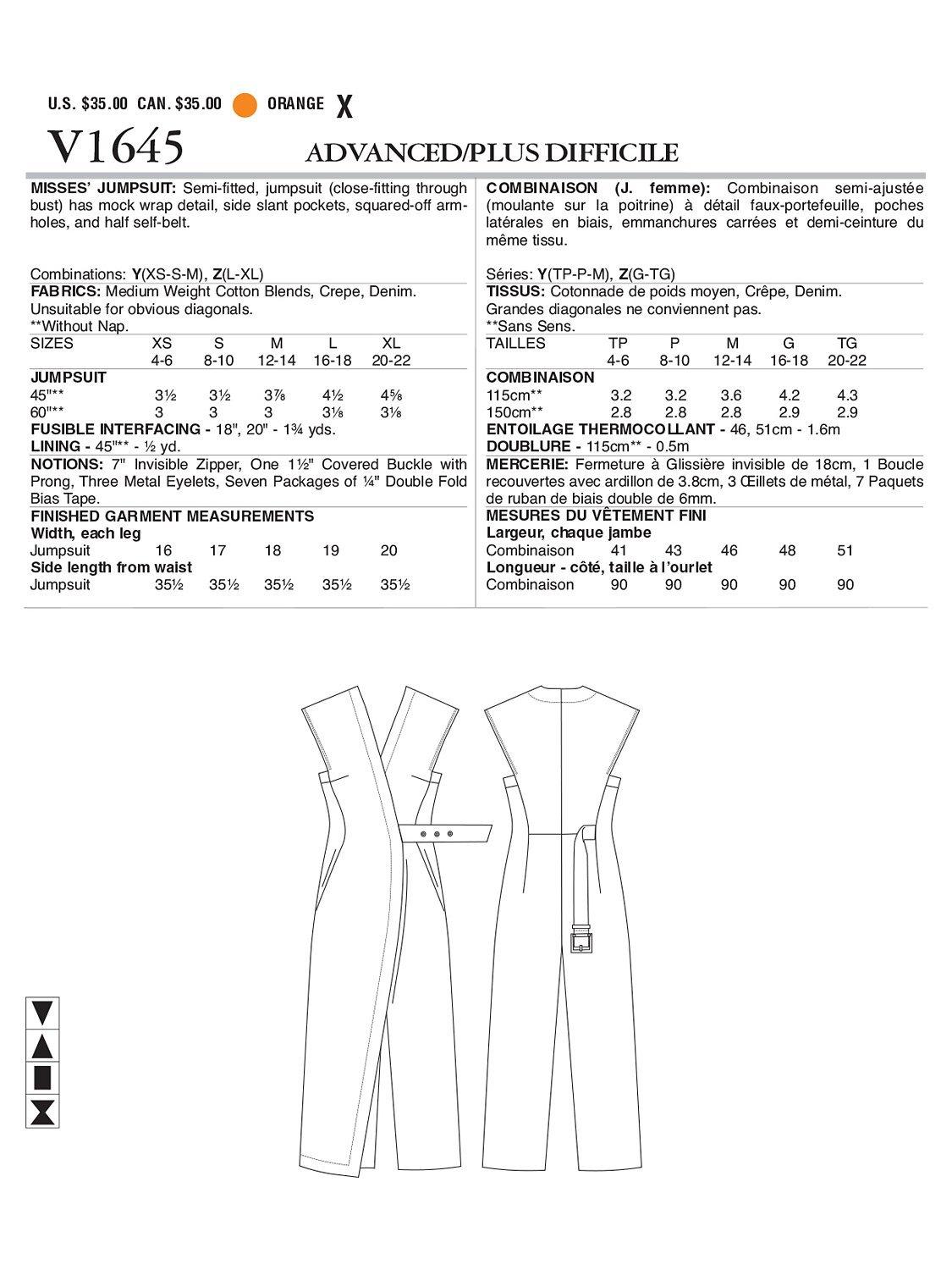 VogueWomen's Jumpsuit Sewing Pattern, 1645