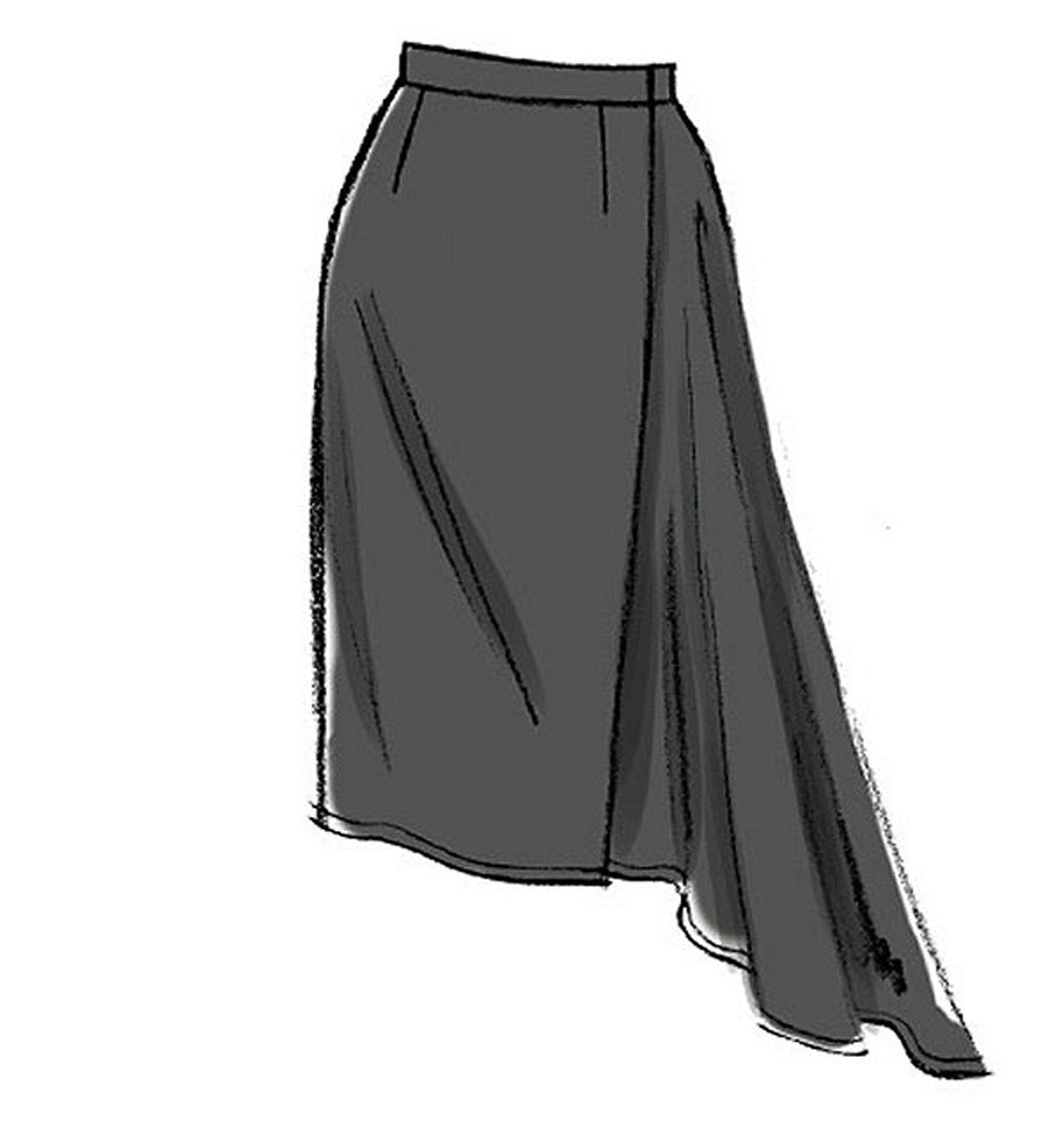 With a variety of midi skirt to choose from, this sewing pattern from Vogue is a smart buy. The semi-fitted, wrap skirt has button and/or hook & eye closing, and narrow hem. Skirts A, B, C and D have waistband. Skirt F has tie ends. Skirts A, B, E and F sides extend into drapes. Suitable for: Wool Flannel, Gabardine, or Crepe.