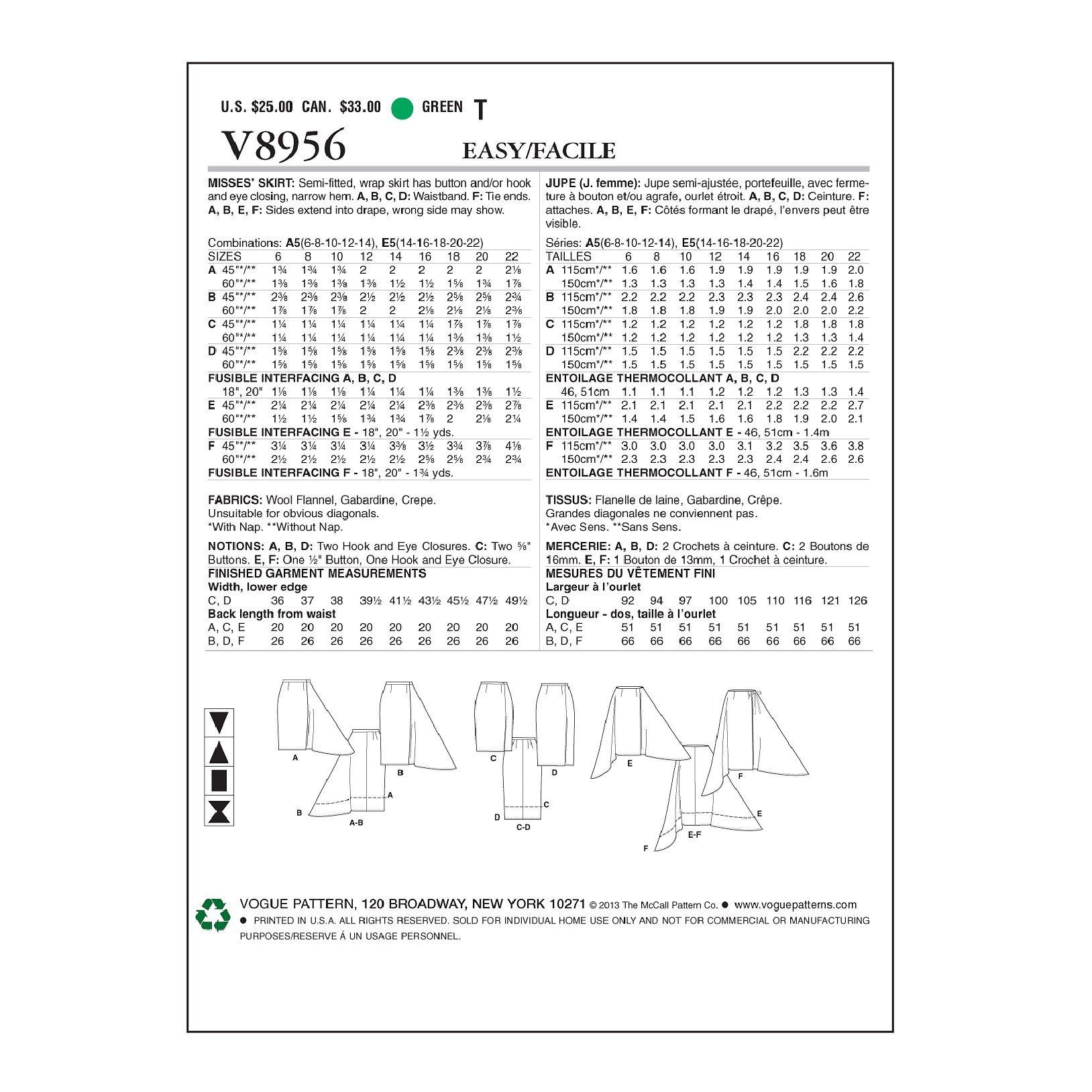 VogueWomen's Skirts Sewing Pattern, 8956