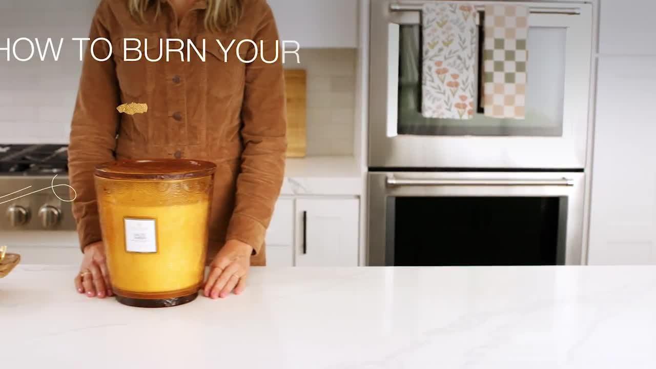 - Trim wicks to 1/4” with each burn. Place candle on a heat resistant surface or candle tray. Allow wax to melt to the candle’s edge every burn to prevent tunneling. Keep candles away from drafts to ensure a smokeless, clean burn. Use a wick snuffer to extinguish a candle without soot or smoke. Discontinue burning a candle when less than 1/4” of wax remains.
