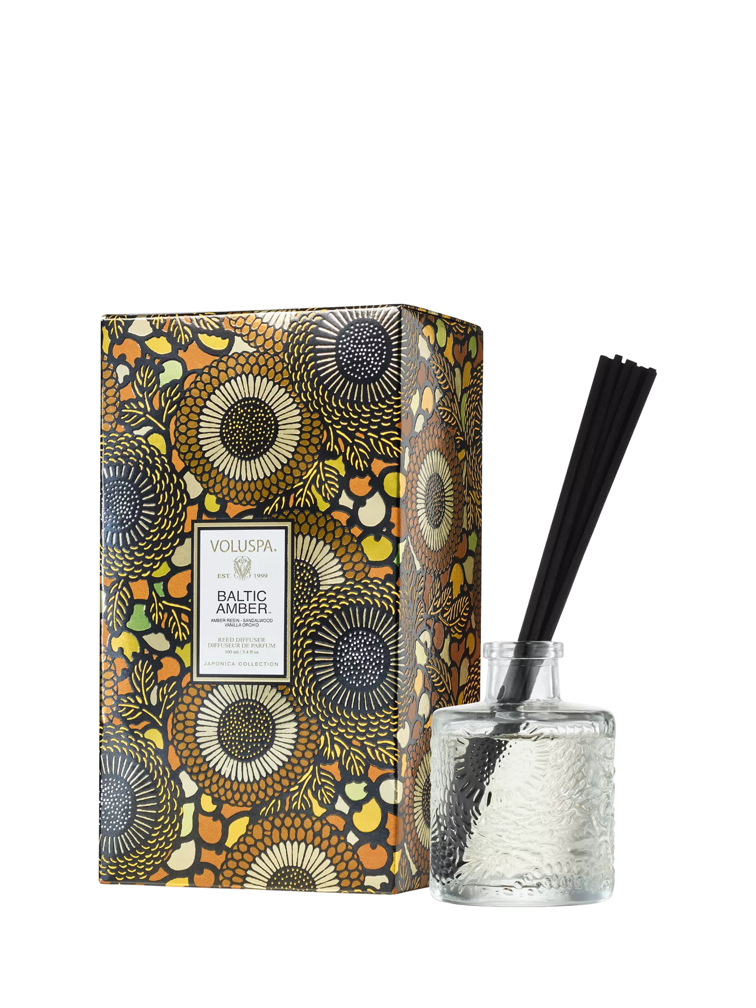 Voluspa's fragrant diffuser oil is hand-poured into an embossed glass vessel for a subtle pop of elegant decor. Create your homes signature, always-on fragrance in spaces requiring minimal effort, and enjoy for 4-6 months. Includes high absorbency reeds for powerful fragrance without overwhelming.