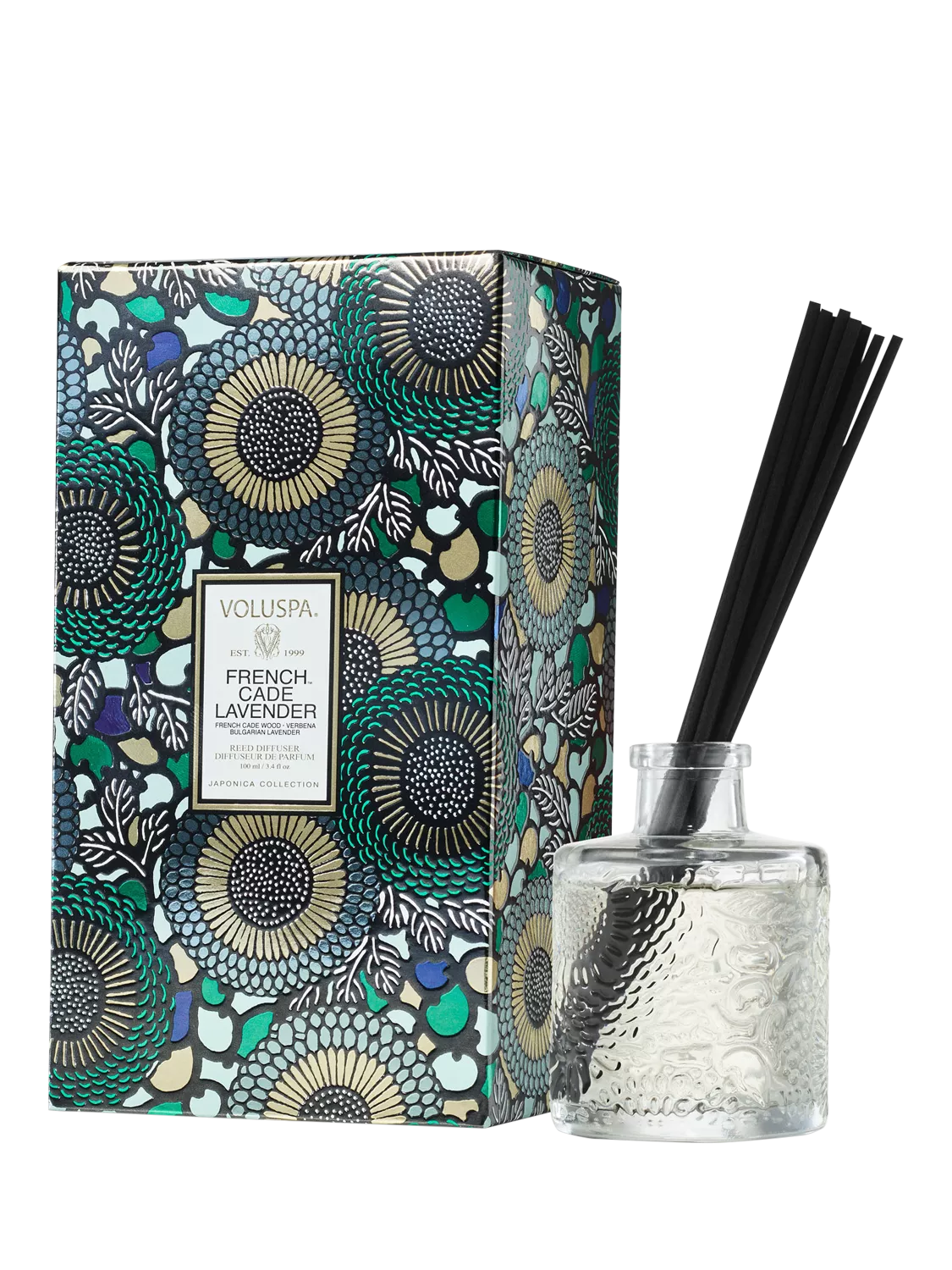Voluspa's fragrant diffuser oil is hand-poured into an embossed glass vessel for a subtle pop of elegant decor. Create your homes signature, always-on fragrance in spaces requiring minimal effort, and enjoy for 4-6 months. Includes high absorbency reeds for powerful fragrance without overwhelming.
