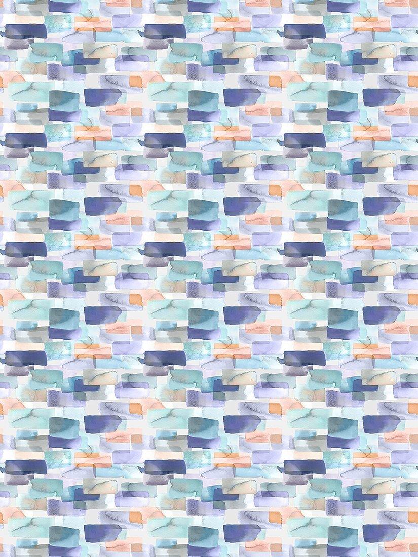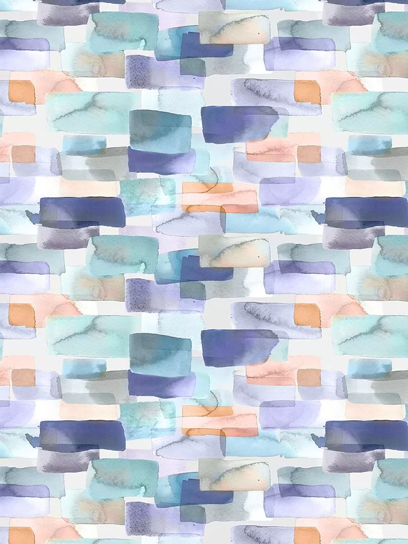 Watercolour brushstrokes pattern fabric creates a beautiful abstract effect in cool and calming colours with accent warmer tones.