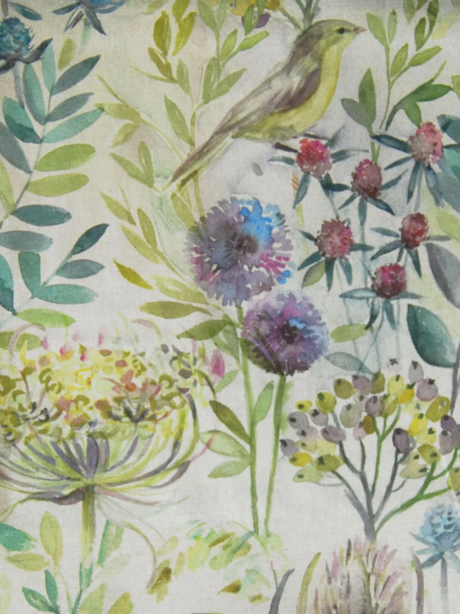 Playful, inquisitive birds are illustrated beautifully amongst spring florals on this fabulous bird print fabric.