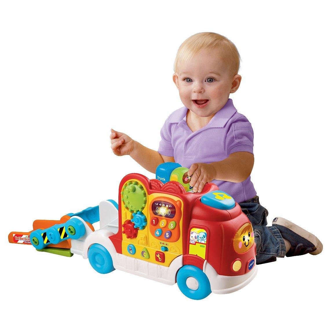 This Toot-Toot Car Carrier also features a chunky music button and shape buttons that introduce car maintenance phrases, tools and the shapes. Just activate the motion sensor for fun sounds and cheerful melodies.
