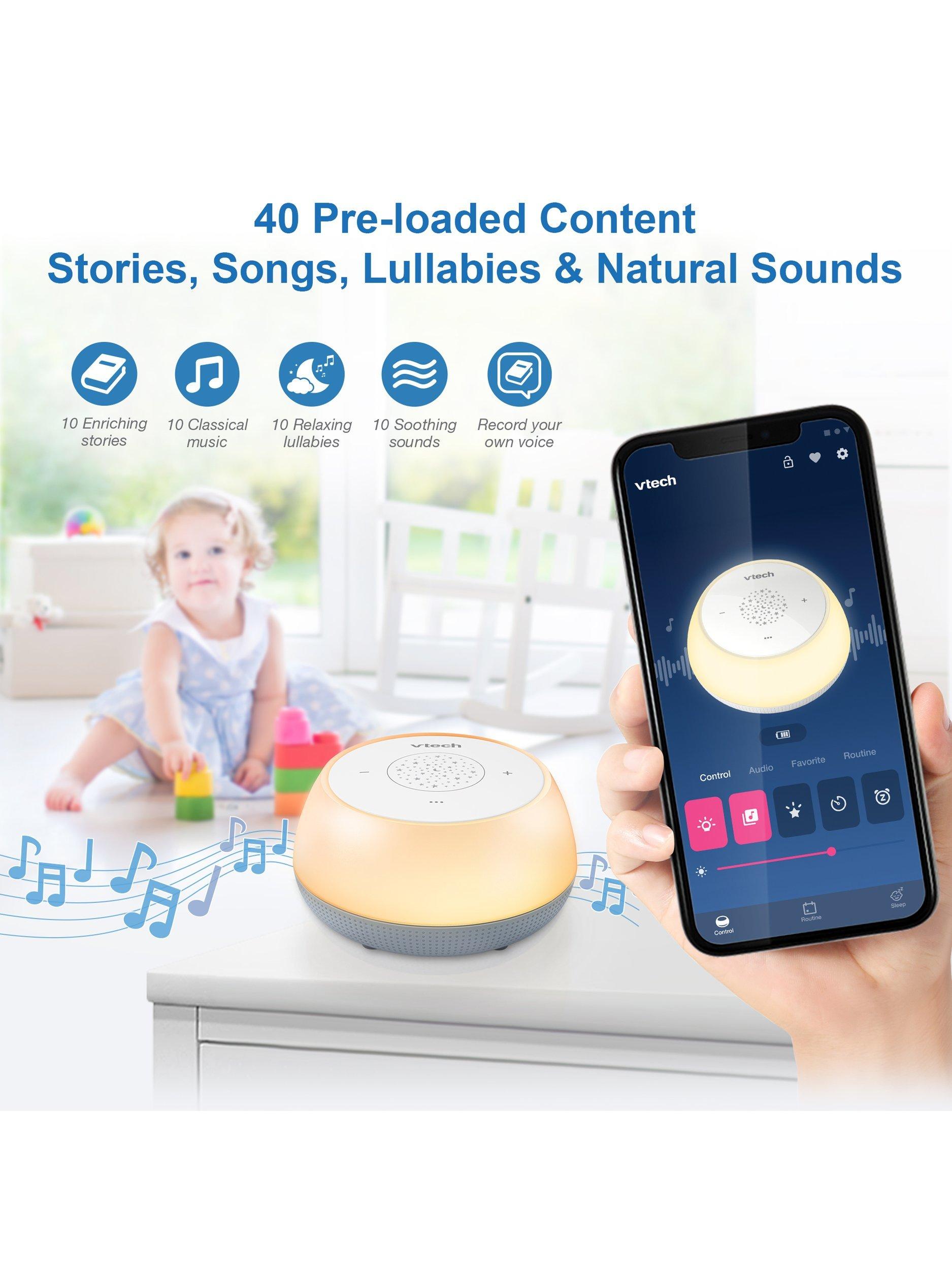 Encourage healthy sleep habits using the colourful night light, glow-on-the-ceiling projector, and a Bluetooth speaker. Craft sleep-inducing atmospheres with 40 pre-programmed stories, classical music, lullabies and natural sounds, or stream from your favourite smartphone music service. You can also record and upload your own voice, songs, or stories using the subscription-free app.