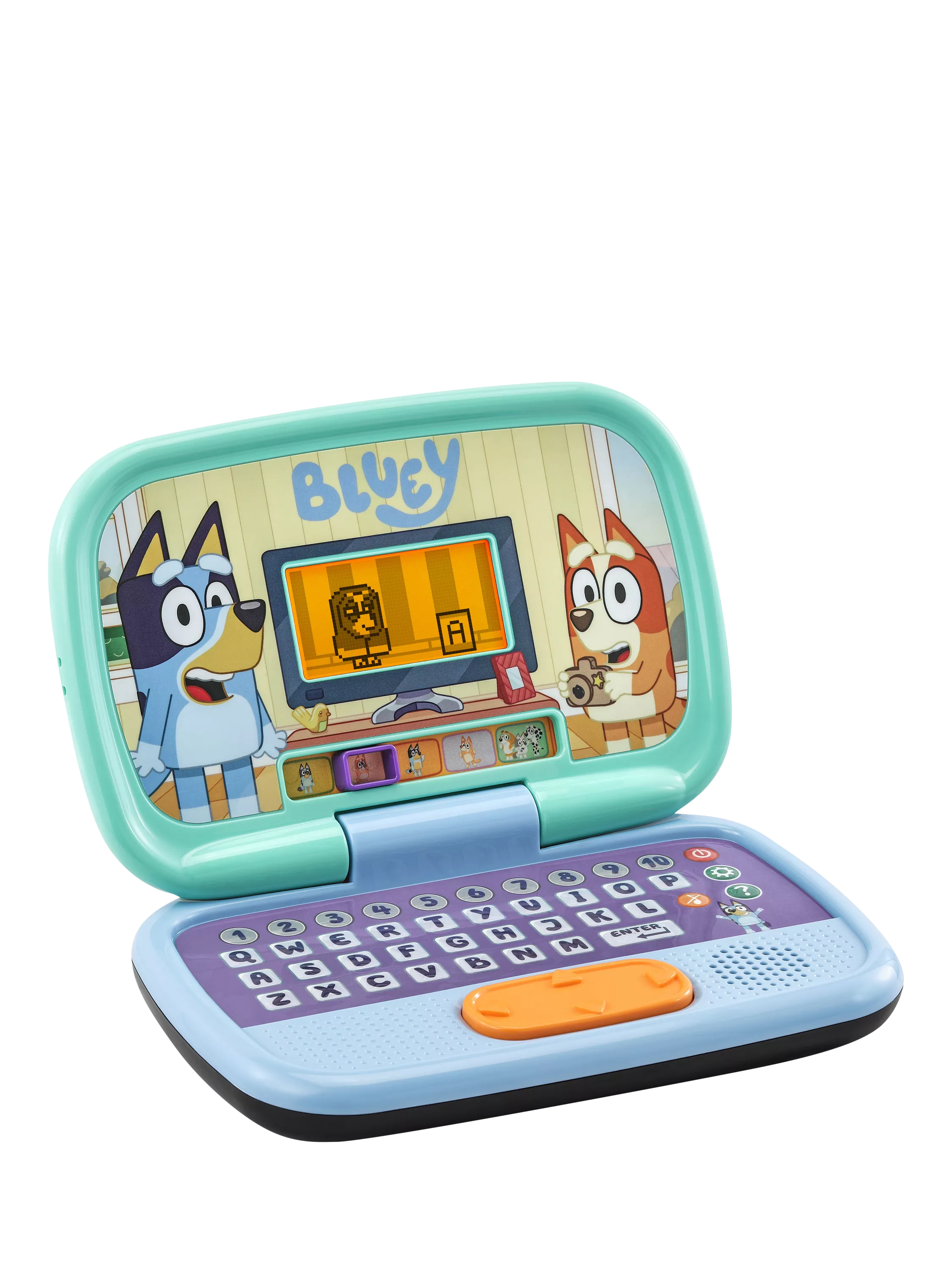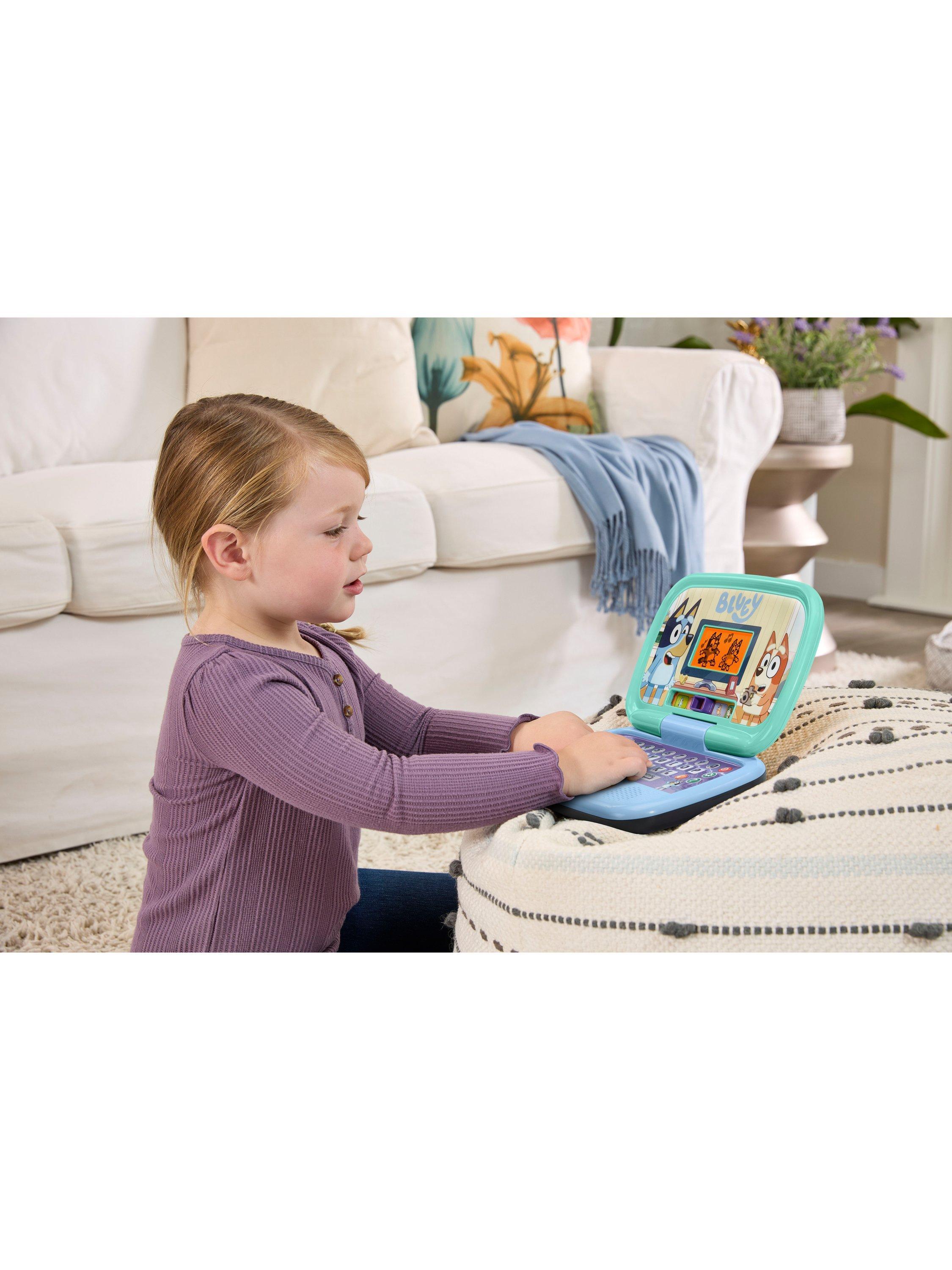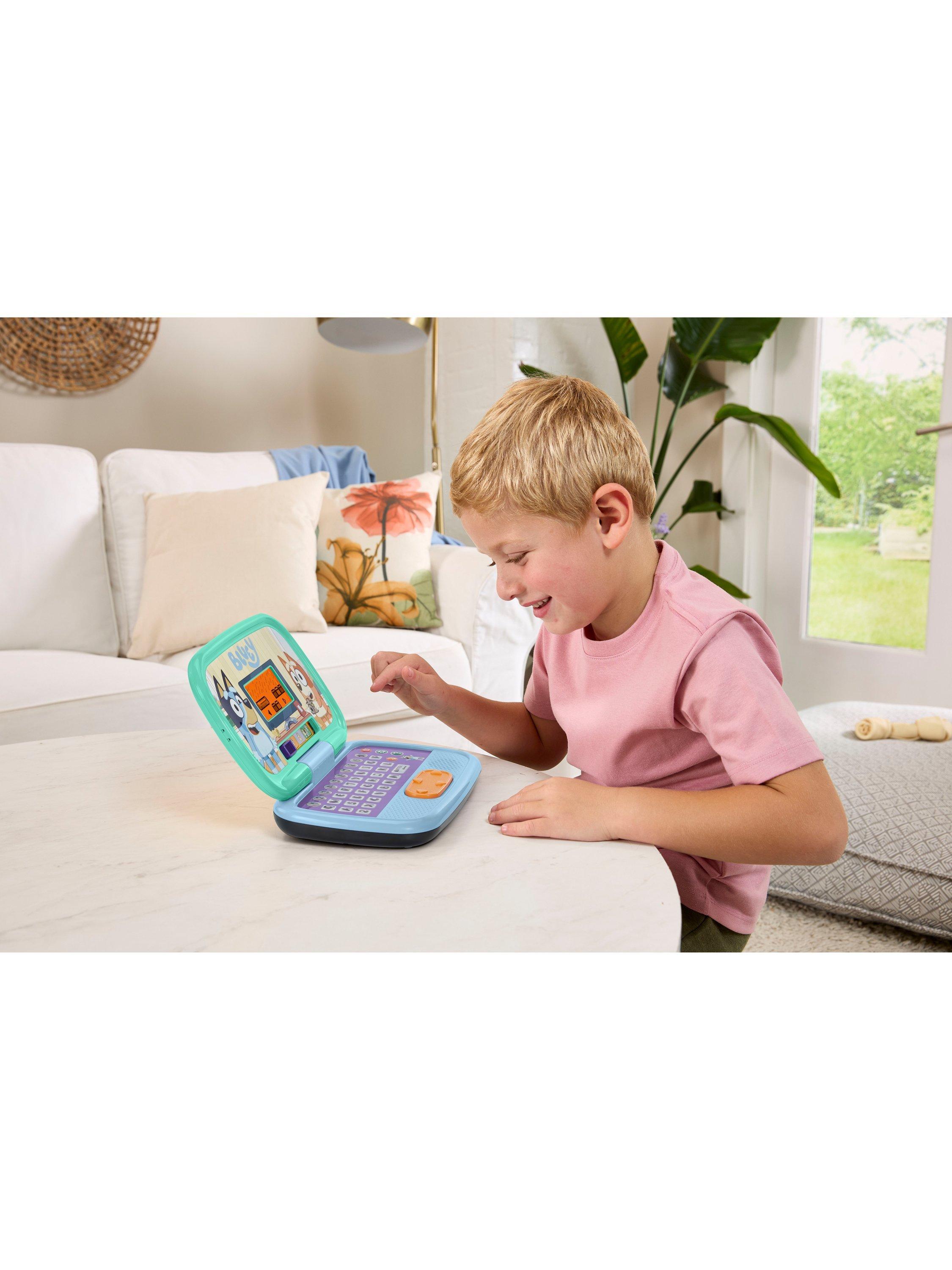 Join Bluey, Bingo, Mum and Dad for role-play fun with the Bluey Game Time Laptop by VTech® This Bluey-themed laptop includes 10 interactive games within five modes that will delight and entertain as they encourage problem-solving and an interest in learning.