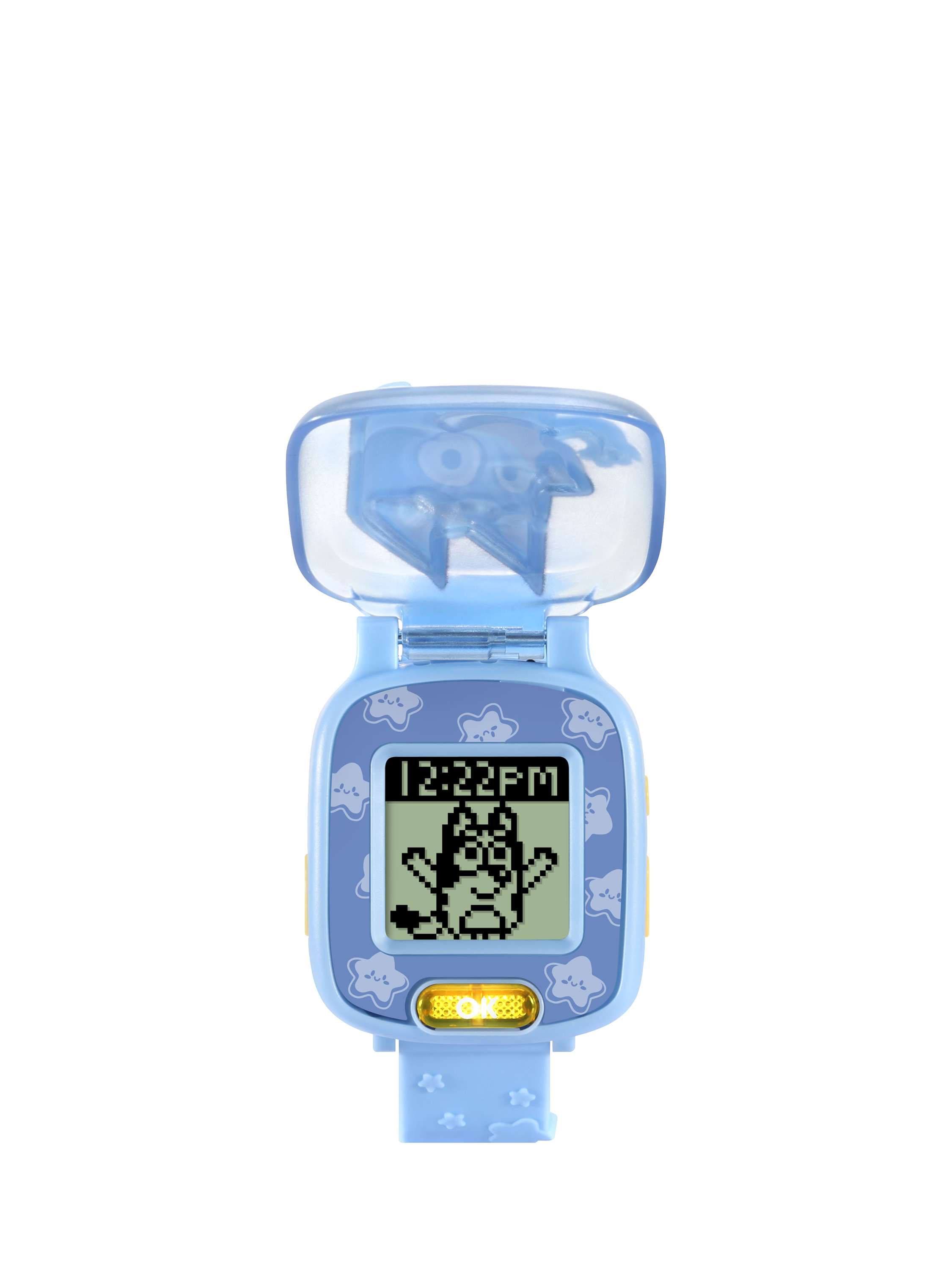 Let’s play with Bluey, Bingo and the Wackadoo Watch! This cute wristwatch featuring Bluey includes eight digital clock faces, time tools and four games.