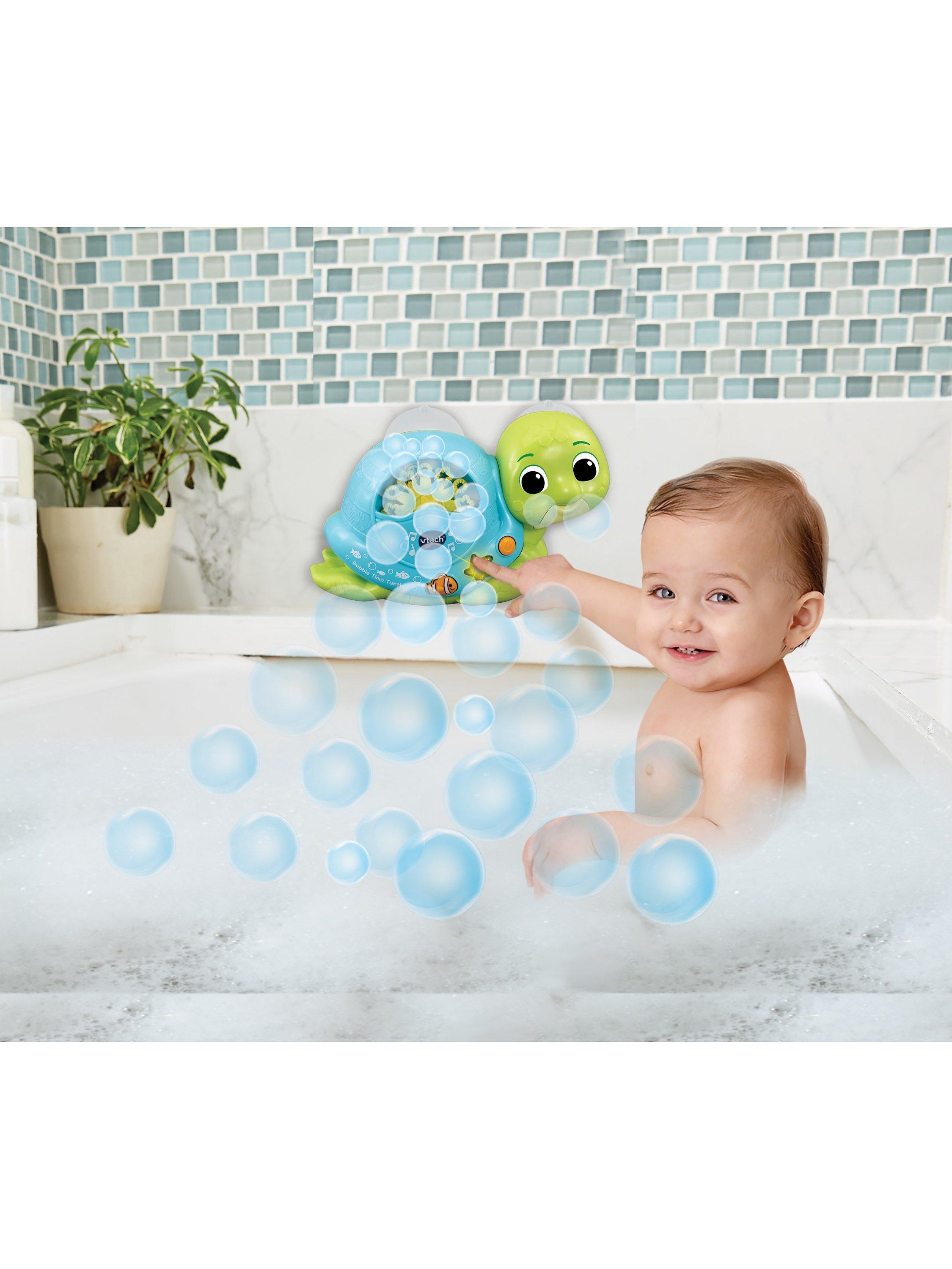 This cute turtle magically releases bubbles in time with the music and sounds. Clownfish and light-up starfish buttons introduce sea animals and play fun sing-along songs and melodies. 2 strong suction cups mean that turtle can easily be attached to the side of the bath or bathroom tiles.