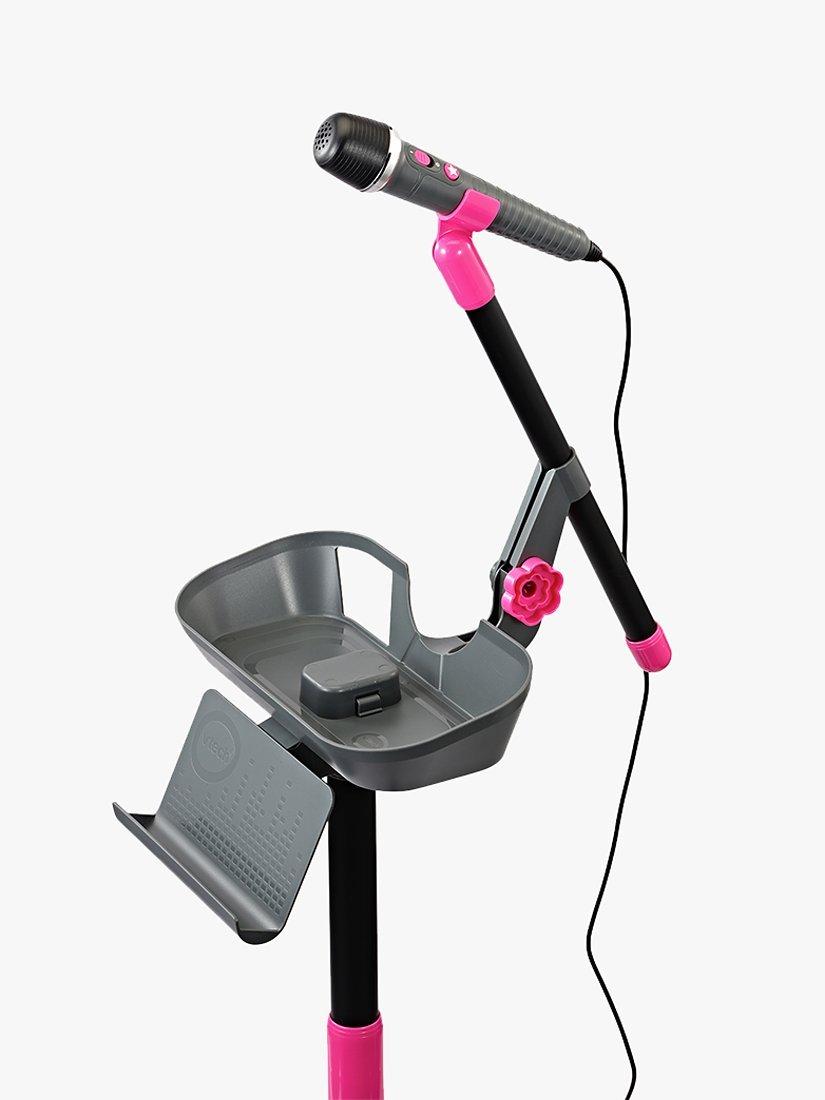 This feature packed product includes a microphone, adjustable stand and a 3.5mm jack audio cable, so you can connect your own music player! Use the Music Magic feature to remove or reduce the vocals of songs. Play 4 fun games and add in over 30 sound effects to your performances!