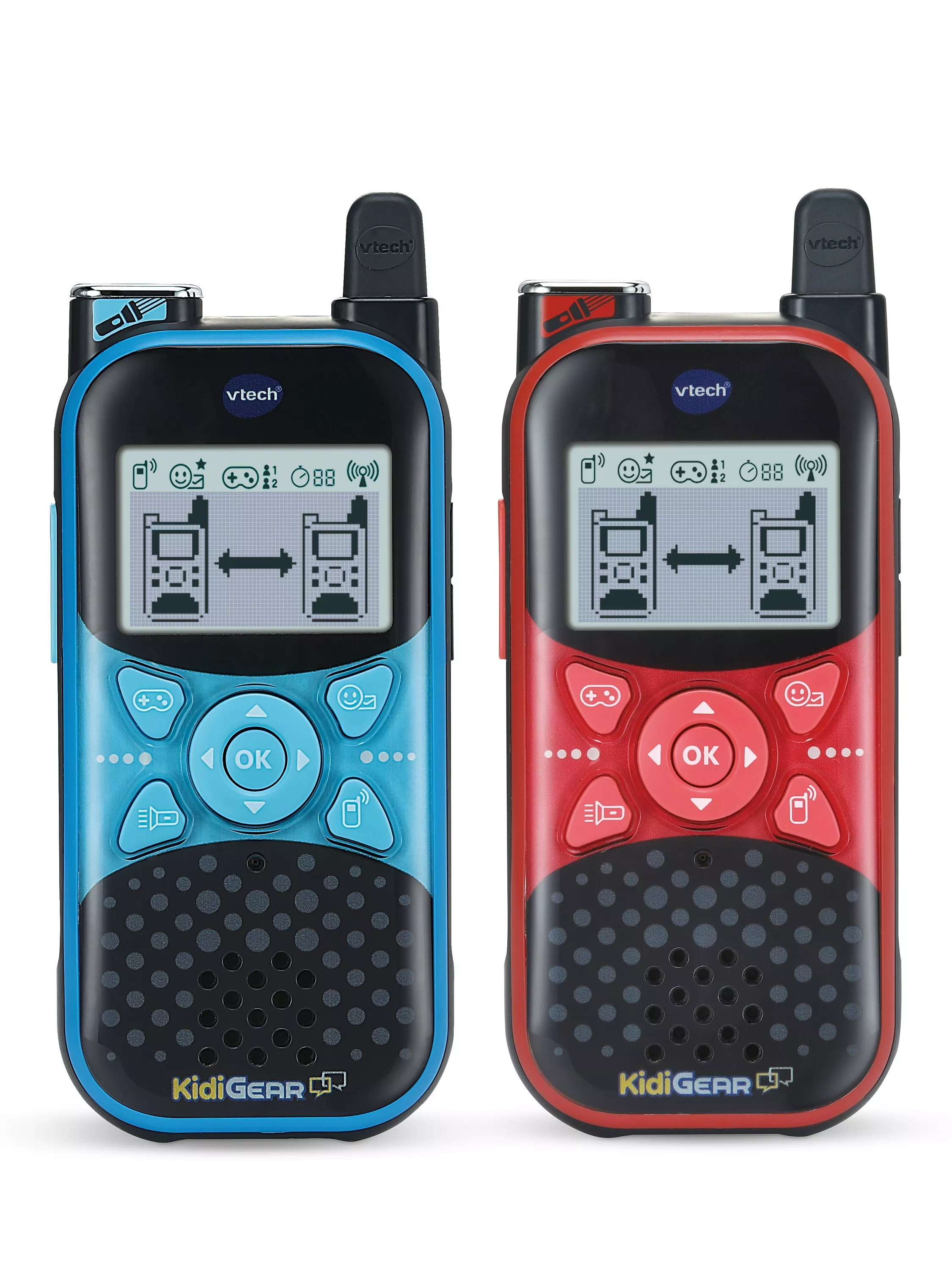 This set of two walkie talkies come with a torch and a cool backlit screen. Chat, with super clear sound, up to 200 meters away using safe digital technology. Send text messages, use animated icons, play multiplayer games - from a choice of four, create and send greeting cards.
