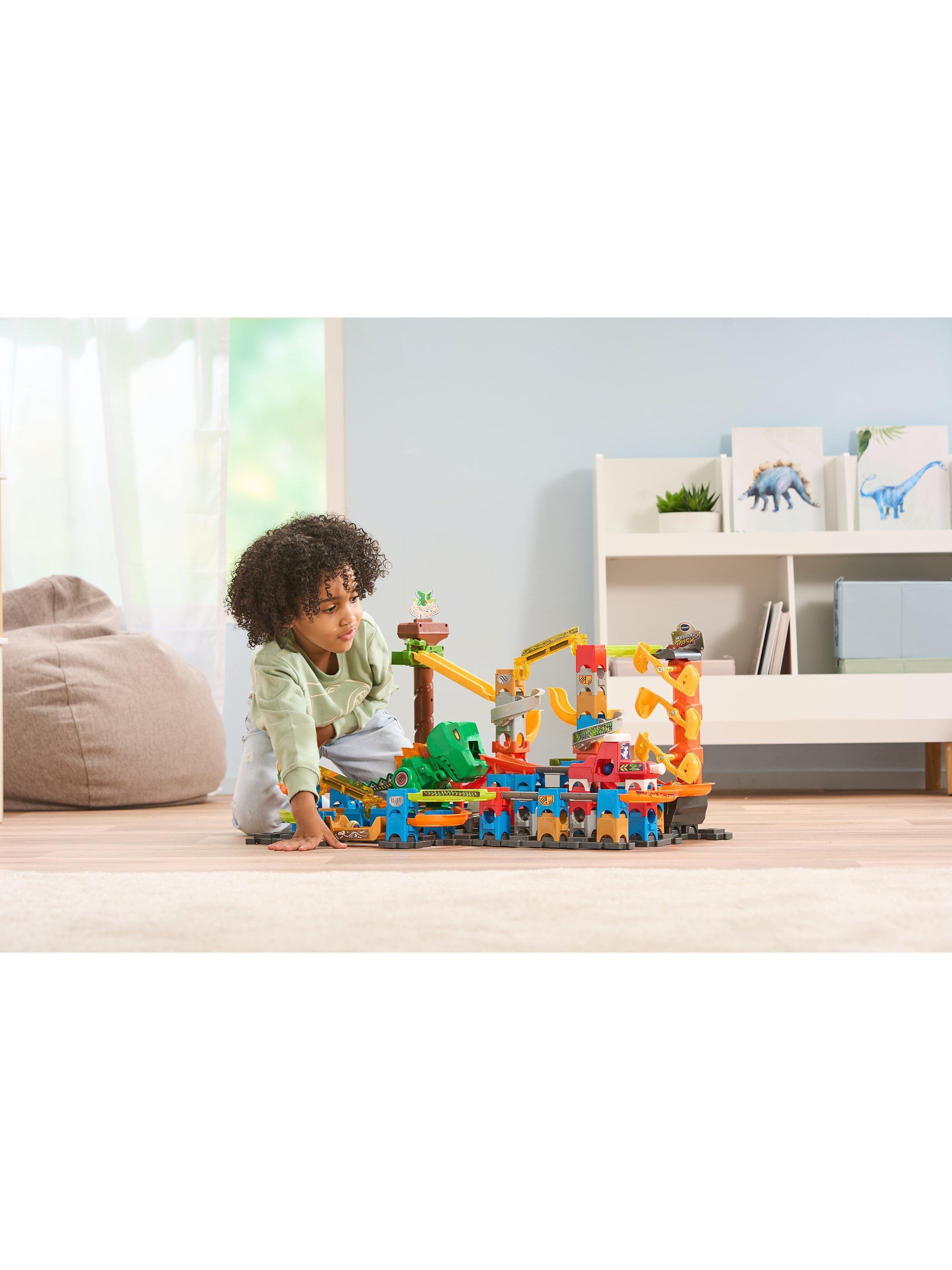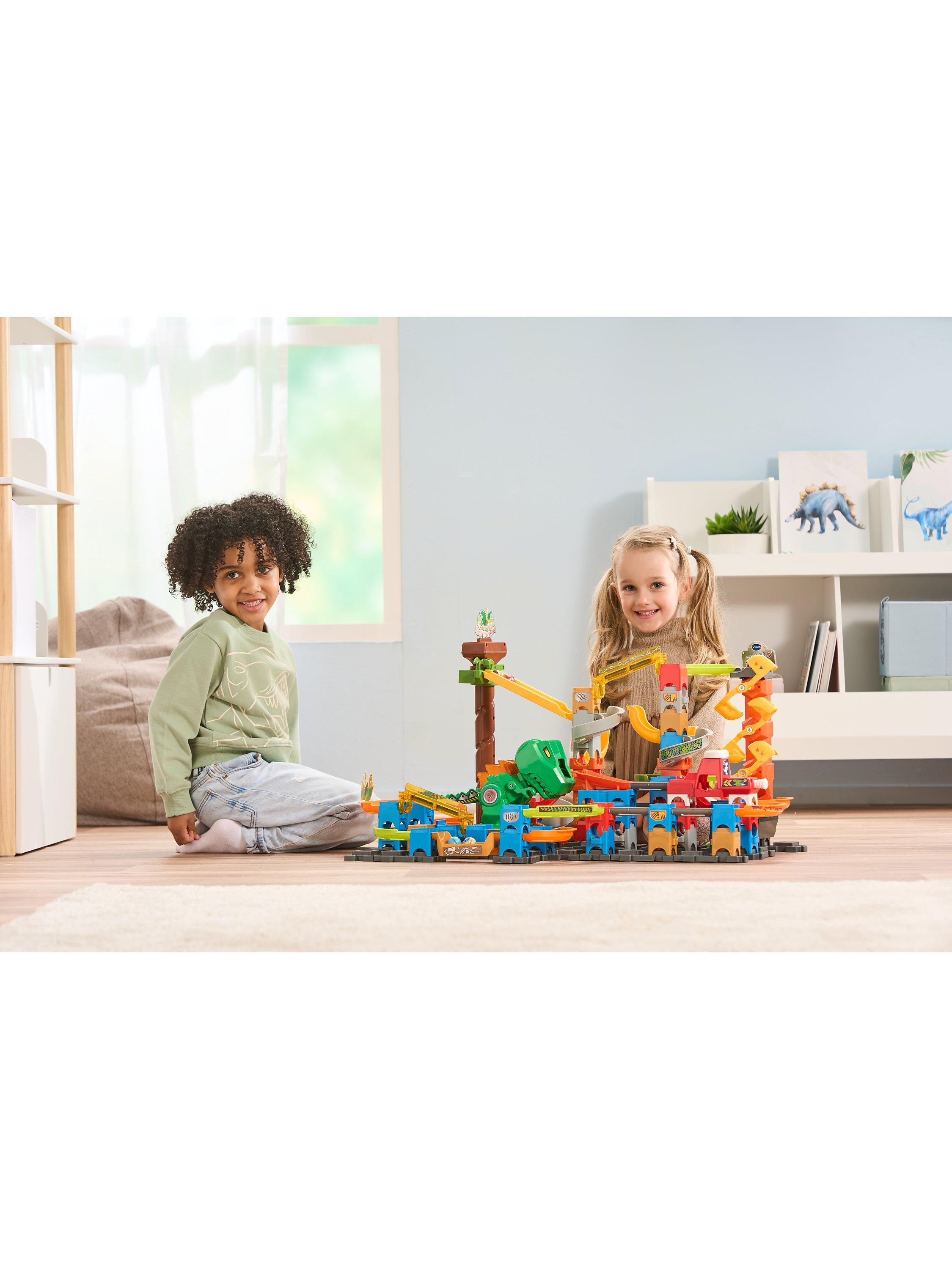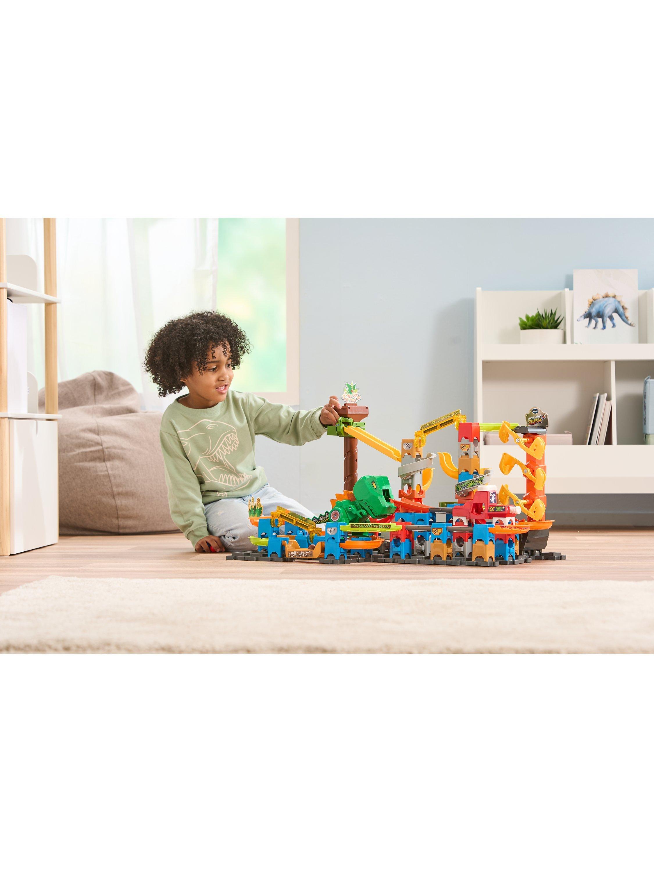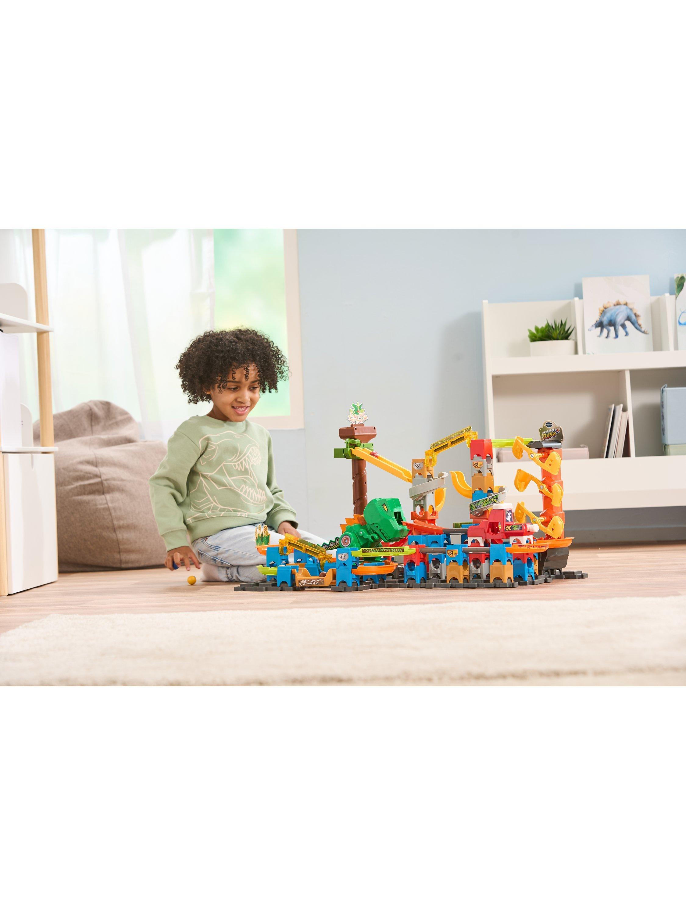 Launch marbles and watch as dino chomps down on the Mega Marbles and extends its tail! Motorised spinning lift carries marbles up to the top of the set for continuous play! Watch as the spiral lift rapidly carries Mega Marbles up!