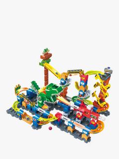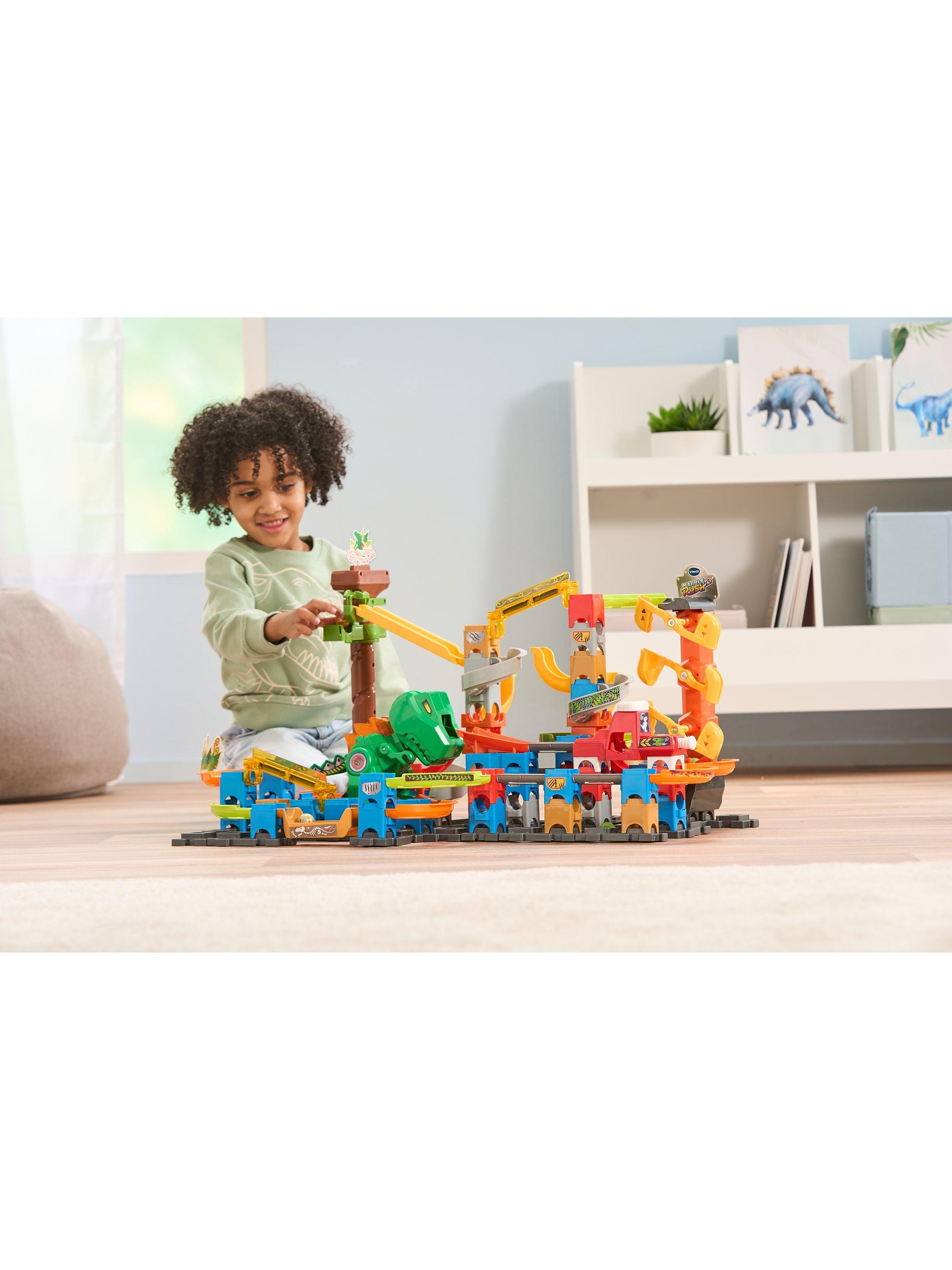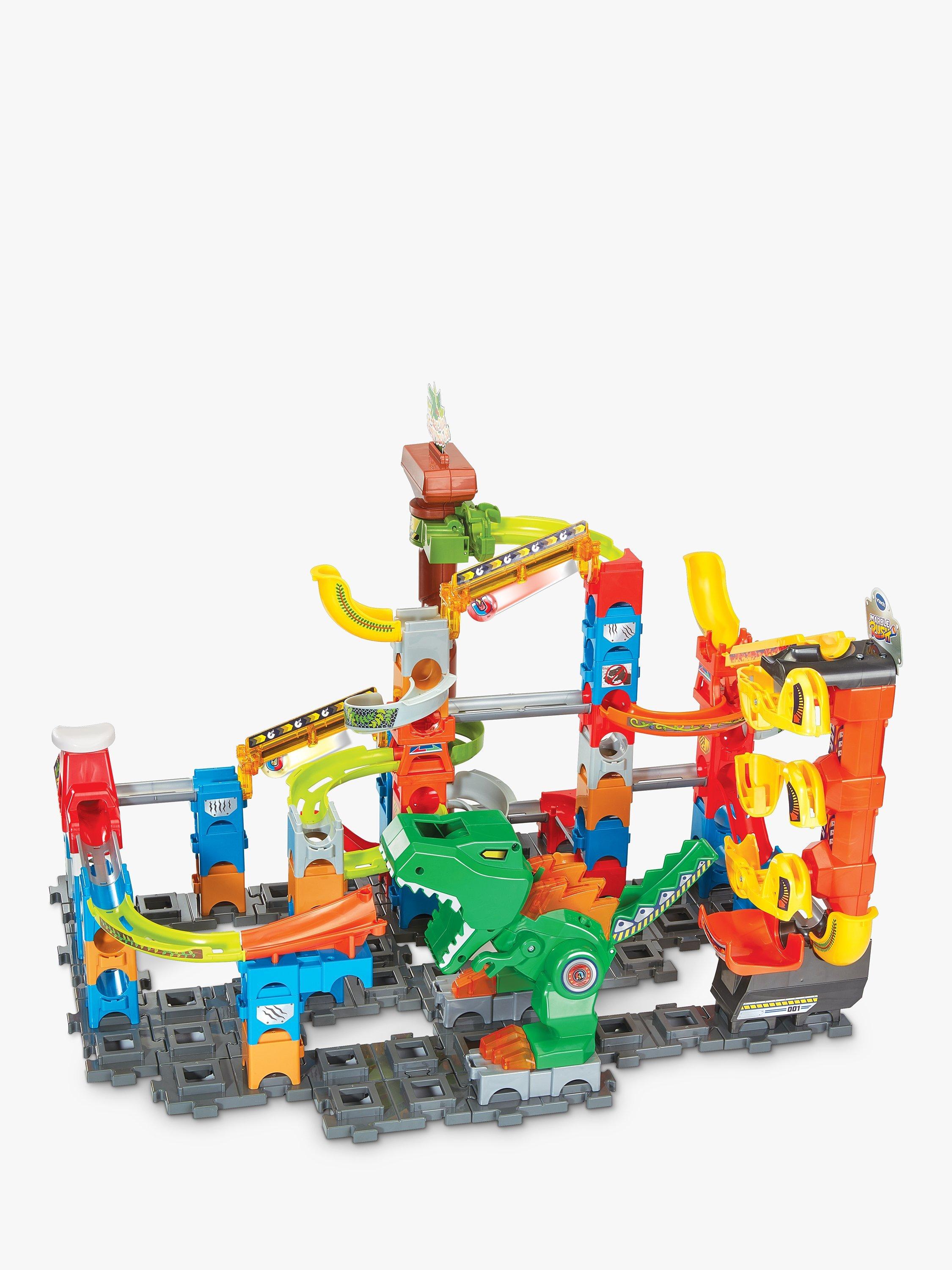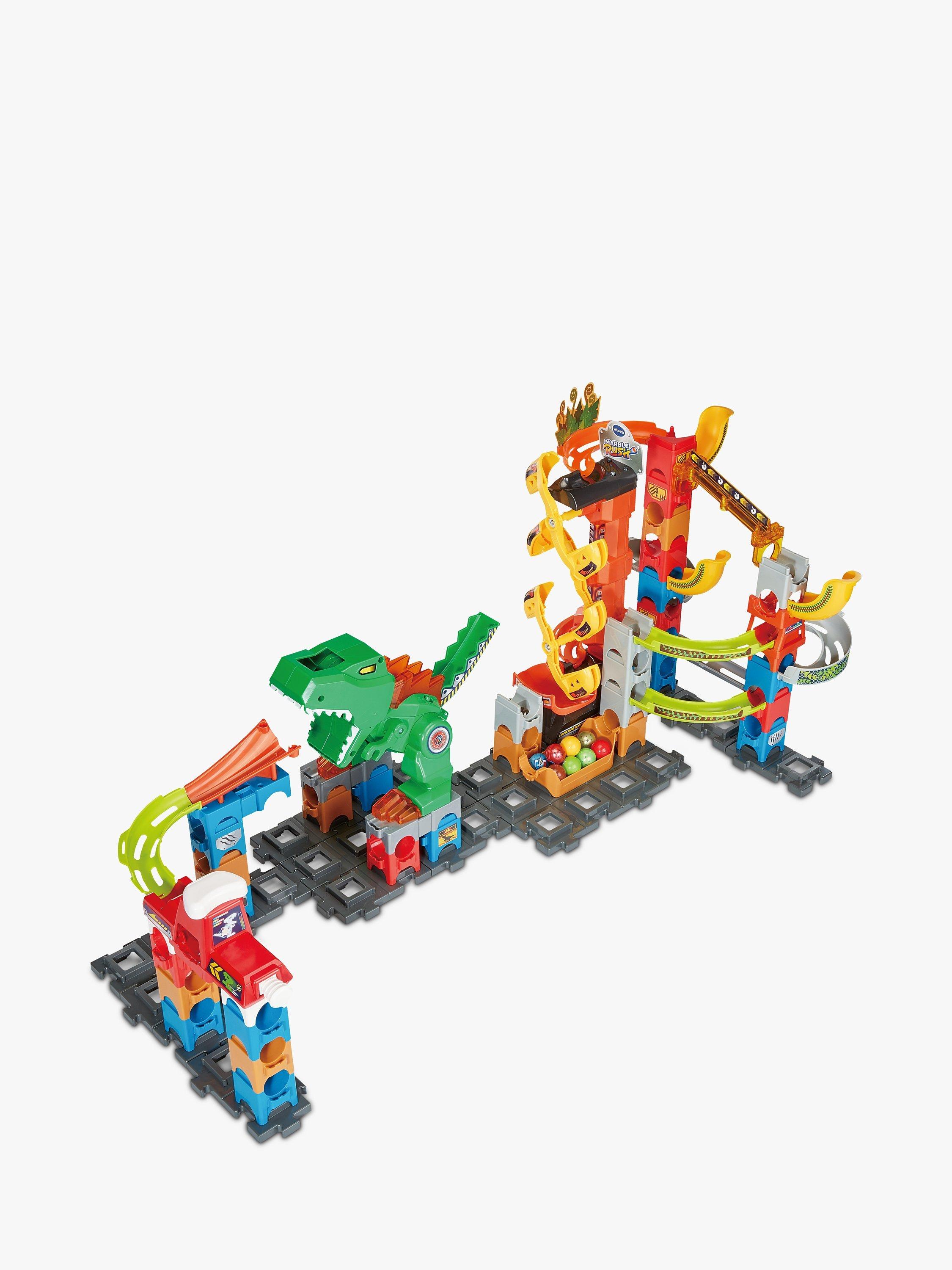 Launch marbles and watch as dino chomps down on the Mega Marbles and extends its tail! Motorised spinning lift carries marbles up to the top of the set for continuous play! Watch as the spiral lift rapidly carries Mega Marbles up!