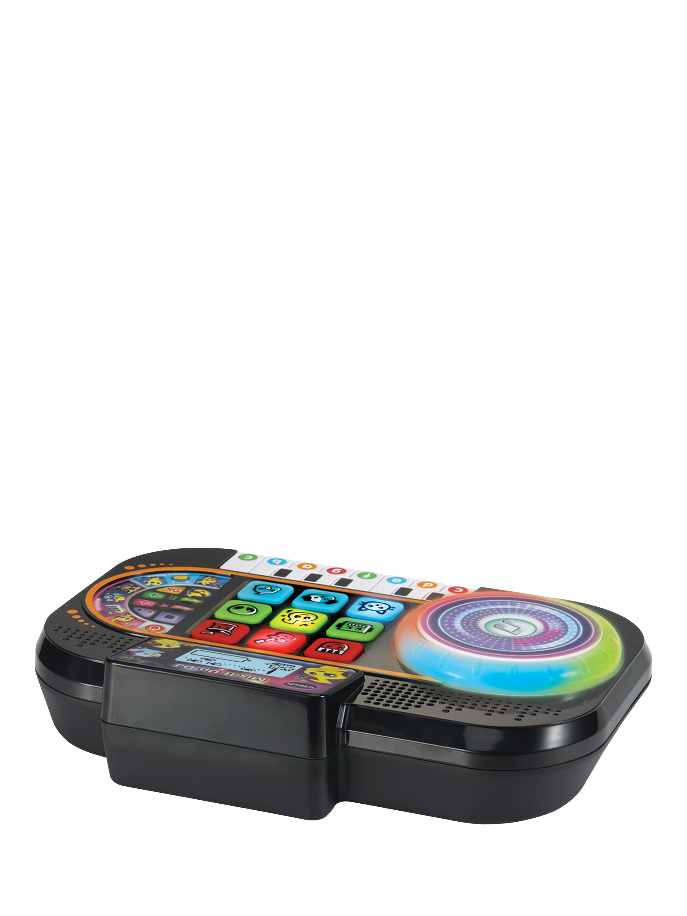 Featuring 25 buttons to interact with to play sounds, music and more! Explore fun DJ activities and games with cool animations on the backlit display! Enjoy recording and playing back your DJ tunes and control the volume and tempo as you play! Press the 8 piano keys to play piano, character and animal sounds! Spin the DJ turntable for fun sound and light effects as you jam! So what are you waiting for, DJ? Let's get mixing!