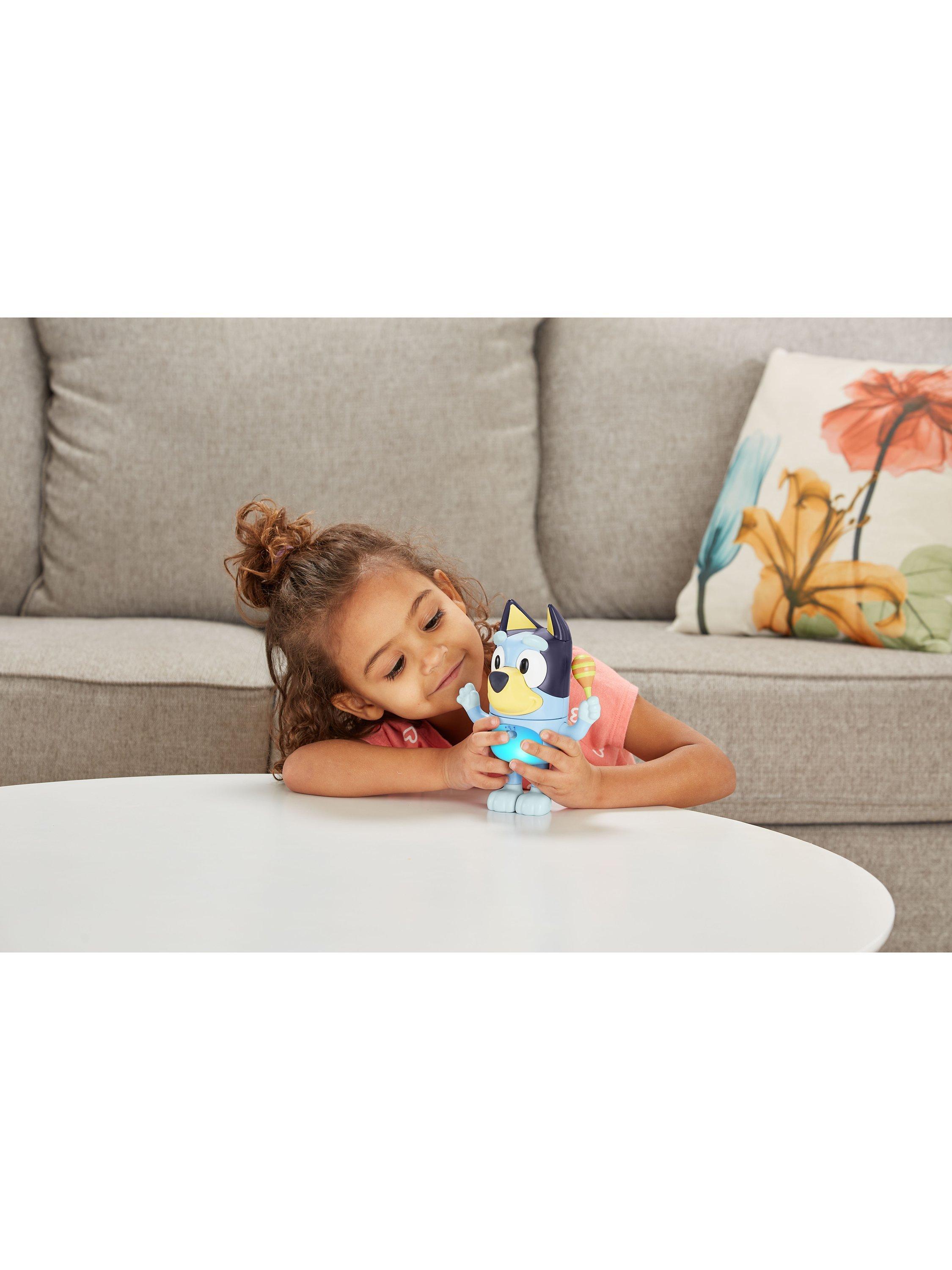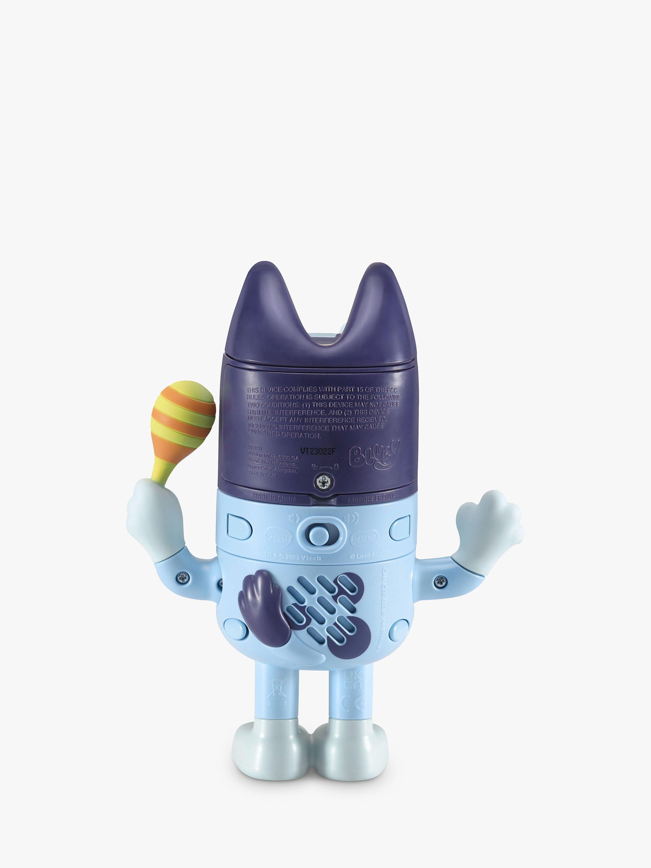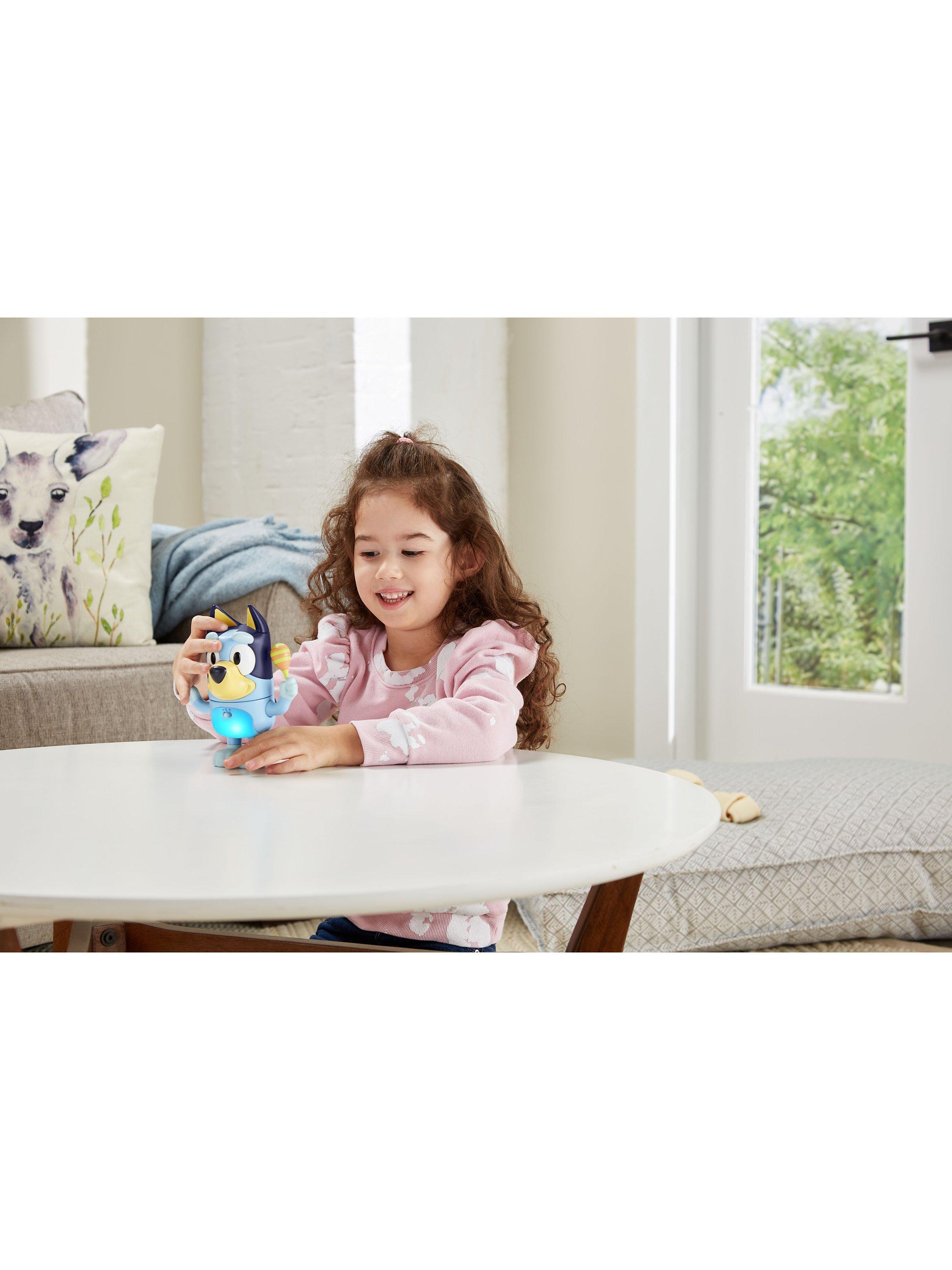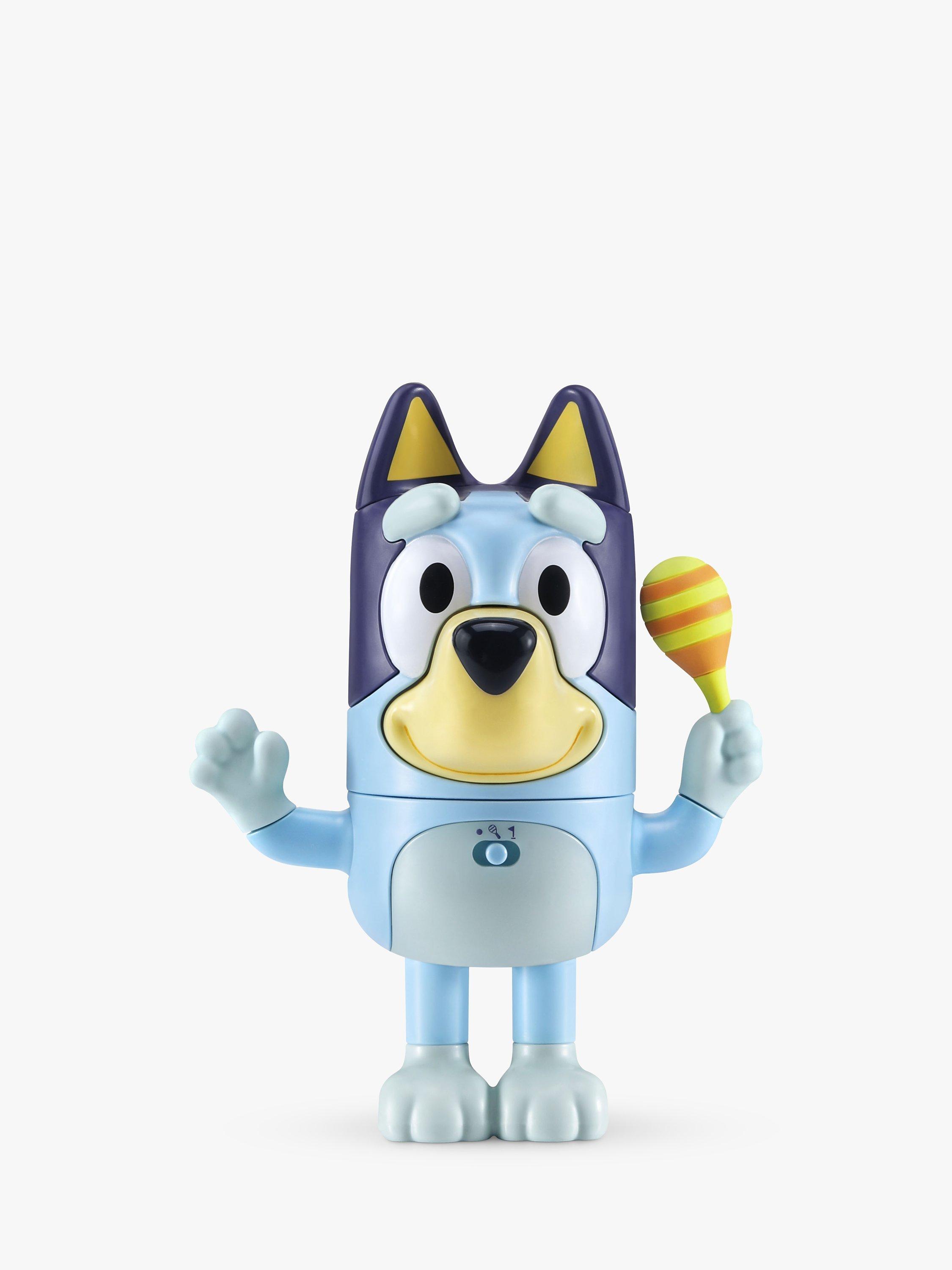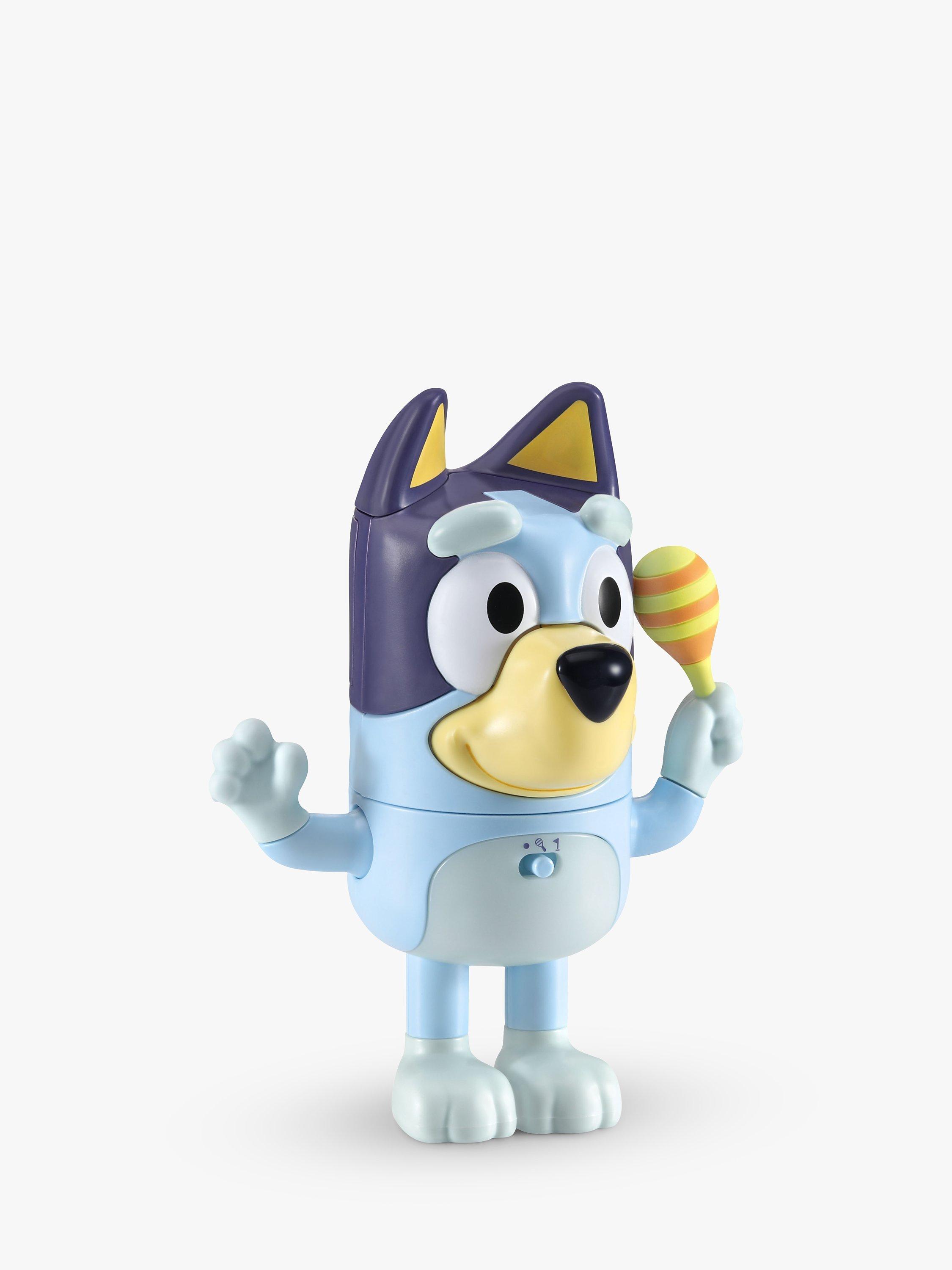 Shake It Bluey! Press Bluey's nose, wave her right arm, turn her head, shake the shaker or bop her body down to hear sounds and phrases in Free Play mode. In Follow Me mode, follow the sequence to move to the next level.