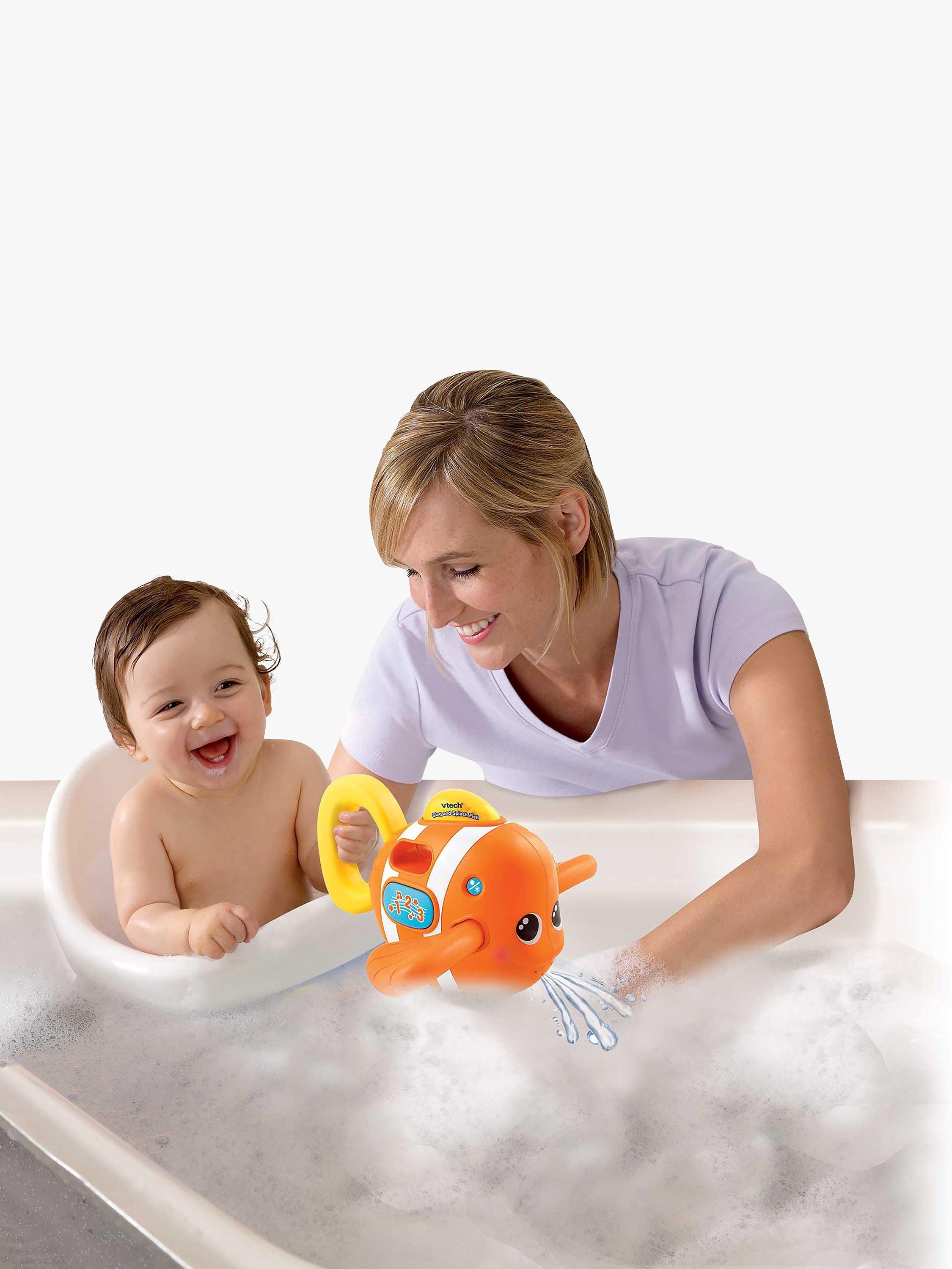 Let’s splash around! The Sing and Splash Fish is a fun bath toy with interactive features for water-play fun.