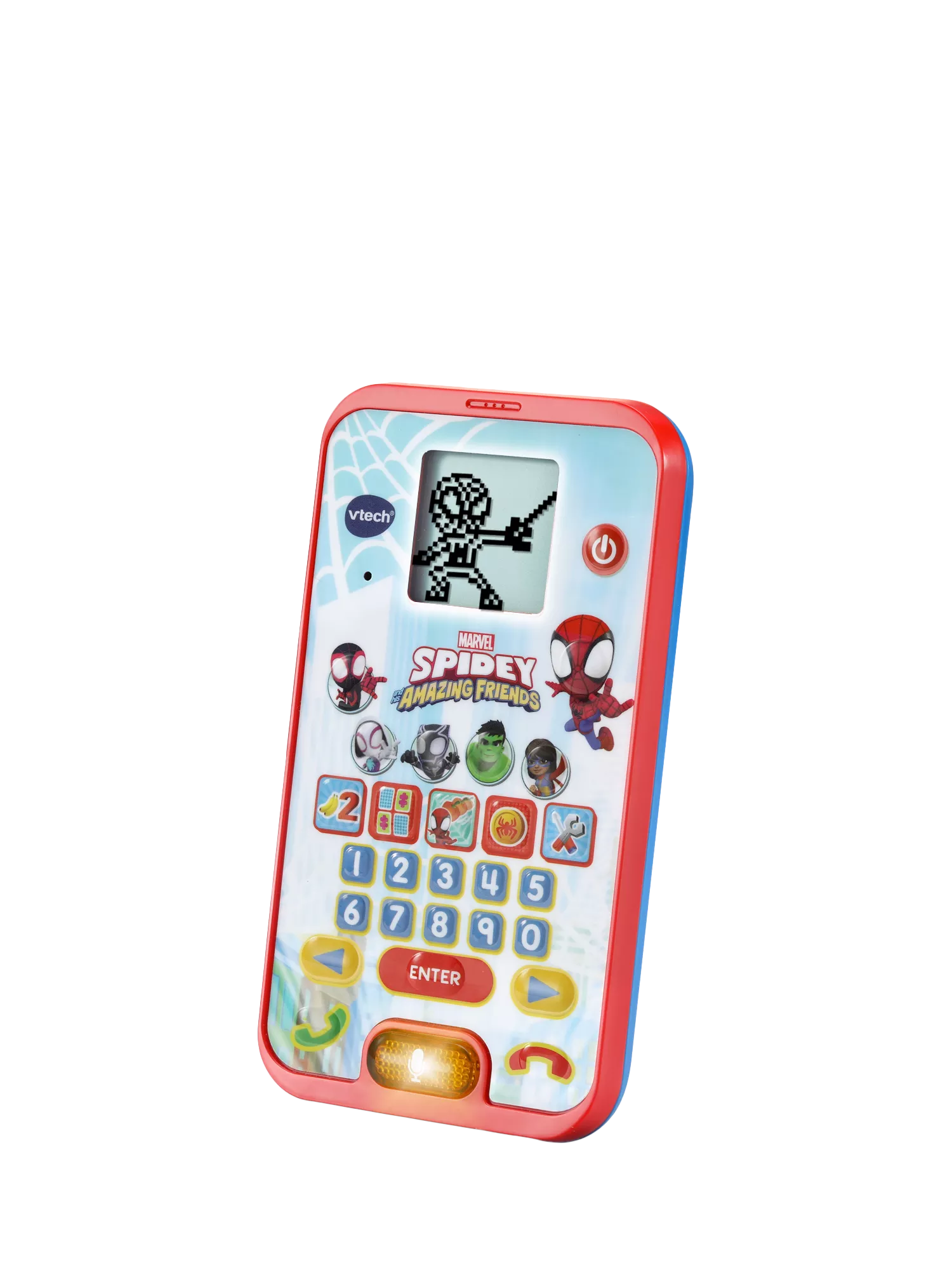Spidey & Friends are waiting for you to call on the Spidey and His Amazing Friends: Spidey Learning Phone by VTech®, with voice-activated play, your little superhero can pretend to call Spidey and the team for role-play chat with Spidey or hear fun facts about his amazing friends!