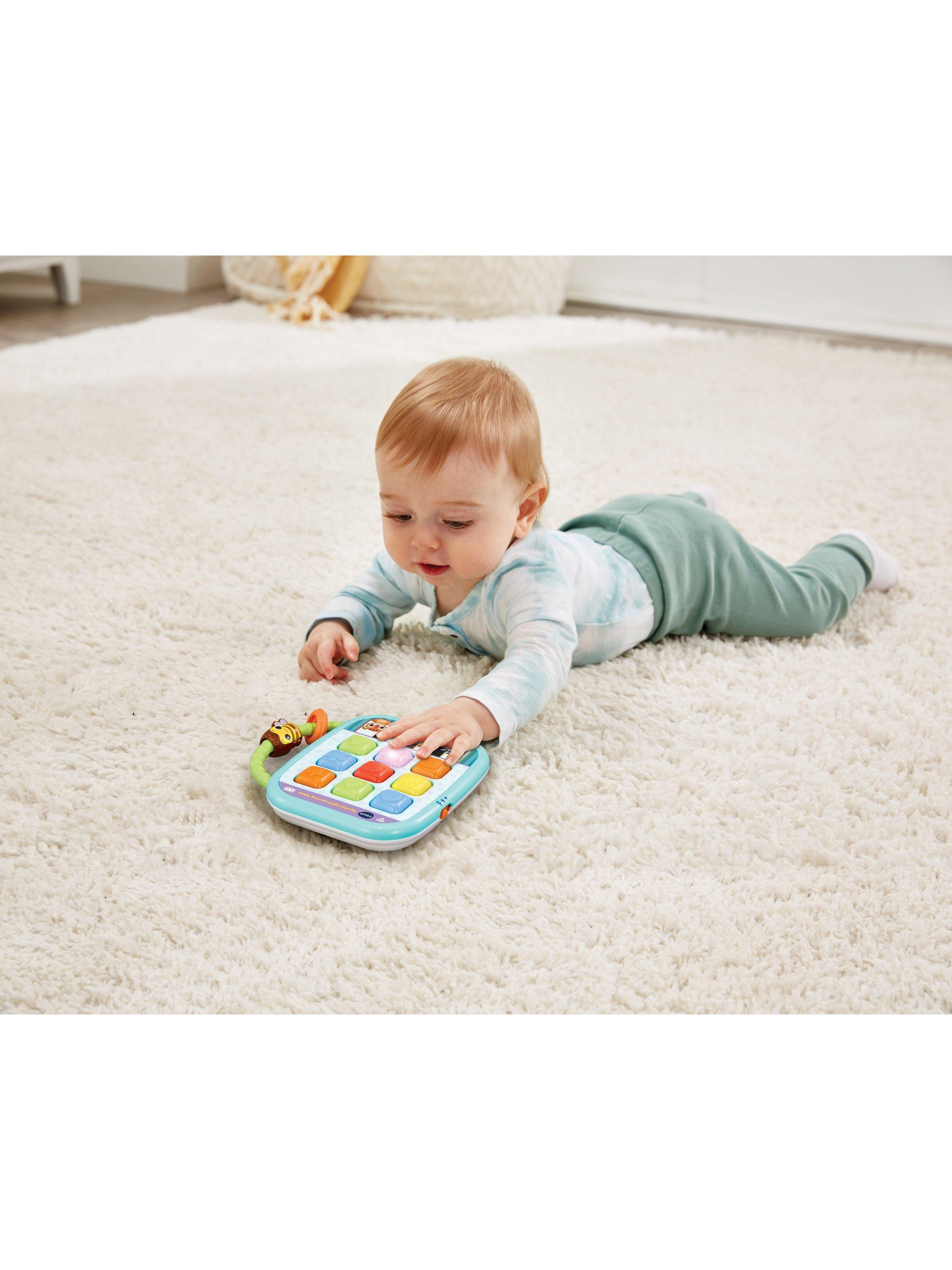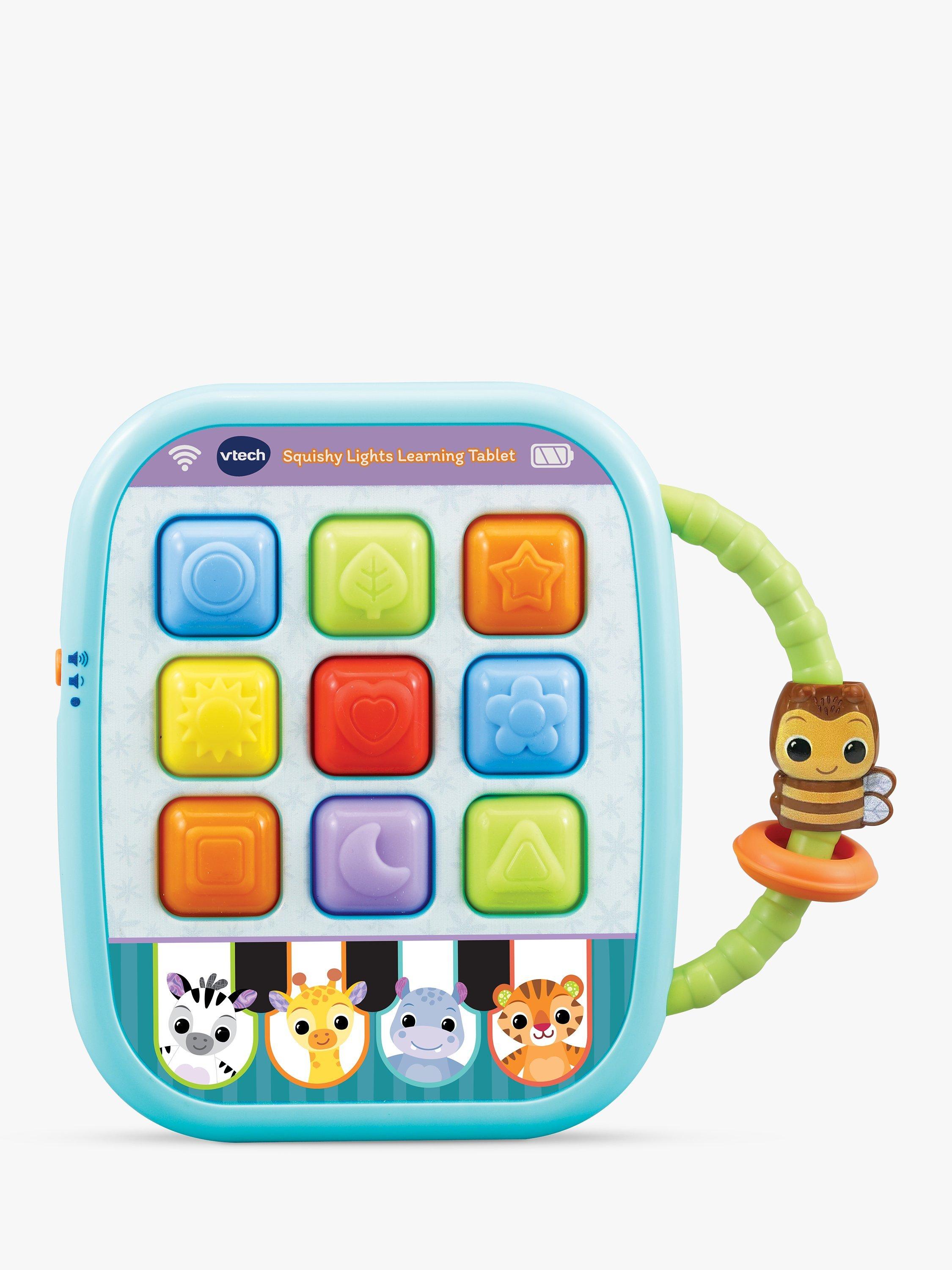 Introducing baby's first tablet! Press, tap and squish the soft silicone buttons. Each of the nine shape buttons will light up and flash while introducing colours, shapes, fun sounds and melodies.
