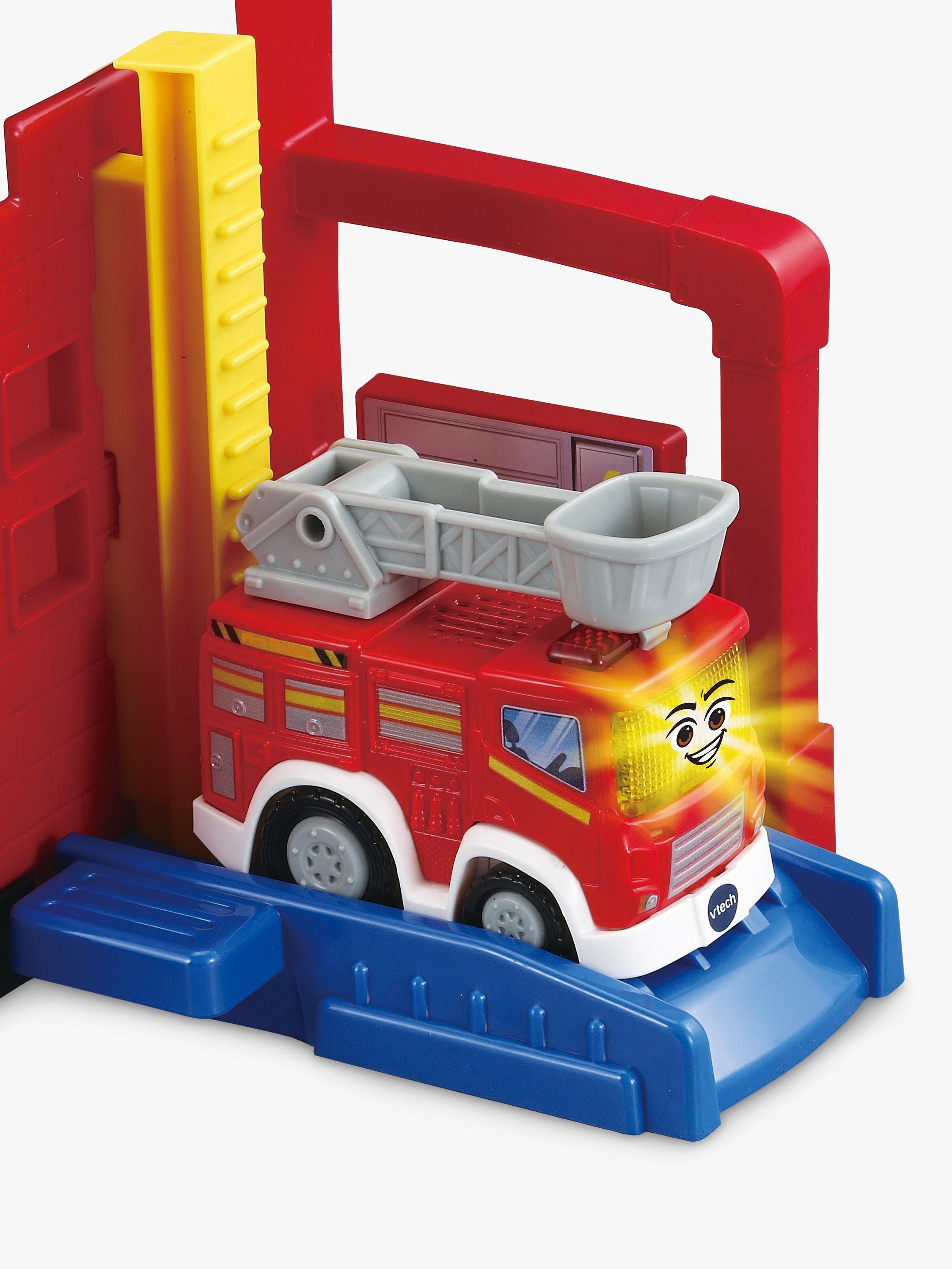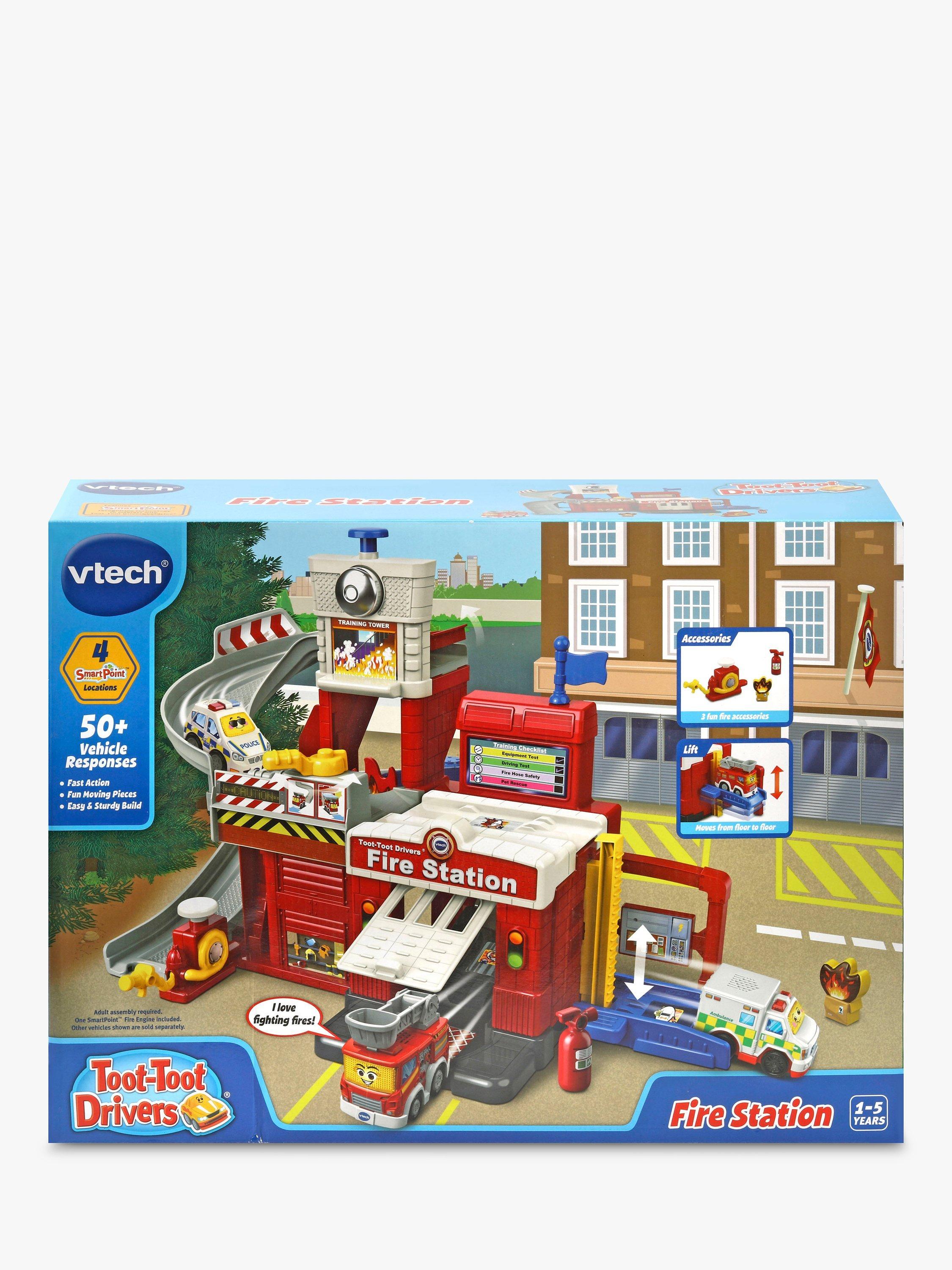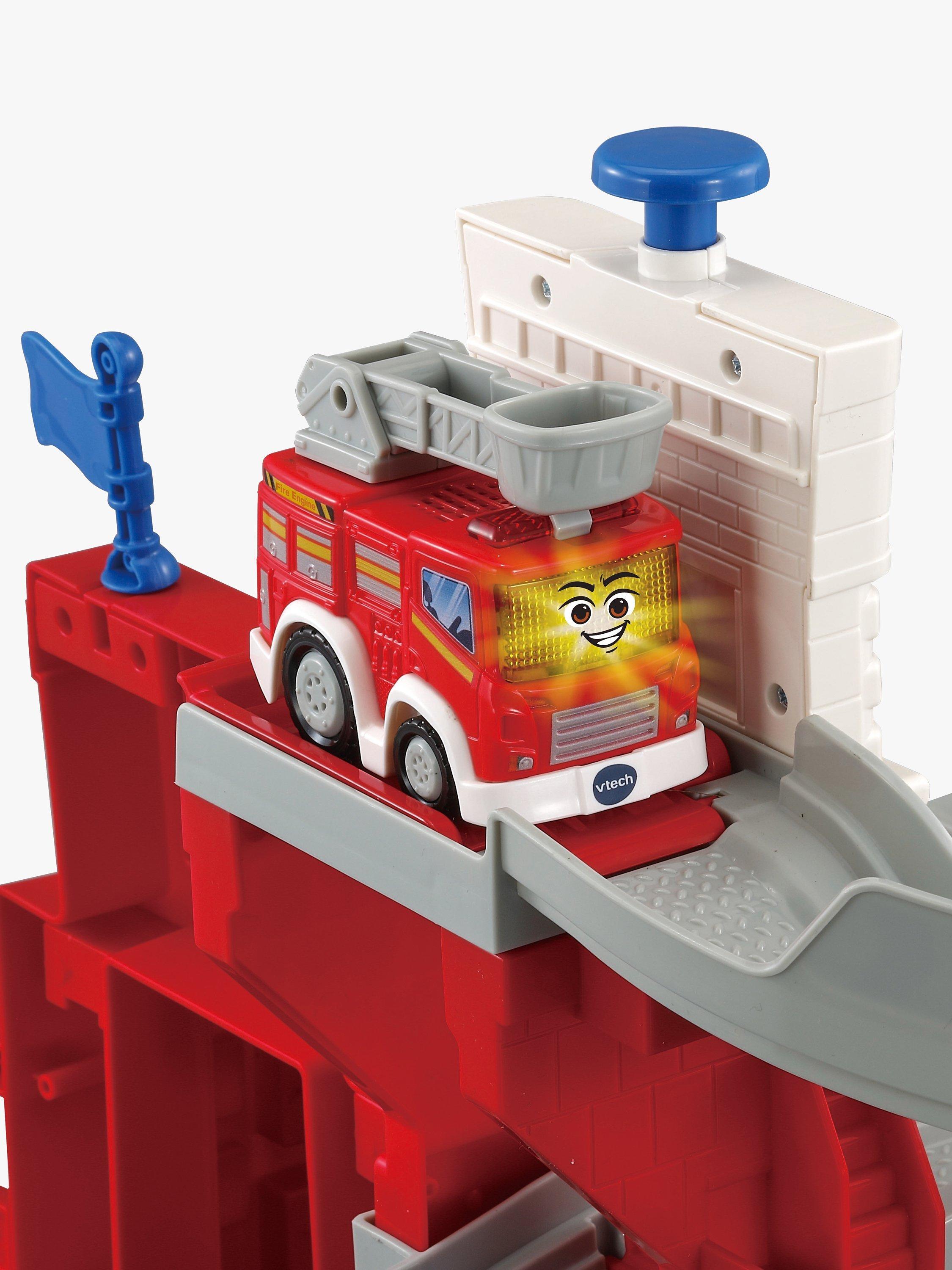 This colourful Fire Station set is so cool! Use the included Fire Engine for racing around the track, then travel up the lift, zoom down the ramp or spin the hose. There are lots of different features, including sound effects, songs and phrases, to make playtime even more exciting.