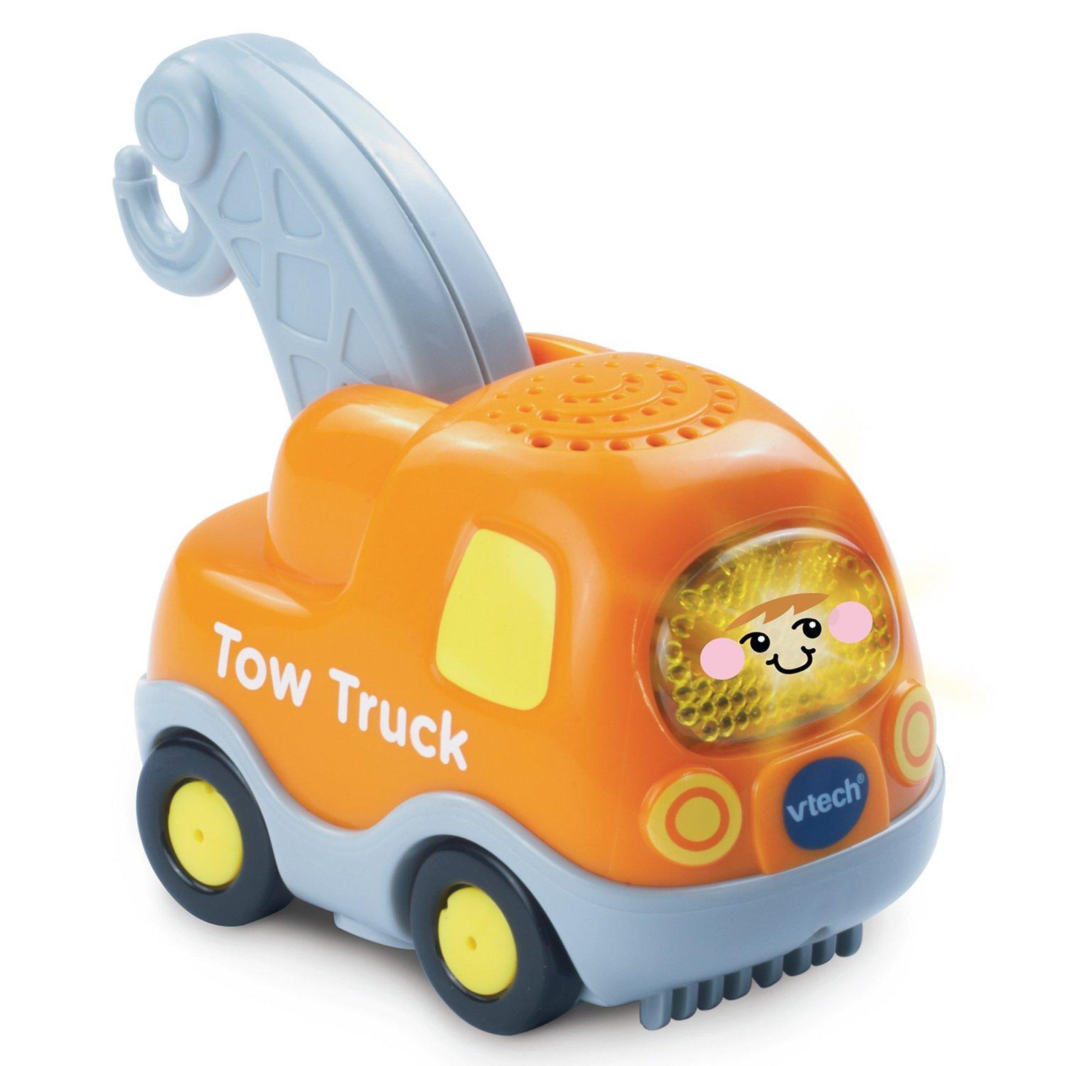 Coming with a Toot-Toot Drivers Tow Truck, you tot can start off by rolling it around the garage and triggering all 9 of the SmartPoint locations to hear all its songs, phrases and sound effects. Next, they can explore the rest of the set. There are 3 chunky buttons, a weight scale, a vehicle lift and exit gate, all playing a variety of sounds teaching about colours, numbers and road safety.