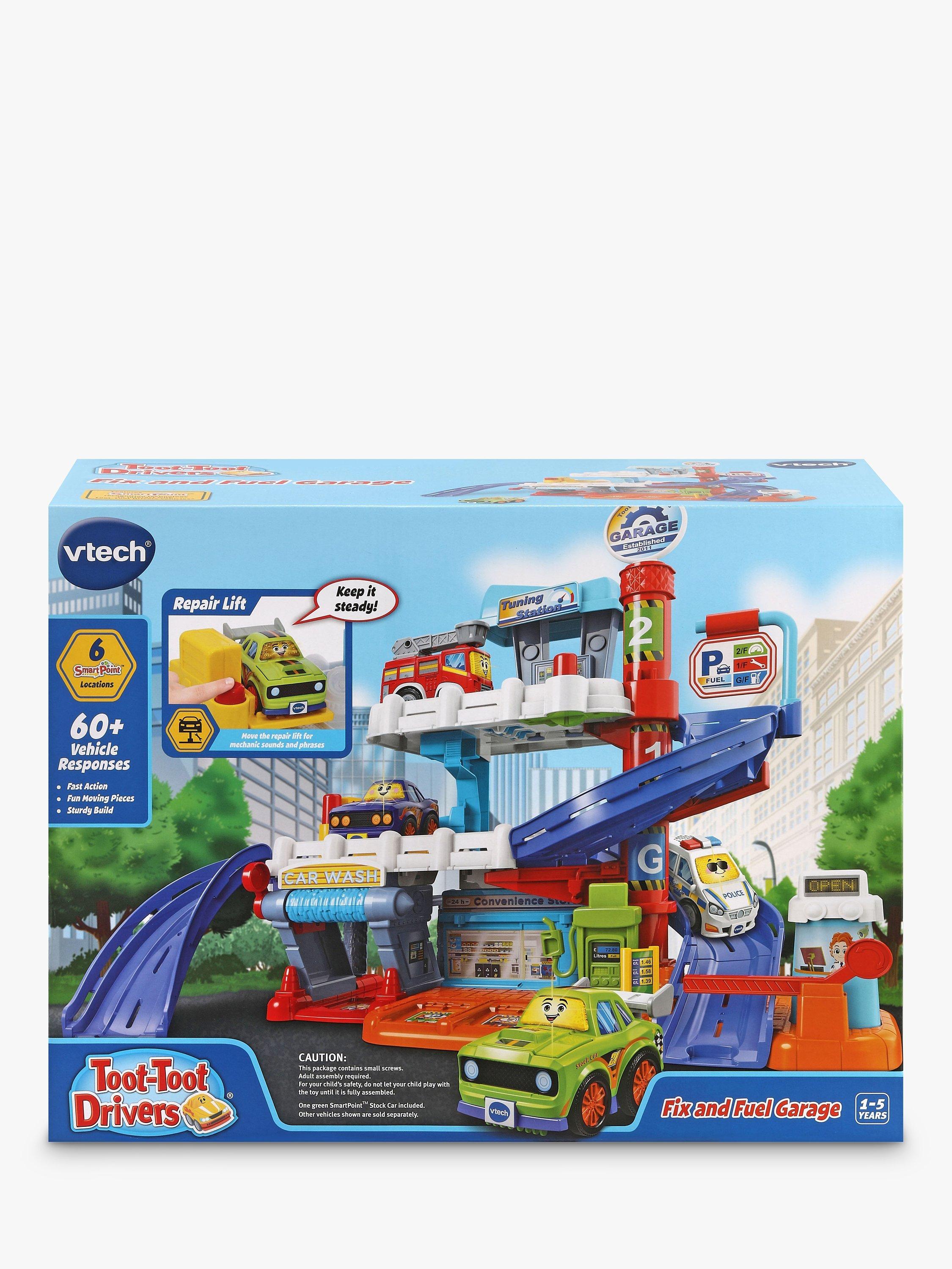With the Toot-Toot Drivers Garage, children can visit different areas. Get their stock car's formidable engine checked at the tuning station, fuel up with classic fuel or super-charged electricity!