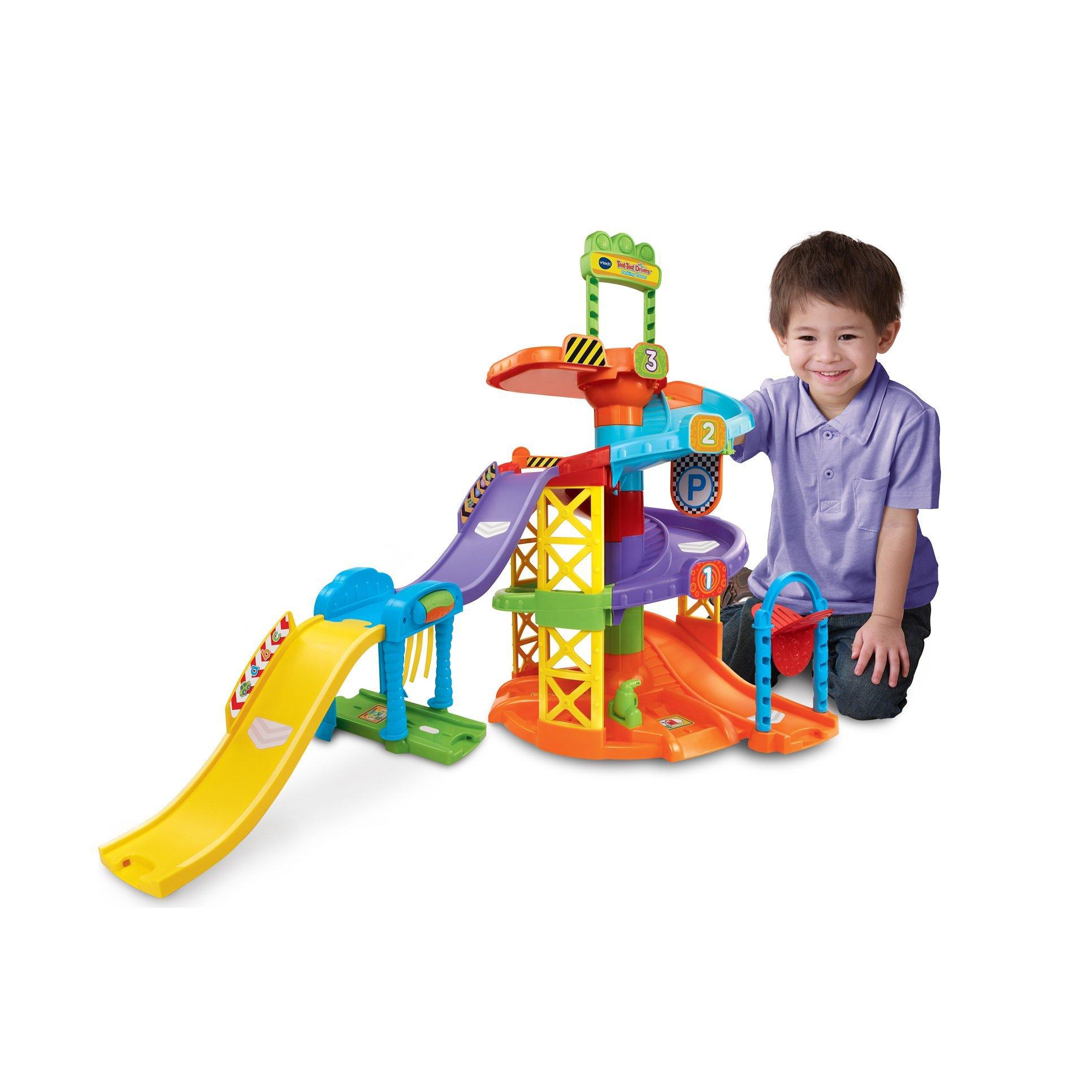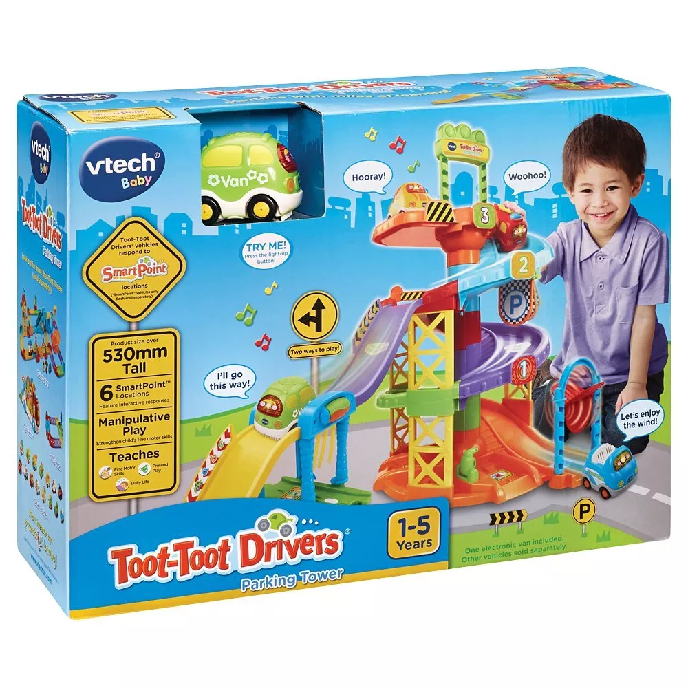 Playtime with miles of fun learning! The tower’s manipulative features include a big spiral ramp and sliding track, flip-up board, fun roller, car wash centre, parking spaces, petrol station and much more. Includes a SmartPoint van and 6 interactive SmartPoint locations that interact with other Toot-Toot vehicles.