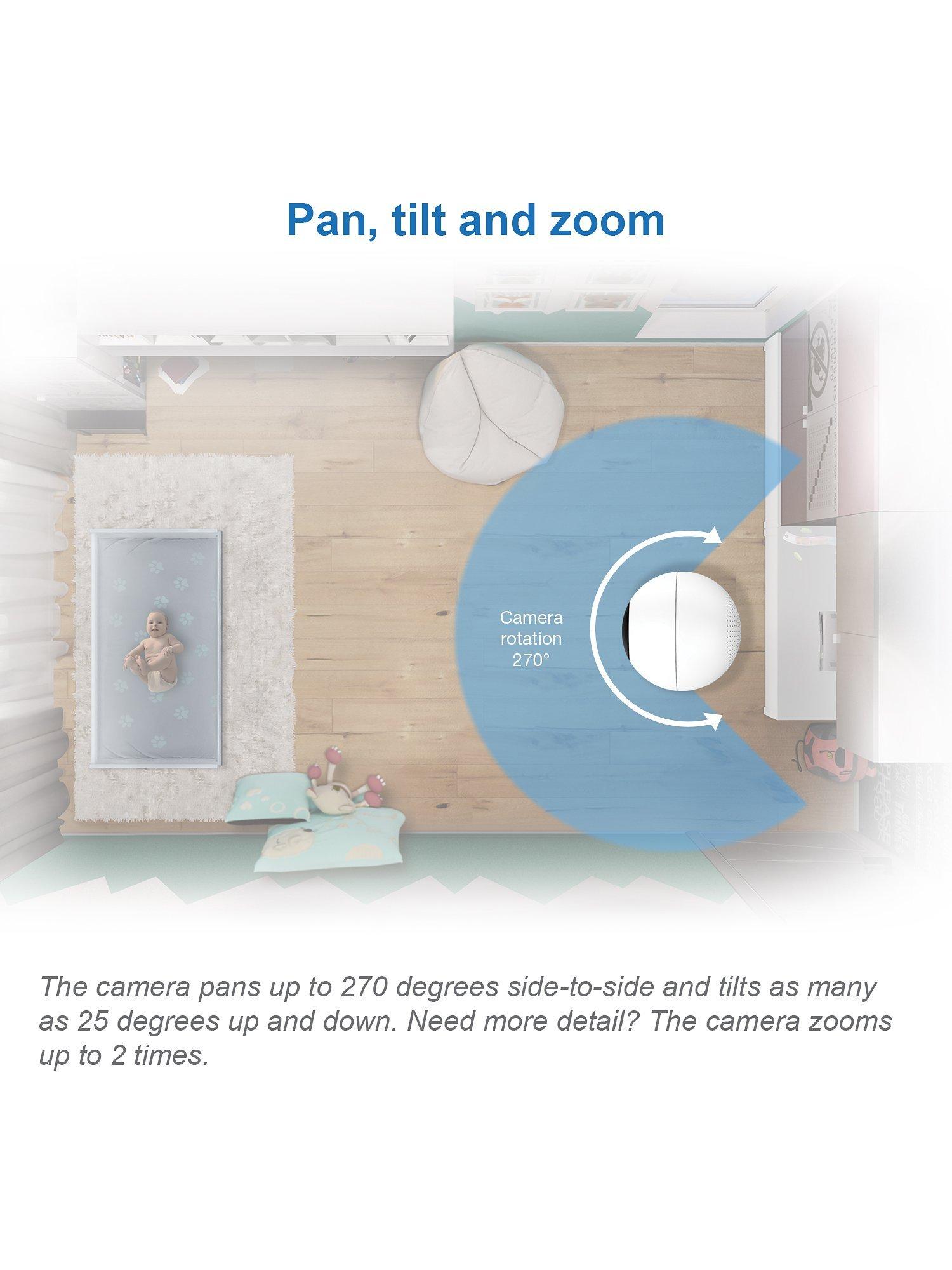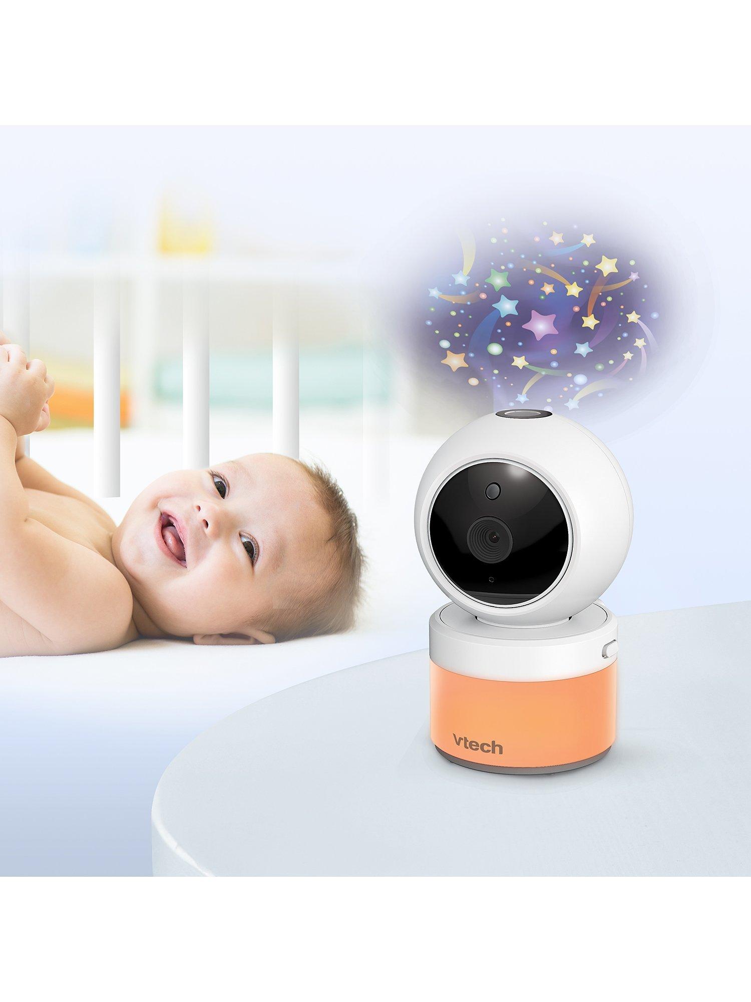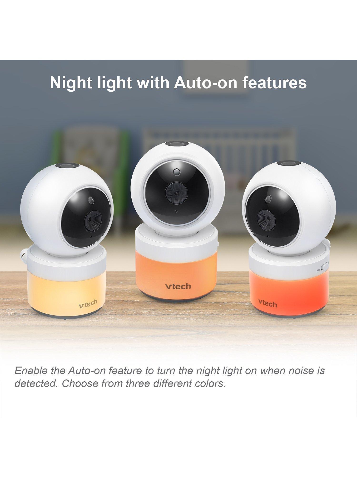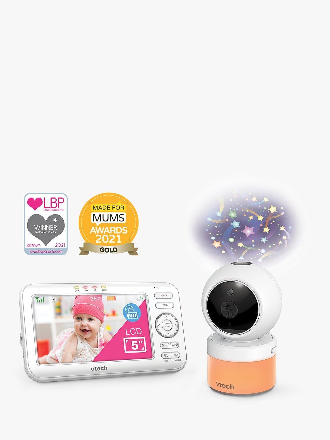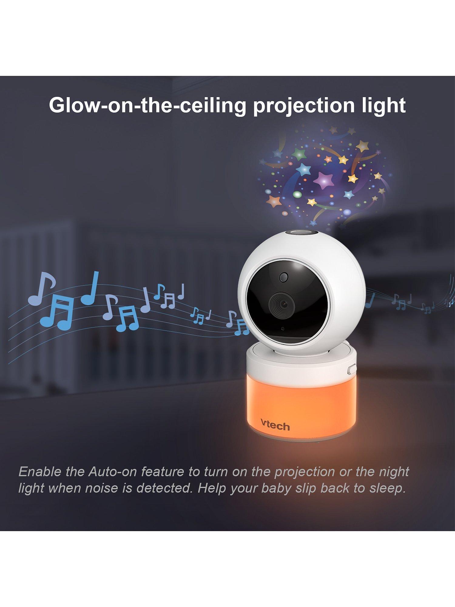 Be there for baby with the VM5463 5inch Digital Video Baby Monitor with Pan & Tilt Camera, Glow-on-the-ceiling light and Night Light from VTech. This video monitor lets you pan and tilt to get a better look at every angle in the nursery using the long-range parent unit. Talk to baby from anywhere in the house thanks to the built-in talk-back intercom so your little one knows you're on your way.