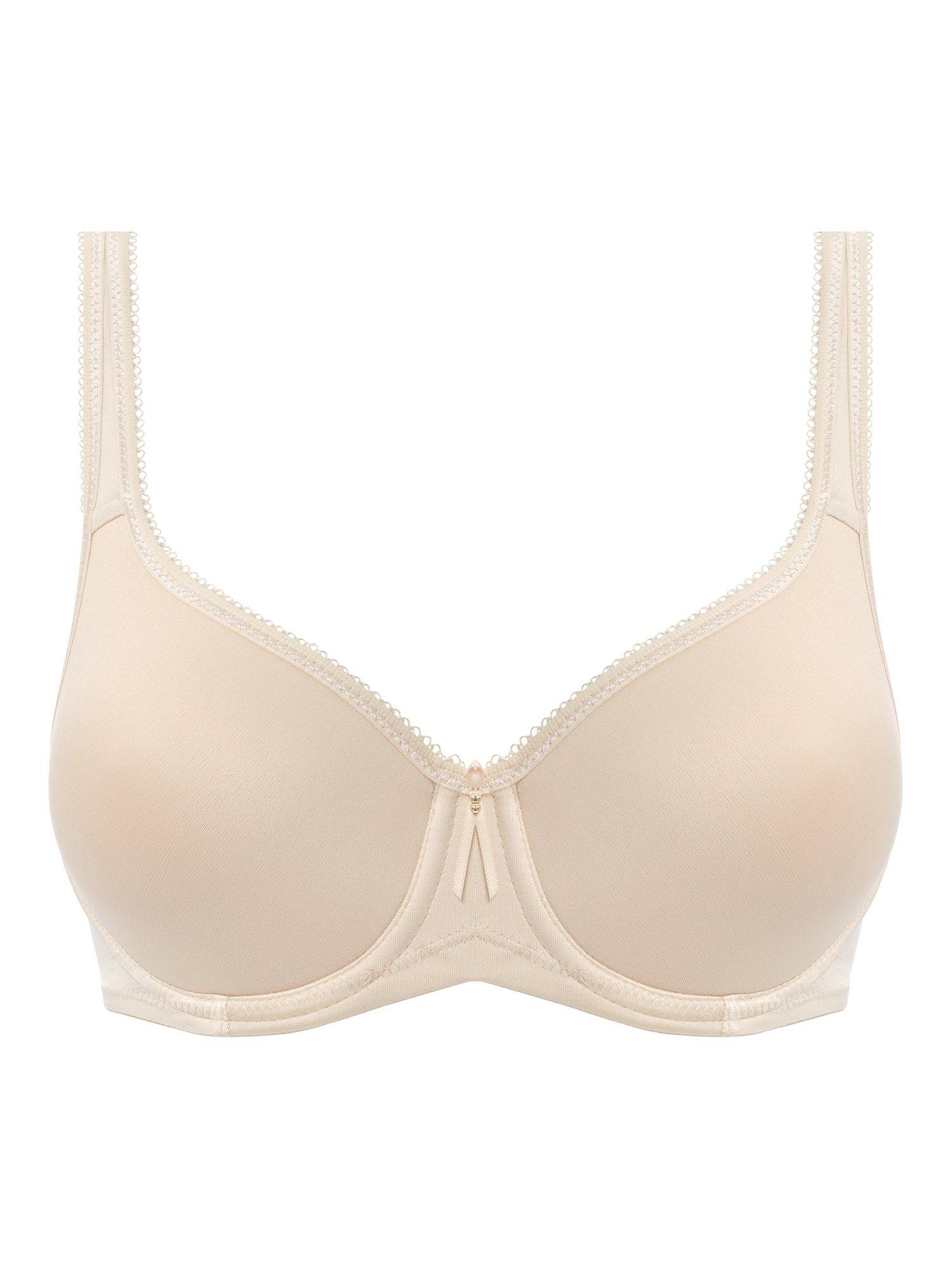 Wacoal's Basic Beauty Underwire Spacer Contour Bra is ultra comfortable and supportive. Featuring a breathable, soft and lightweight stretch micro spacer fabric in the cups, alongside built up front straps. The Contour Bra offers perfect support, shape and uplift. A full coverage cup with an inner sling offers lift and support and kicked in back straps avoids slipping off the shoulders. Sizes: 44D, 44DD, 32-44E and 32-40F have 4 hook fastenings.