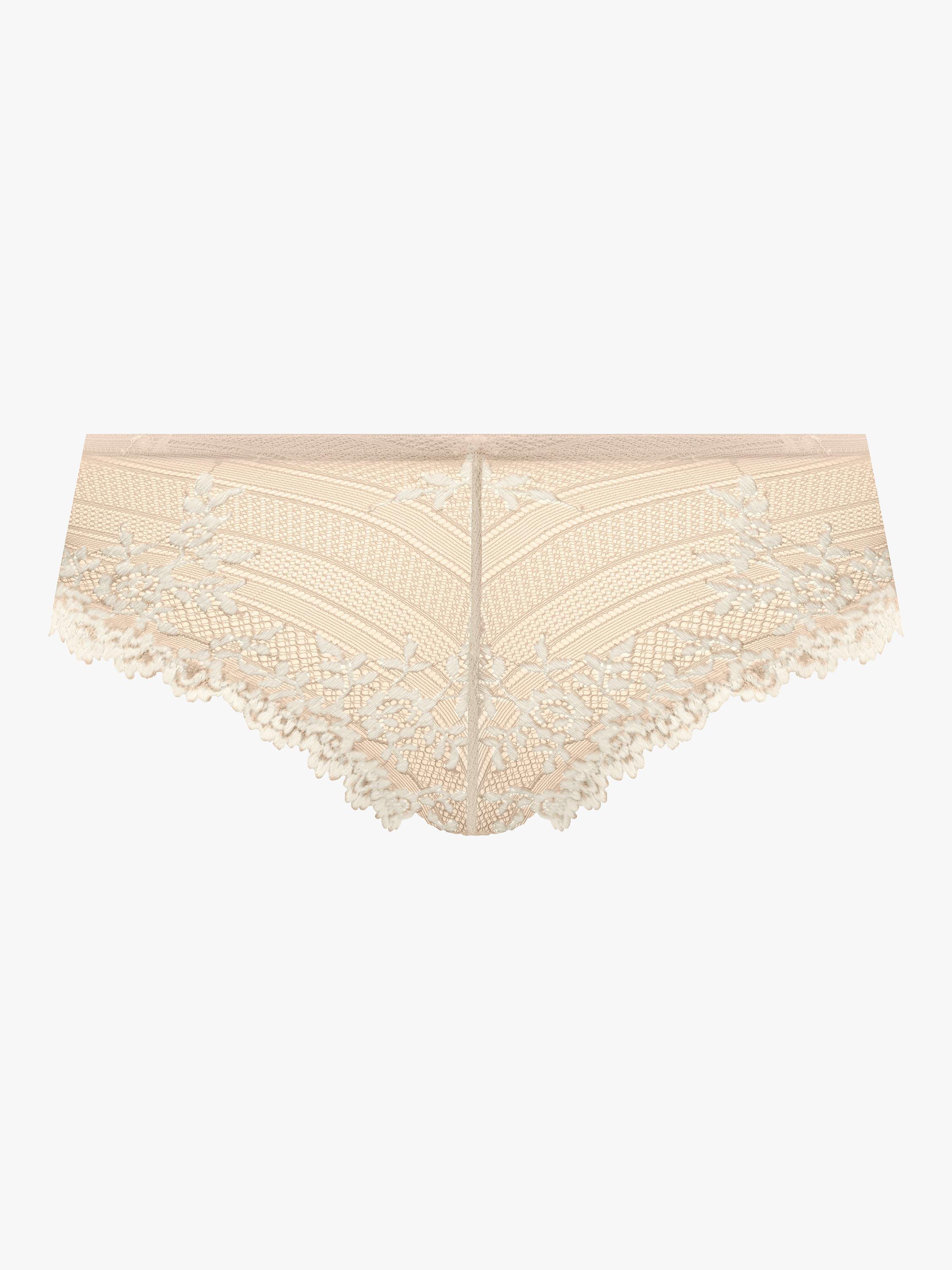 Embrace Lace showcases all-over stretch lace and beautiful floral embroidery for a delicate and feminine feel. The Tanga style is cut to a mid-rise waist with minimal back coverage.
