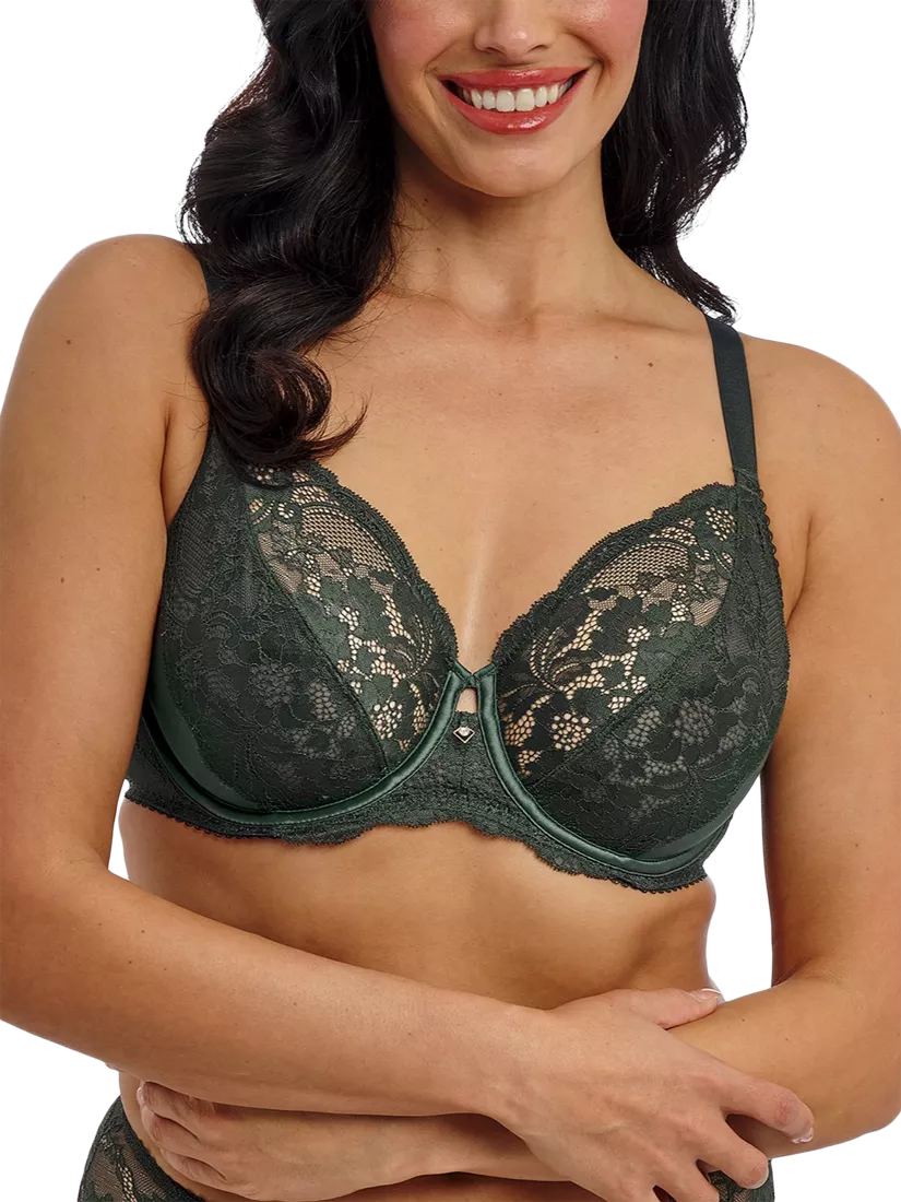Natsuki lace styles feature delicate matte stretch lace with luxurious satin accents. The Underwired Bra features fully adjustable stretch satin-look straps and an intricate dropped centre front, adorned with a stretch lace and a stretch lace neckline for ease of fit. A stretch satin bottom cup is lined and has a hidden dart for maximum shaping. Scoop centre back style offers optimum support and ensures straps stay in place. Outer wire casing trimmed with stretch satin detail for a luxurious look. Charm detail at the centre front completes the look. 2-hook fastening on all sizes.