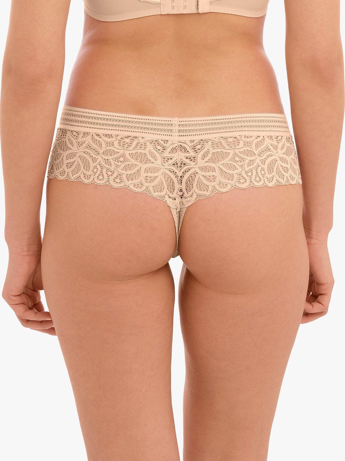Raffiné has been designed for everyday wear, while giving you that feeling of sophistication and luxury, in a decorative contemporary lace. The Raffiné tanga has side lace panels with delicate scallop detailing around the leg edge, decorative waist elastic and flat elastic finish at the waist to avoid digging or show-through. Finally, it has a low-rise waist with minimal back coverage.