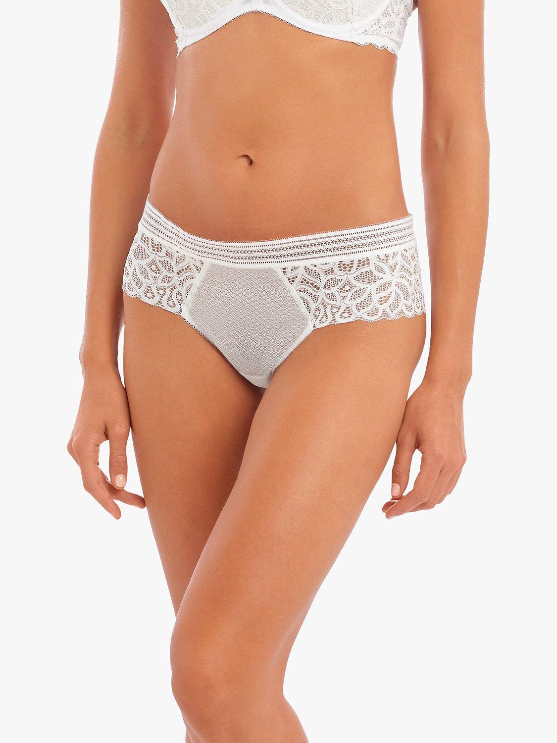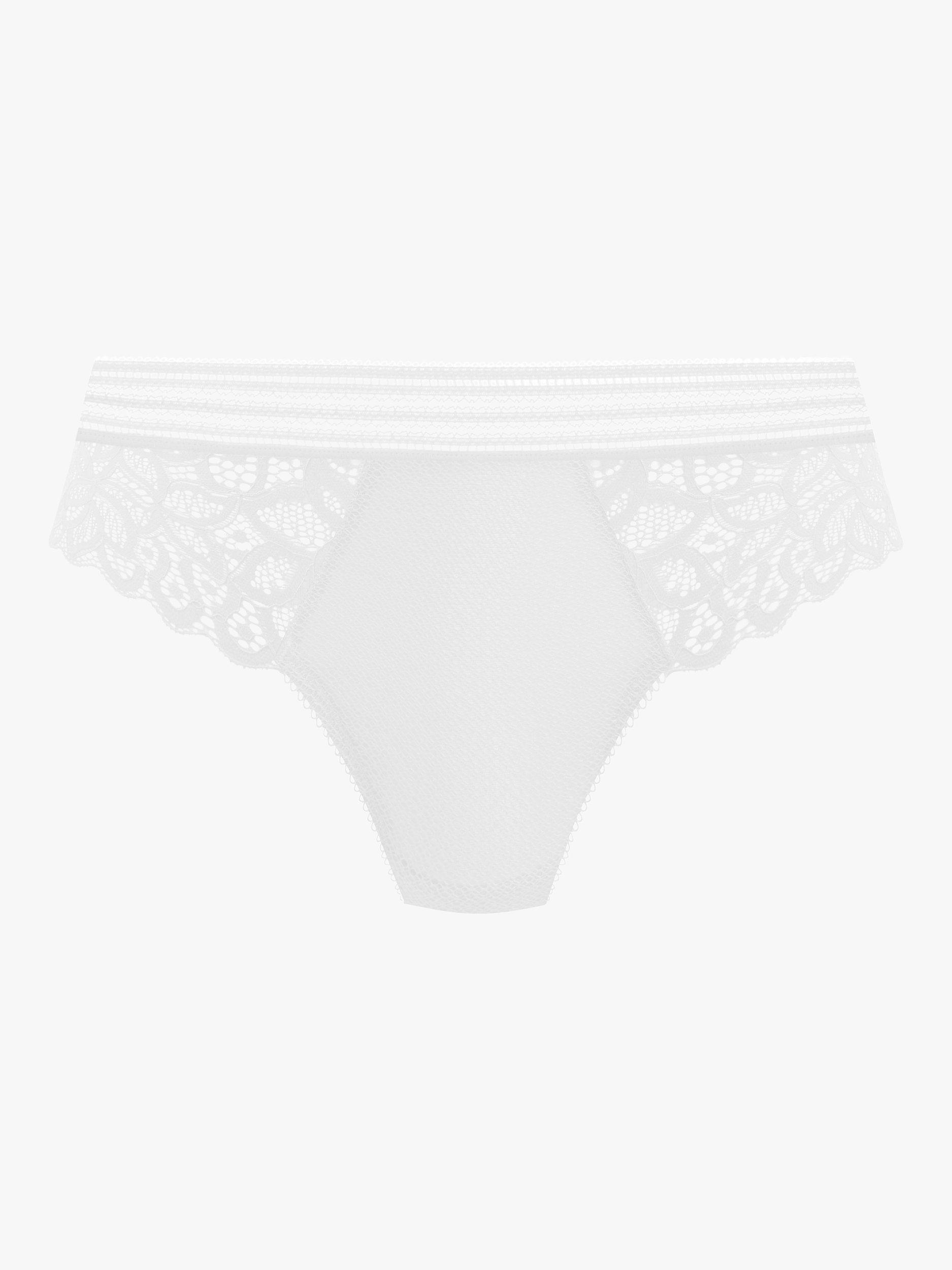 Raffiné has been designed for everyday wear, while giving you that feeling of sophistication and luxury, in a decorative contemporary lace. The Raffiné tanga has side lace panels with delicate scallop detailing around the leg edge, decorative waist elastic and flat elastic finish at the waist to avoid digging or show-through. Finally, it has a low-rise waist with minimal back coverage.