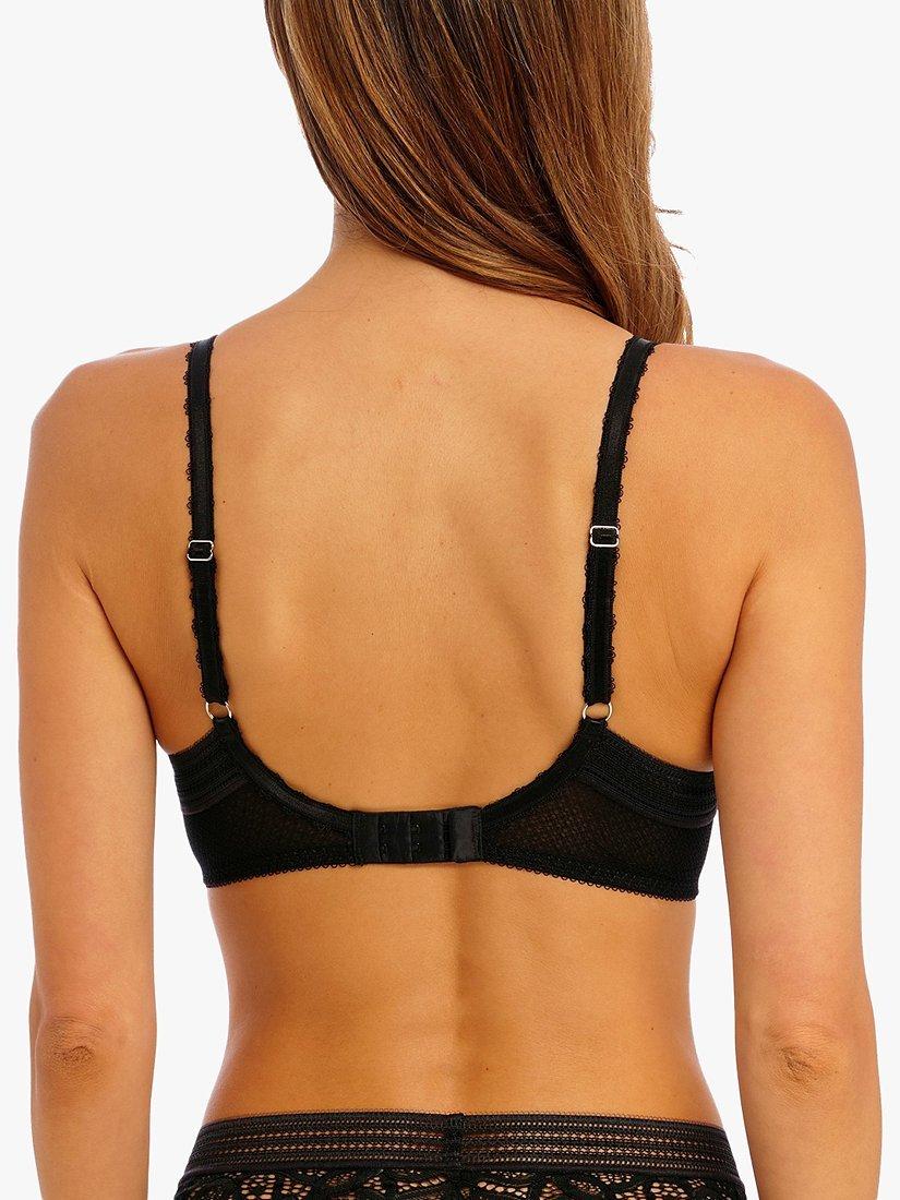 The intricate dropped centre front is also adorned with the same stretch lace and the ultra-fine all over lace wings are lined with mesh for support and comfort. The scooped centre back style offers optimum support and ensures the decorative straps stay in place. A final deliberate touch is that the underwires vary in strength across sizes to ensure a good level of support and shape.