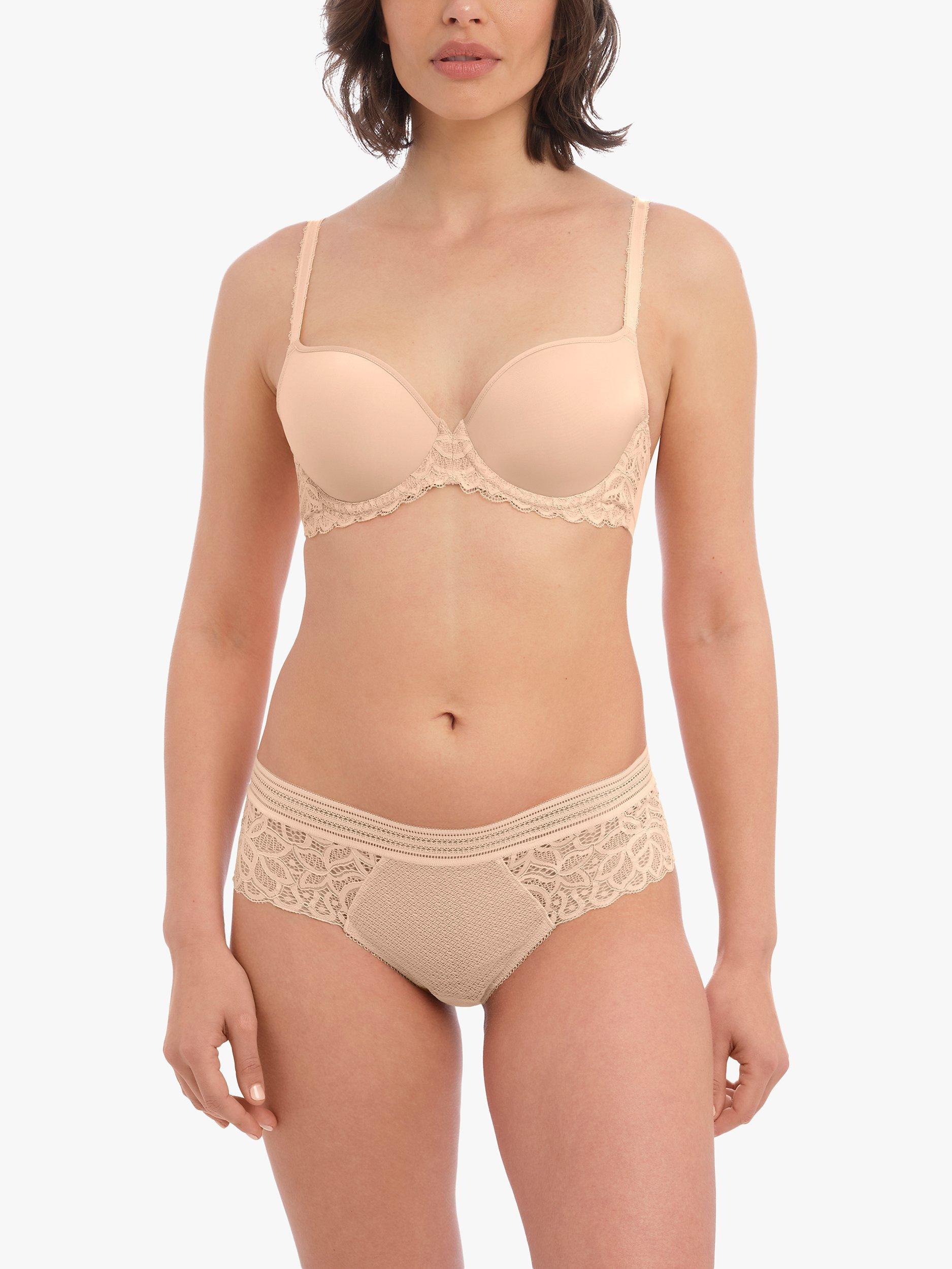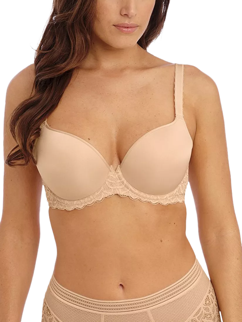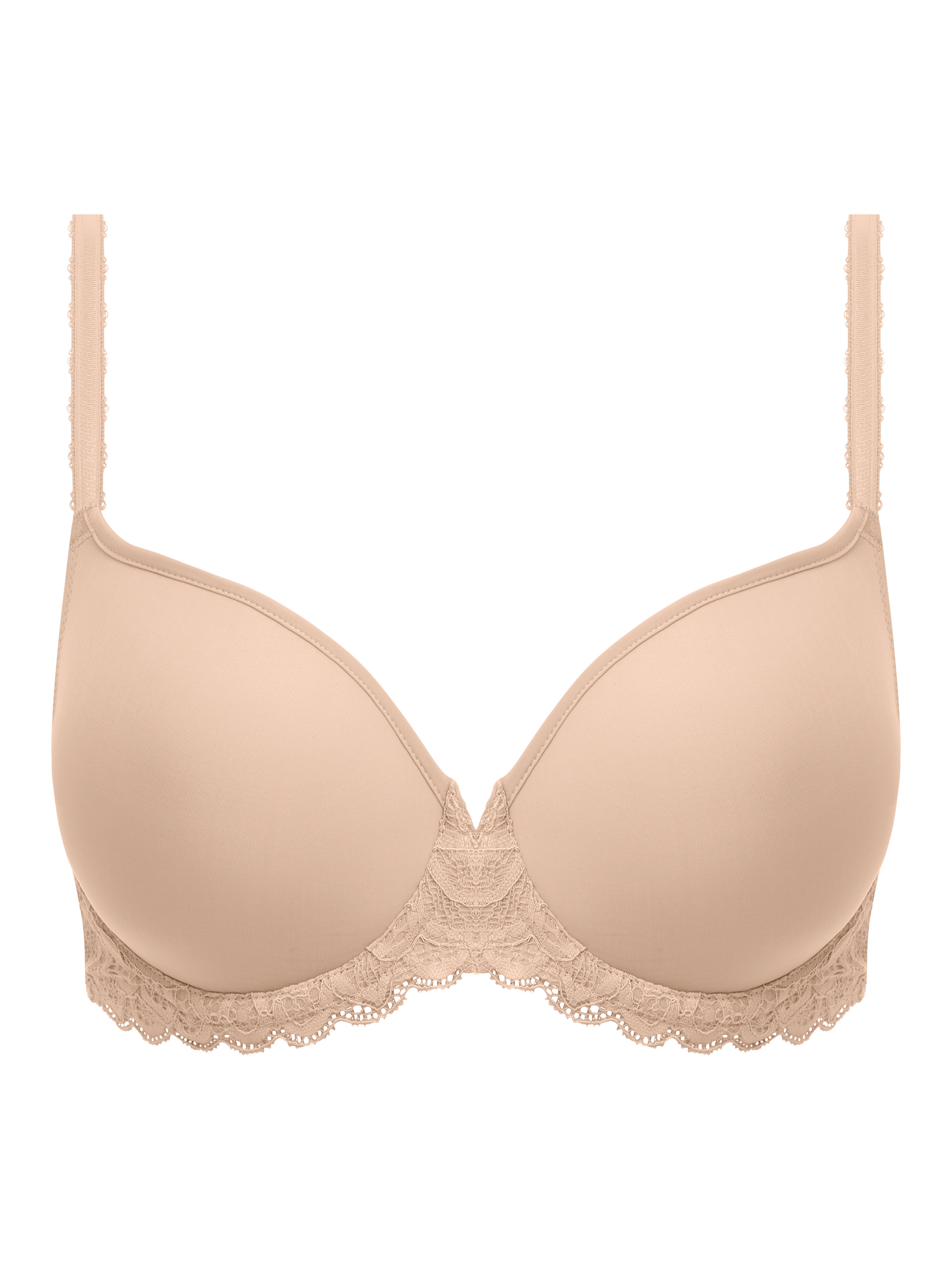 The underwired contour bra gives a smooth natural look under clothing as the cups are sleek, ultra-smooth and have a soft outer cup fabric. Delicate thin binding along the neck edge also sits flat against the body for a smooth finish. For a feminine touch, it has pretty stretch lace that sits at the centre front and cradle.