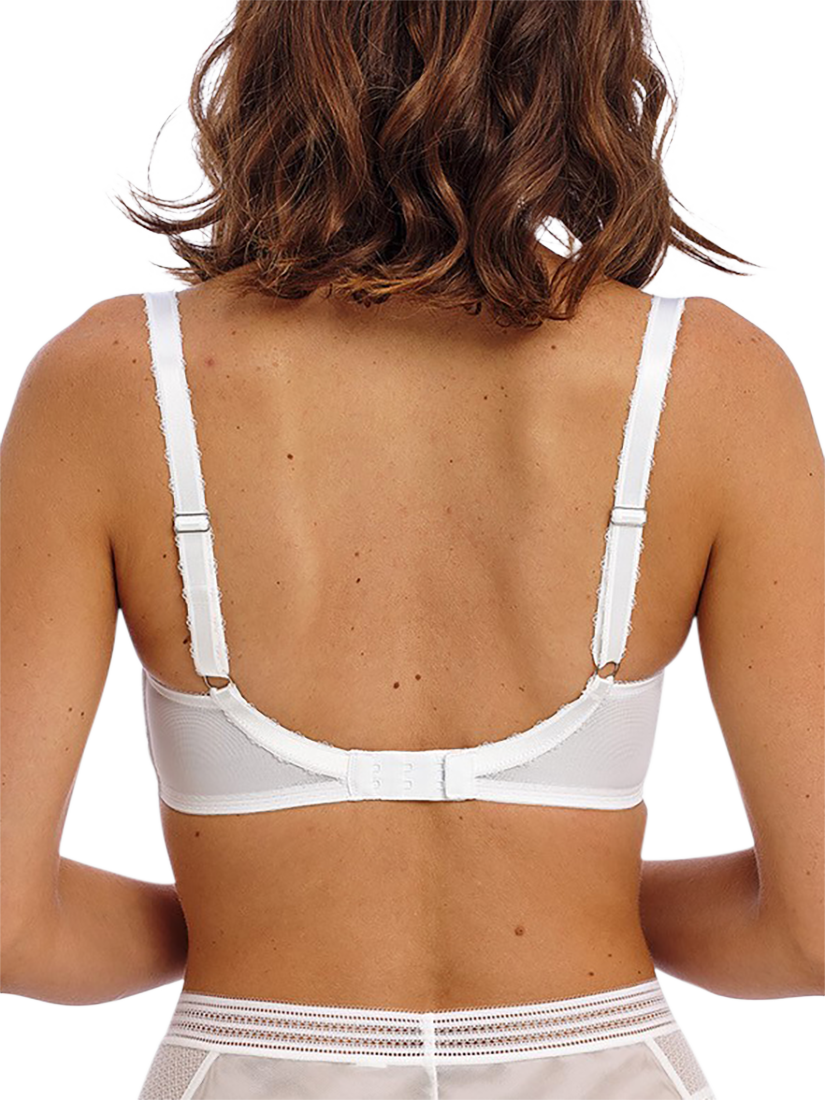 The underwired contour bra gives a smooth natural look under clothing as the cups are sleek, ultra-smooth and have a soft outer cup fabric. Delicate thin binding along the neck edge also sits flat against the body for a smooth finish. For a feminine touch, it has pretty stretch lace that sits at the centre front and cradle.