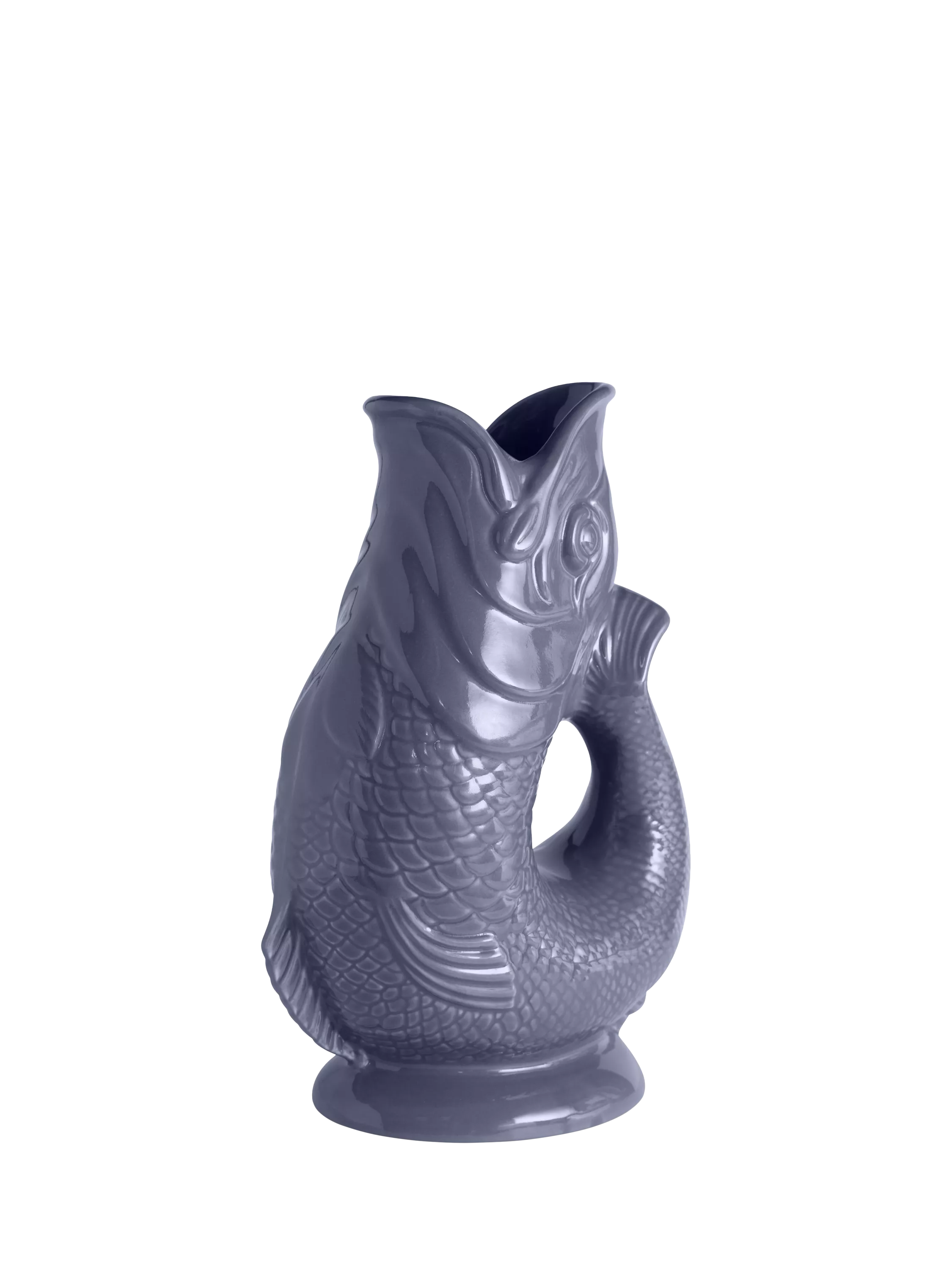 The unique glugging sound has long been a hallmark of the jug, and it will produce the sound when pouring the jug if it's at least three-quarters full. Formed in the shape of a fish, the mouth perfectly aligns to create an easy-pour spout, while the tail curves upward to create an ergonomic handle with a comfortable grip.