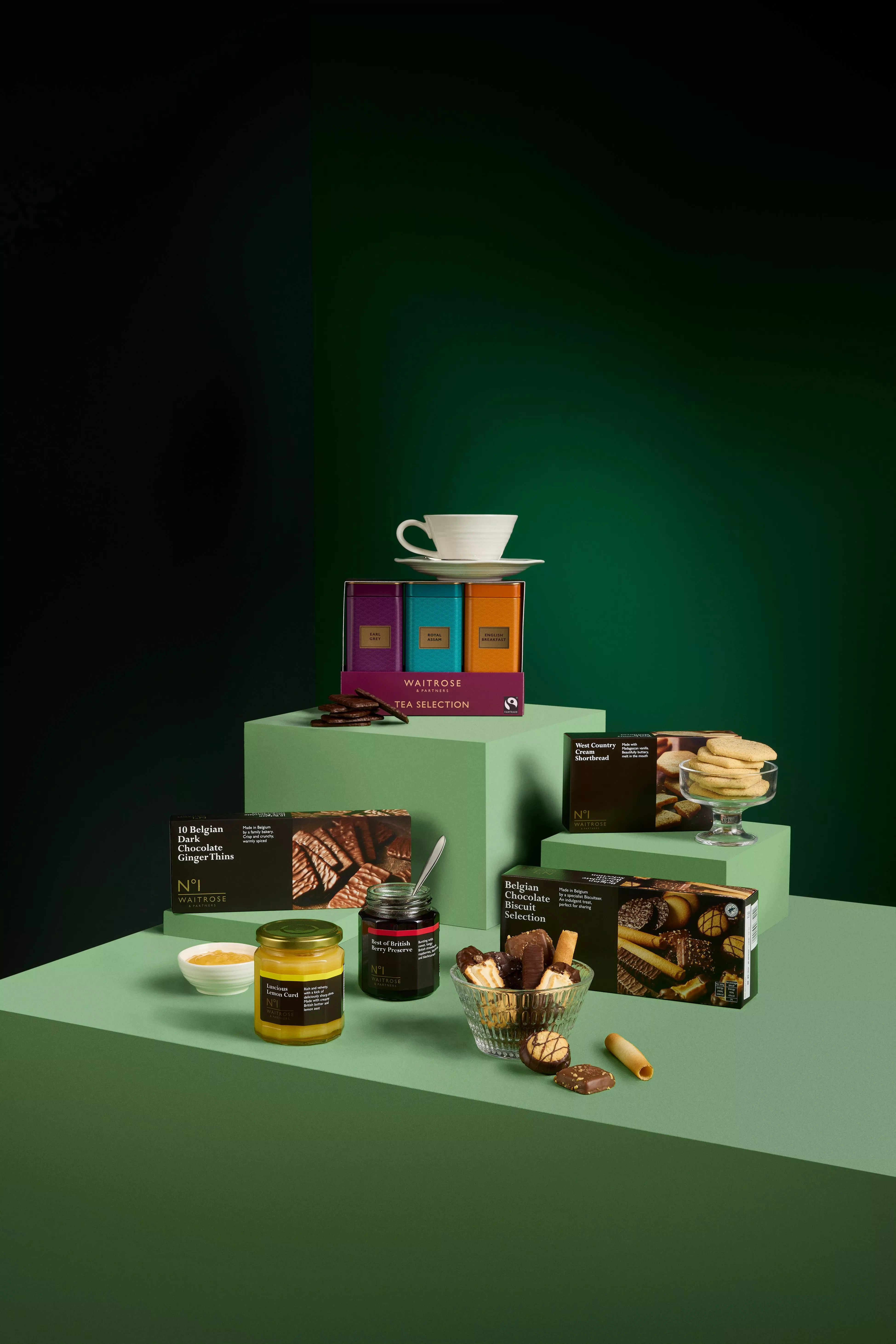 - Waitrose No 1 Dark Chocolate Ginger Thins 100gWaitrose No.1 Belgian Chocolate Biscuit Selection 145gWaitrose No.1 West Country Cream Shortbread 160gWaitrose No1 Luscious Lemon Curd 320gWaitrose No.1 Best of British Berry Jam 320gWaitrose Tea Selection