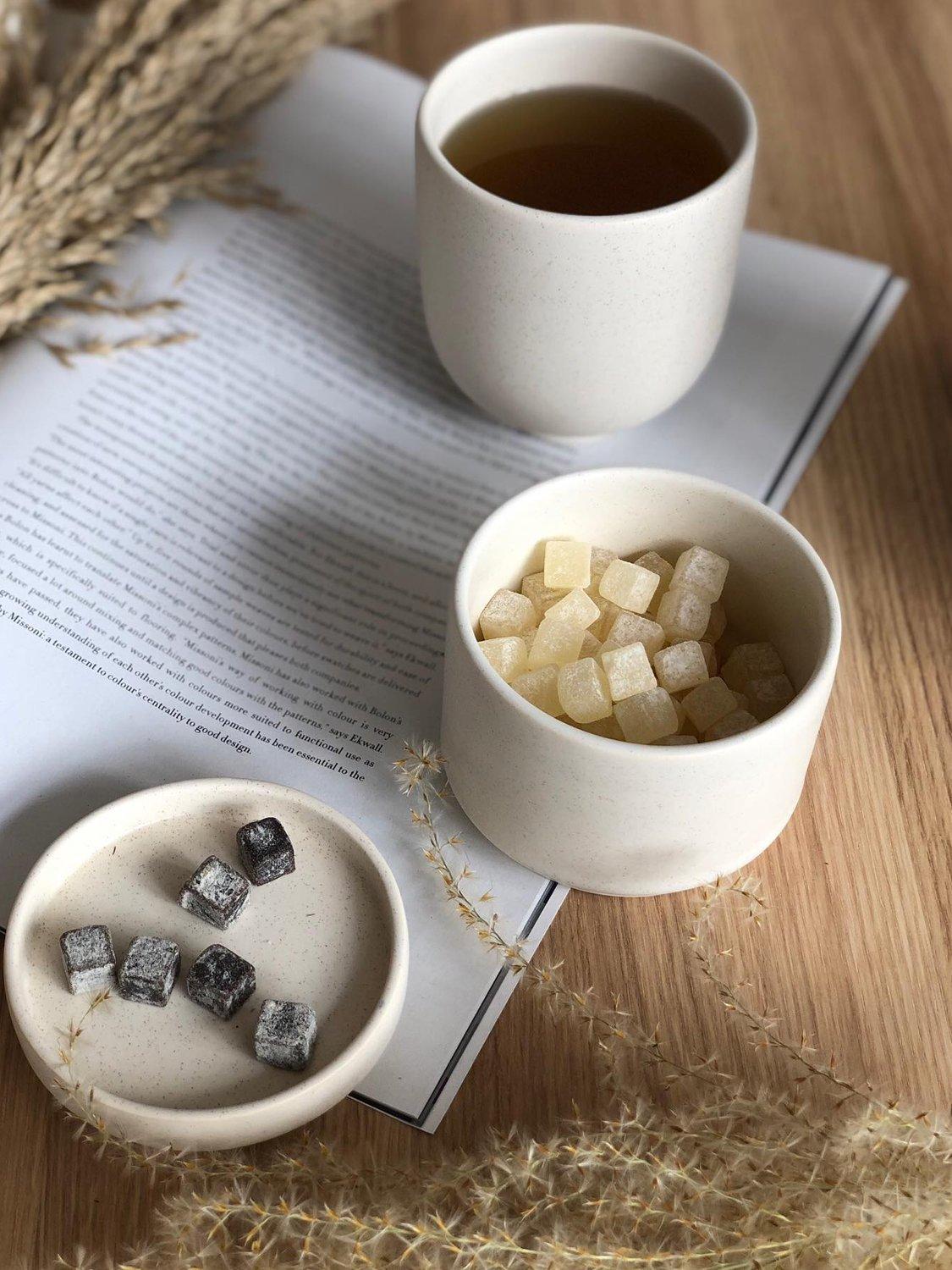 - Glucose-fructose syrup, sugar, water, corn starch, acidity regulators (apple citrate, sodium citrate, citric acid), natural flavouring, powdered sugar (sugar, potato starch), colour (black carrot & star fruit concentrate), coconut oil, passion fruit powder, glazing agent (carnauba wax).