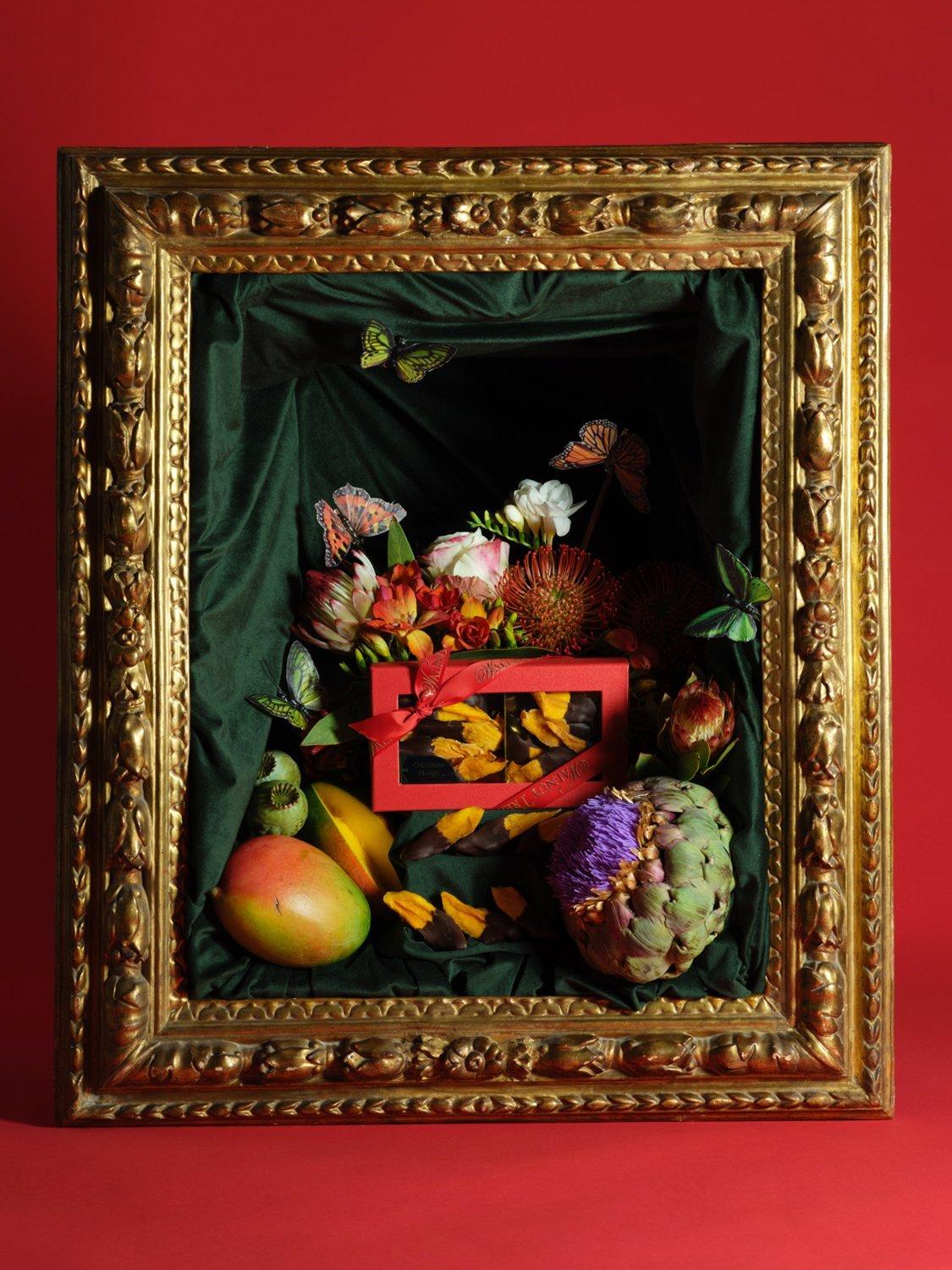 Succulent slices of golden mango, delicately dried to preserve their natural sweetness, are hand dipped in fine, high-cocoa dark chocolate. Each piece offers a sumptuous contrast: the lush, aromatic fruit unfolding beneath the deep, nuanced richness of hand-selected chocolate.