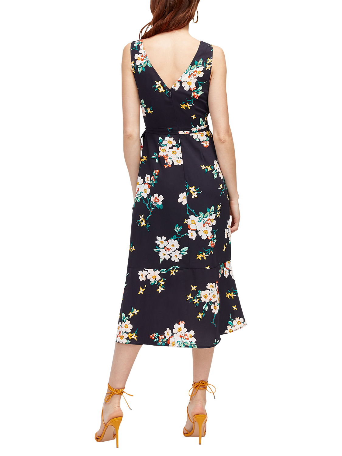 A wrap style to flatter the figure, this dress has a deep V-neckline and playful asymmetric hem for a romantic finish. It is adorned with a beautiful floral print and fastens at the waist with a tie.
