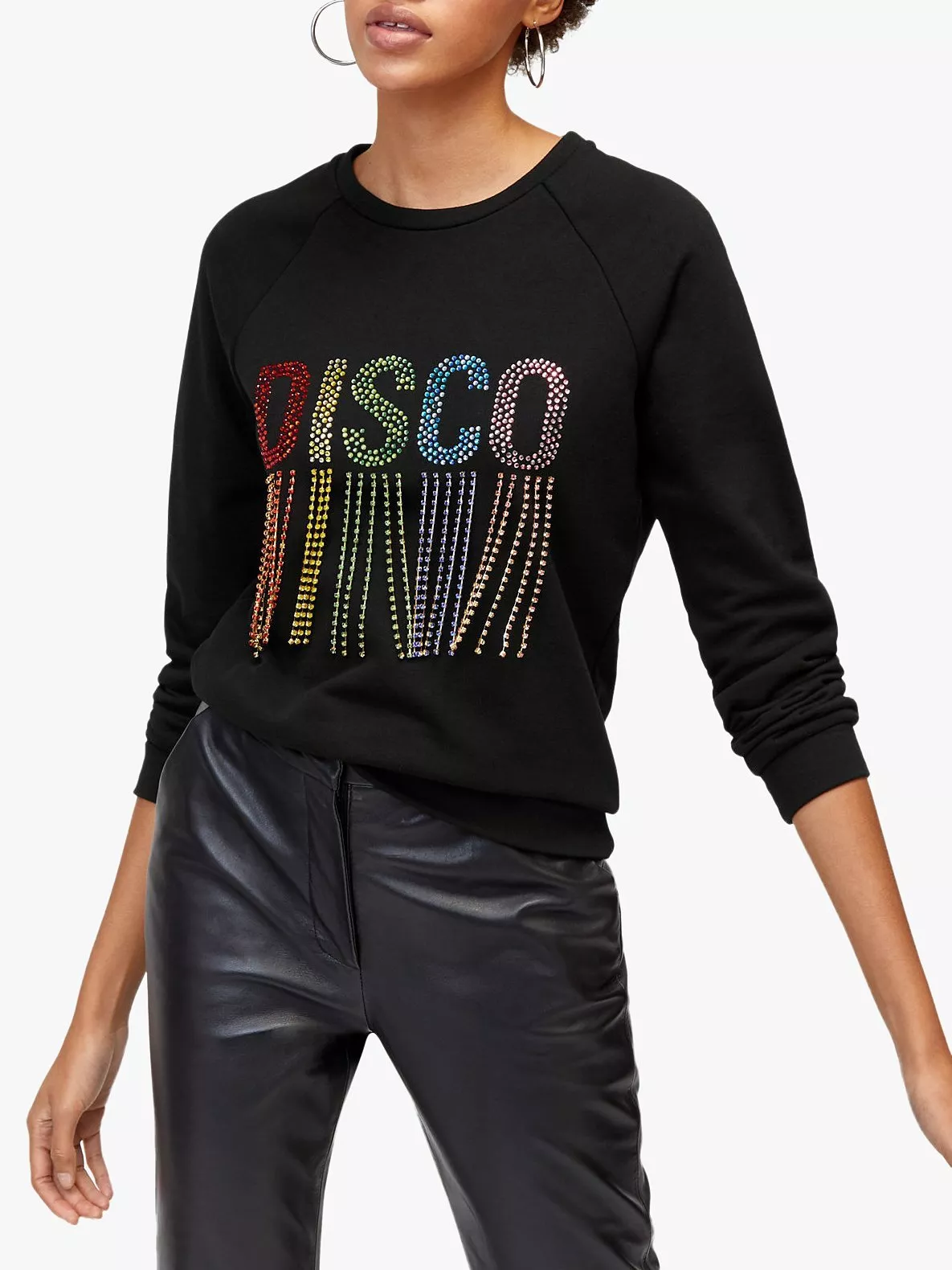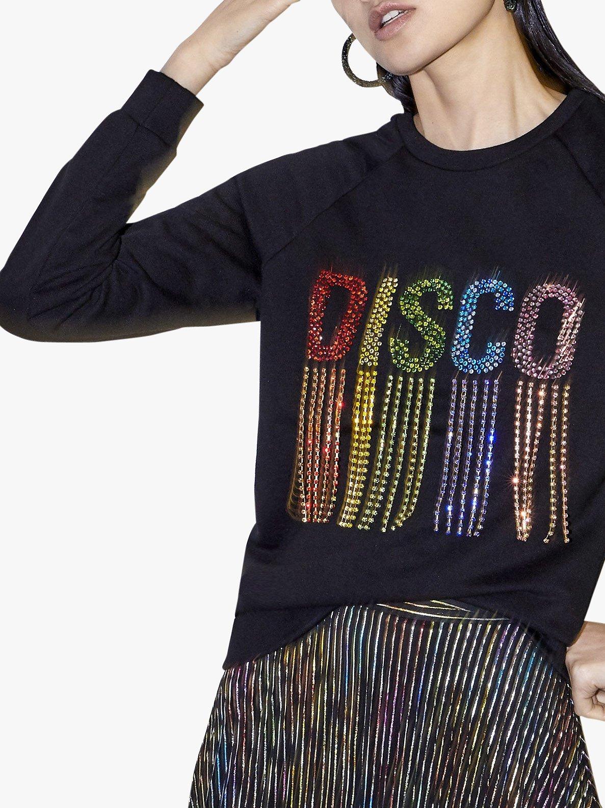 Woven from a cosy cotton blend, this jumper offers both warmth and a fashionable look. Equipped with its must-have ribbed cuffs and waistband, it is embellished with colourful, sparkling gems that's sure to get the party started.