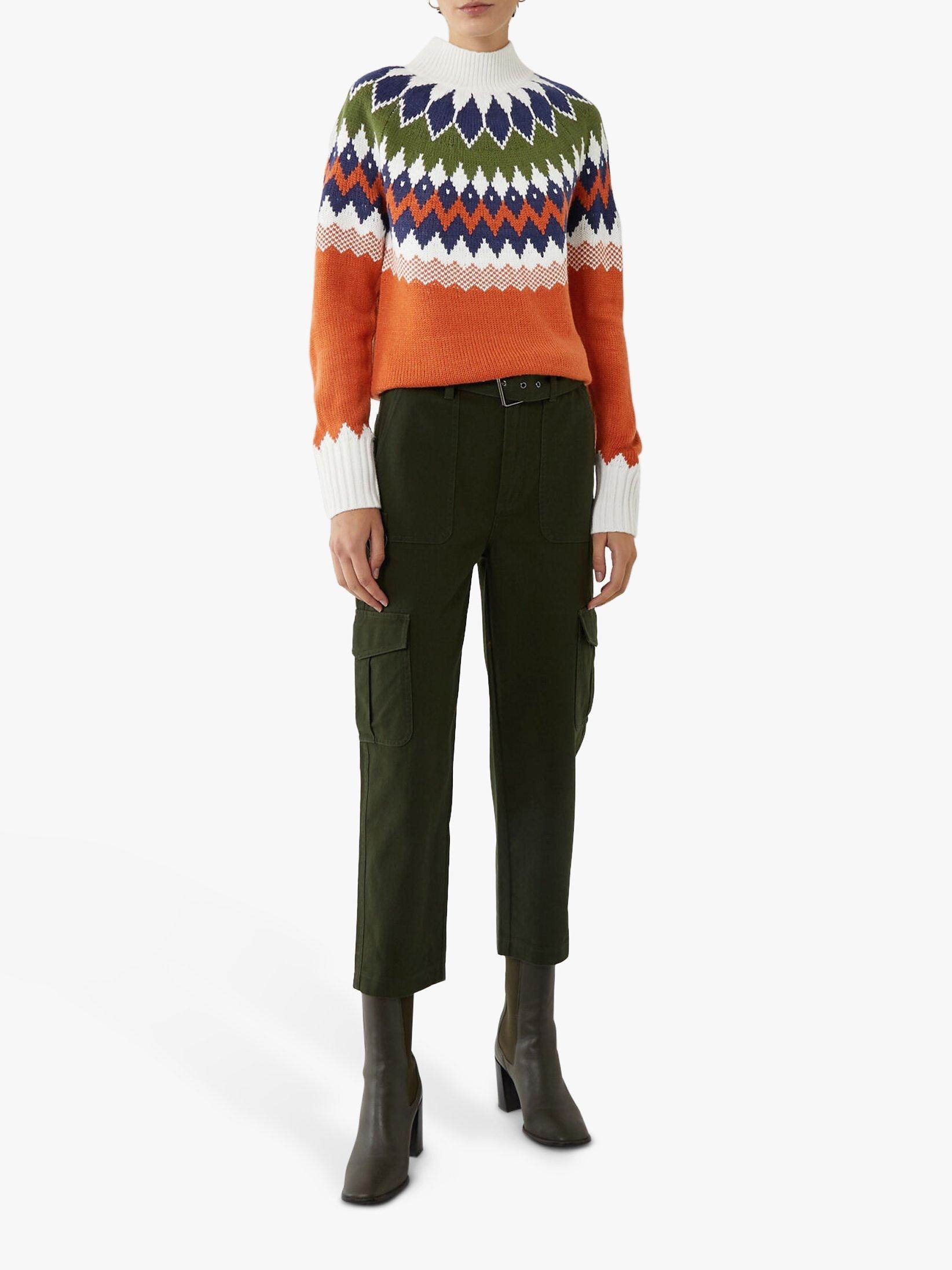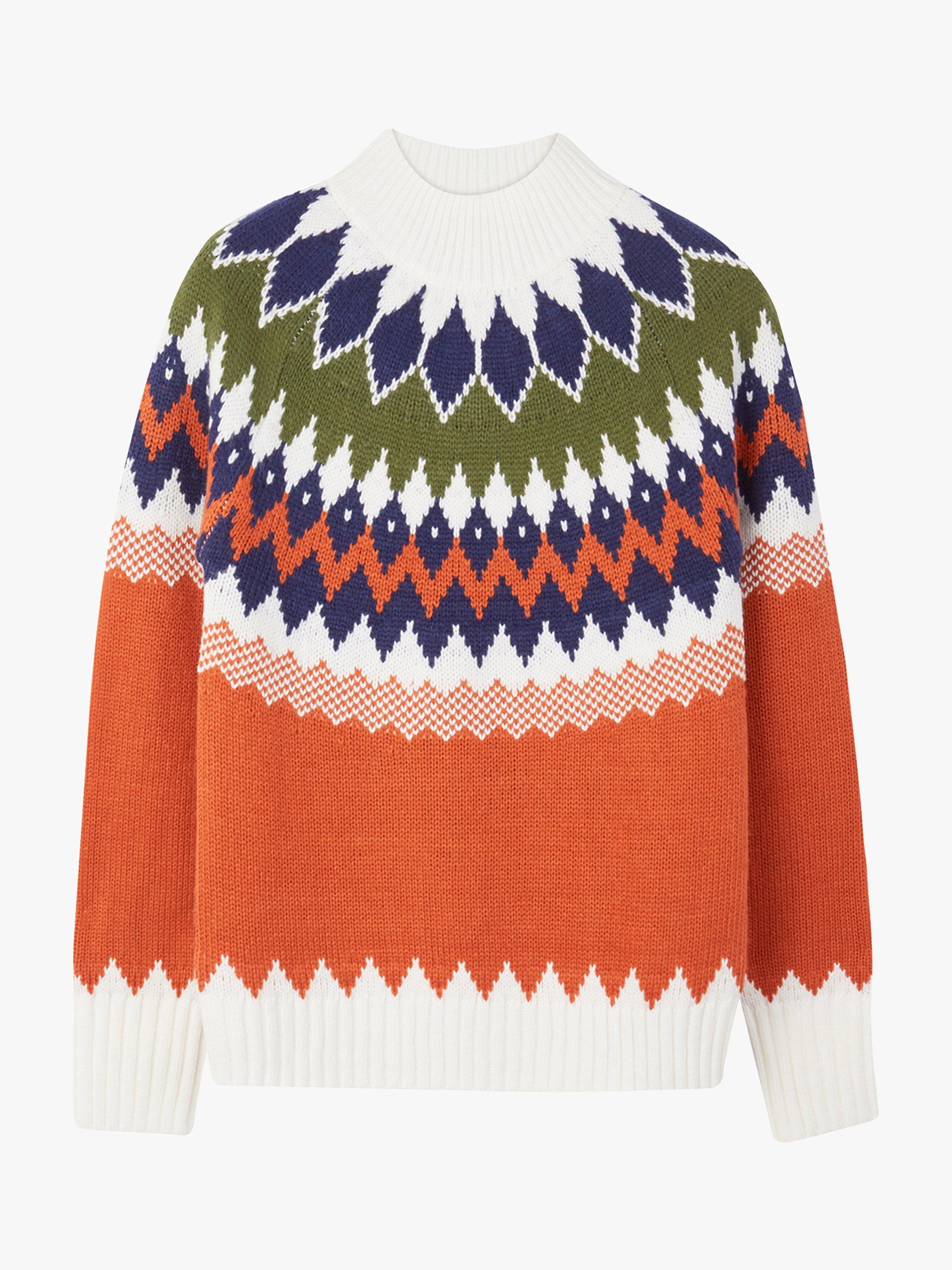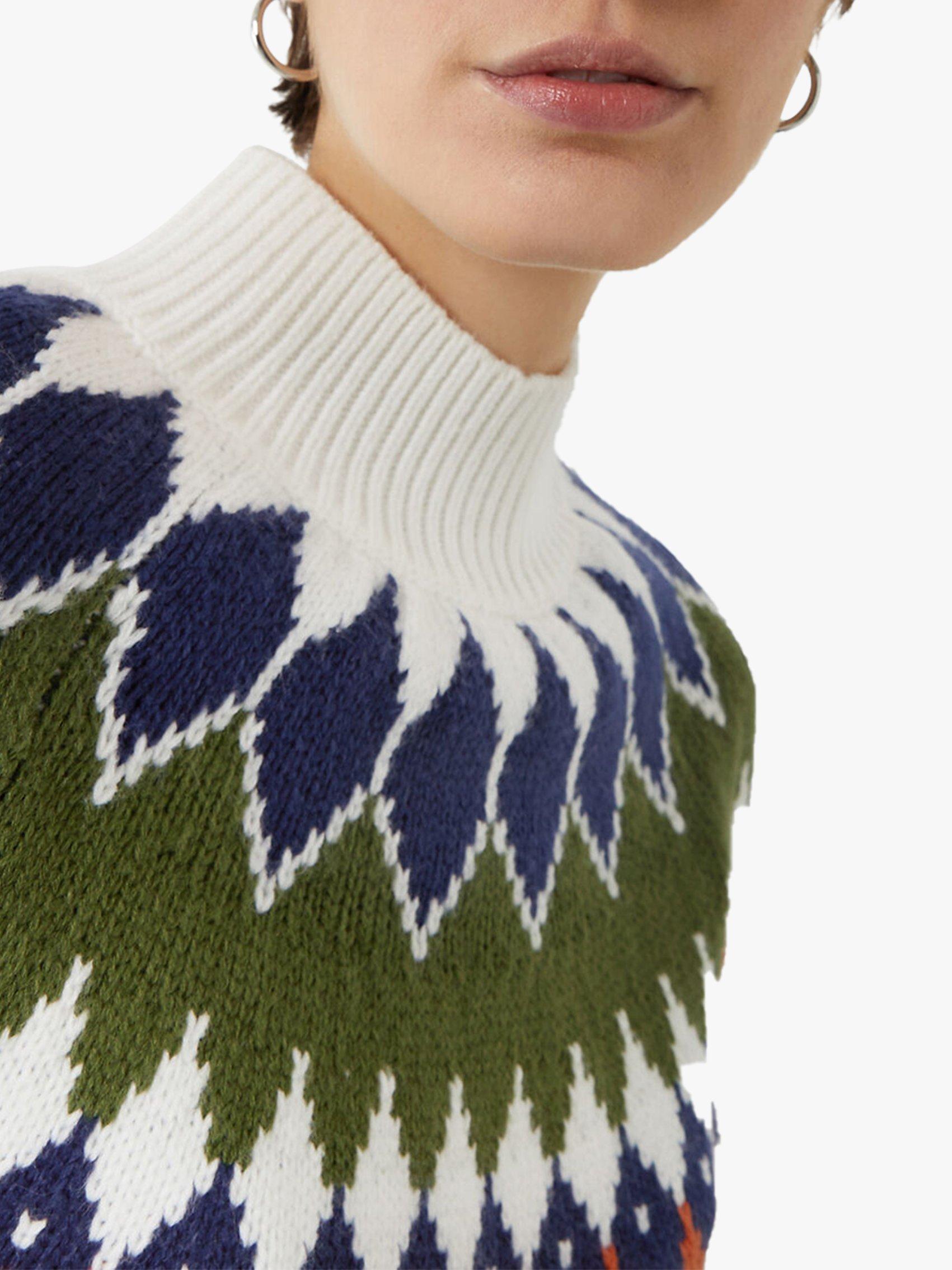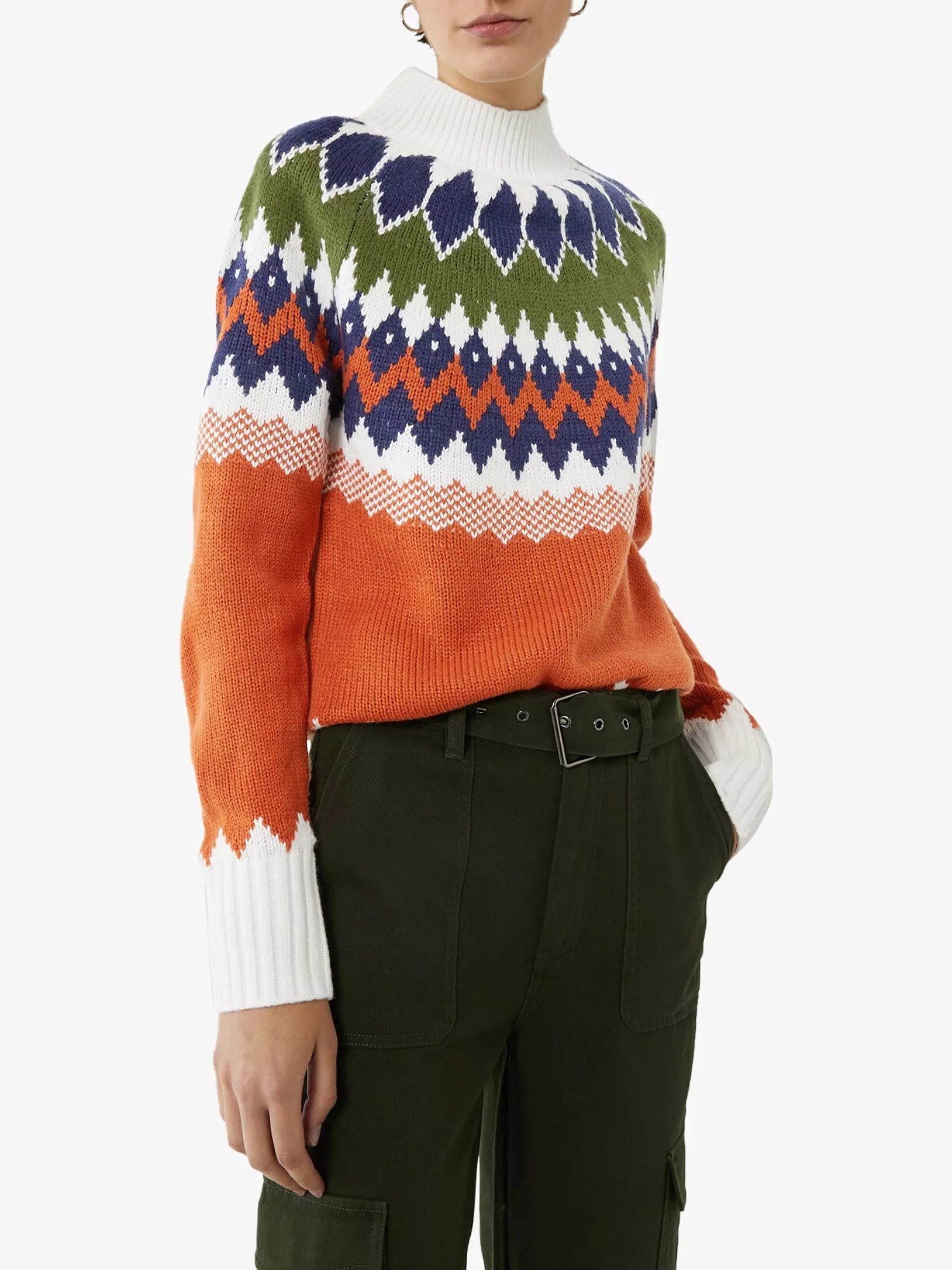 Crafted with a funnel neckline and framed in a relaxed fit, this long-sleeved jumper from Warehouse is elevated by a warming retro Fair Isle pattern.