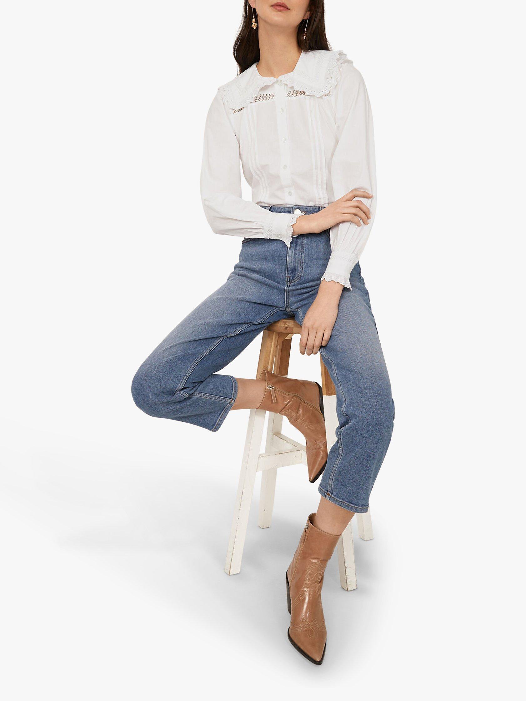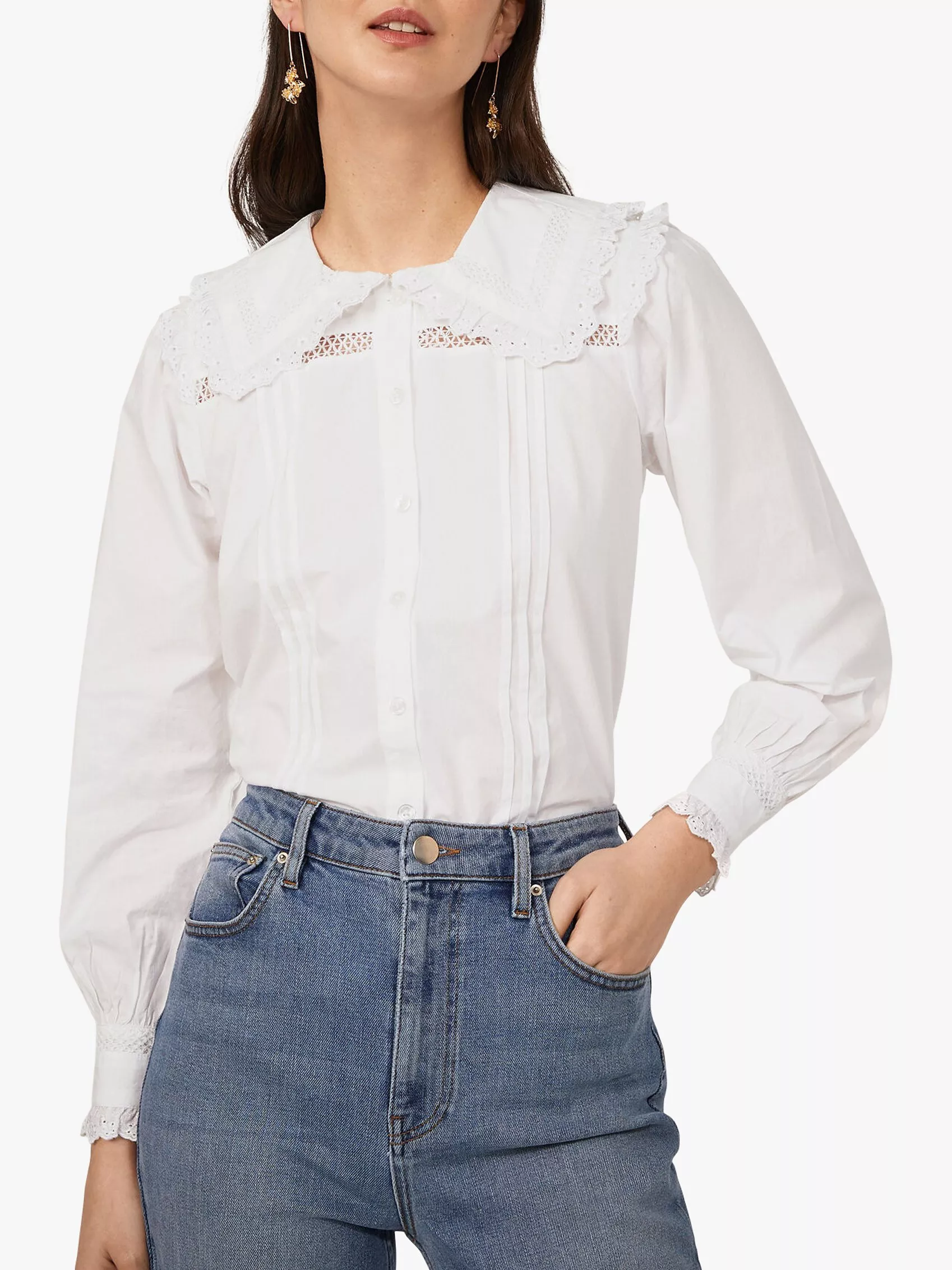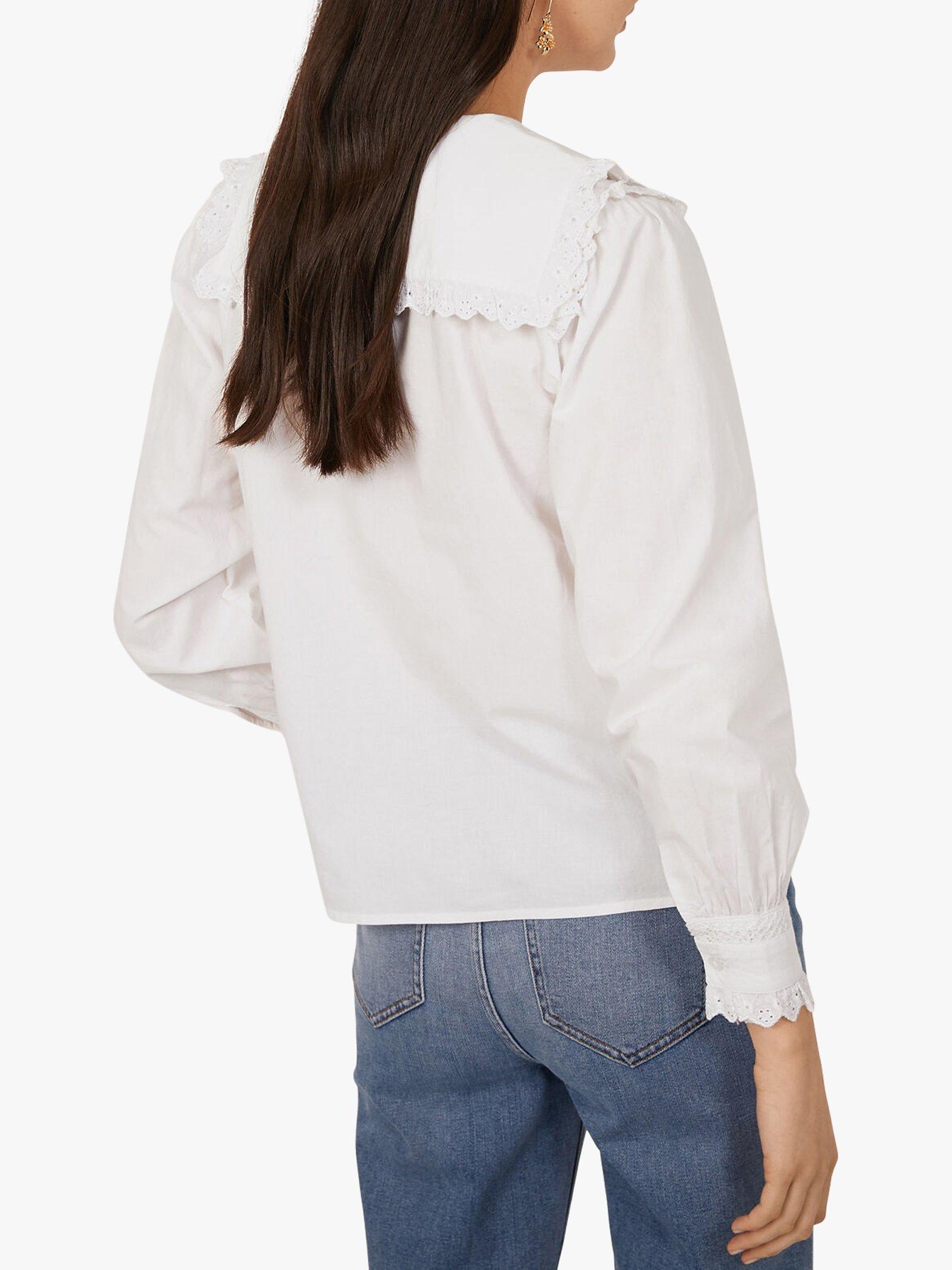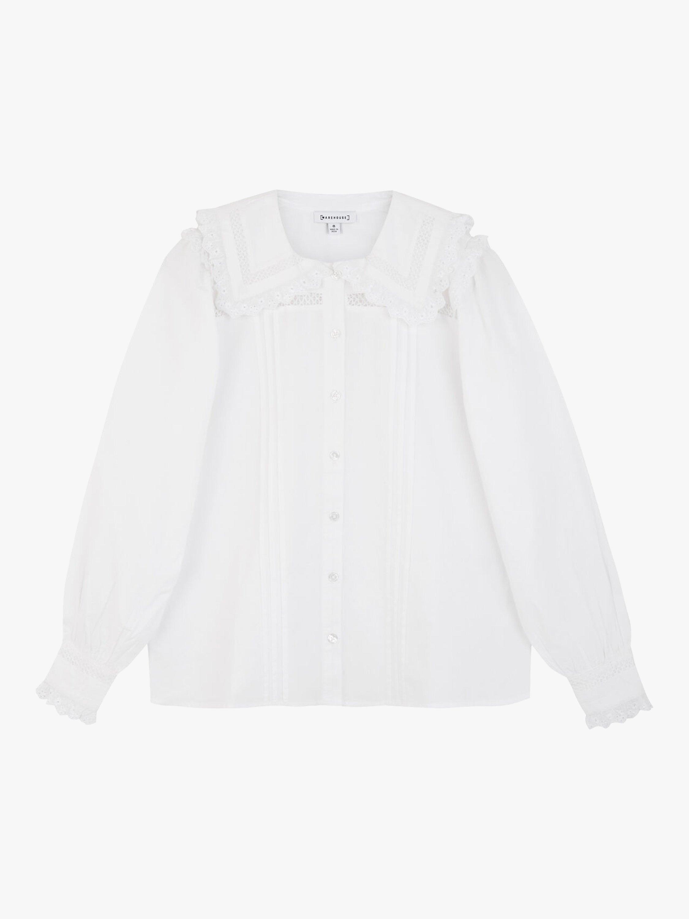 Embellished with frills, this Warehouse shirt is an ultra-feminine take on a classic style. Complete with button fastening through the front and an extra-wide collar, this style works well tucked into denim.